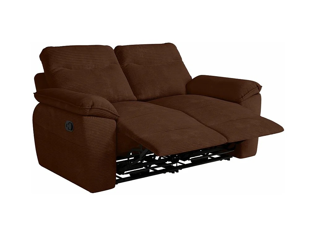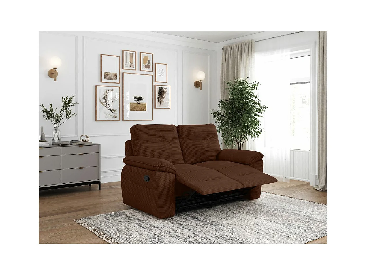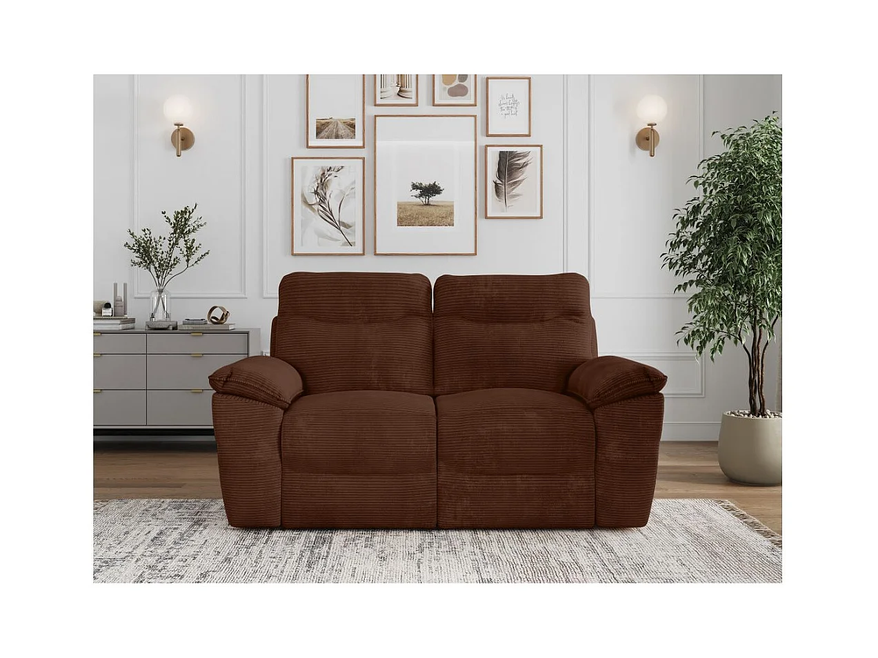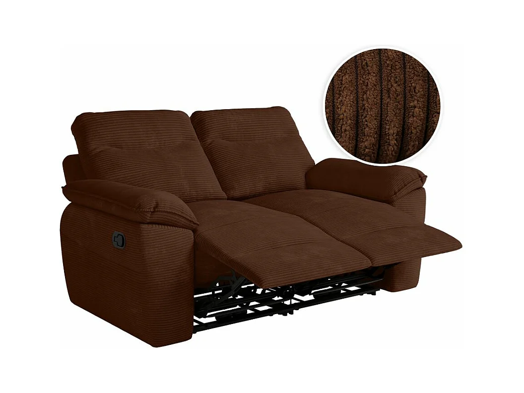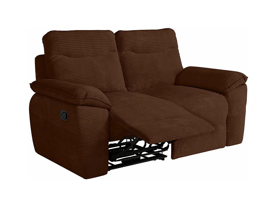 Canapé de relaxation manuel Ross 2 places en velours côtelé - Marron - L160 x P100 x H102cm - Loungitude
