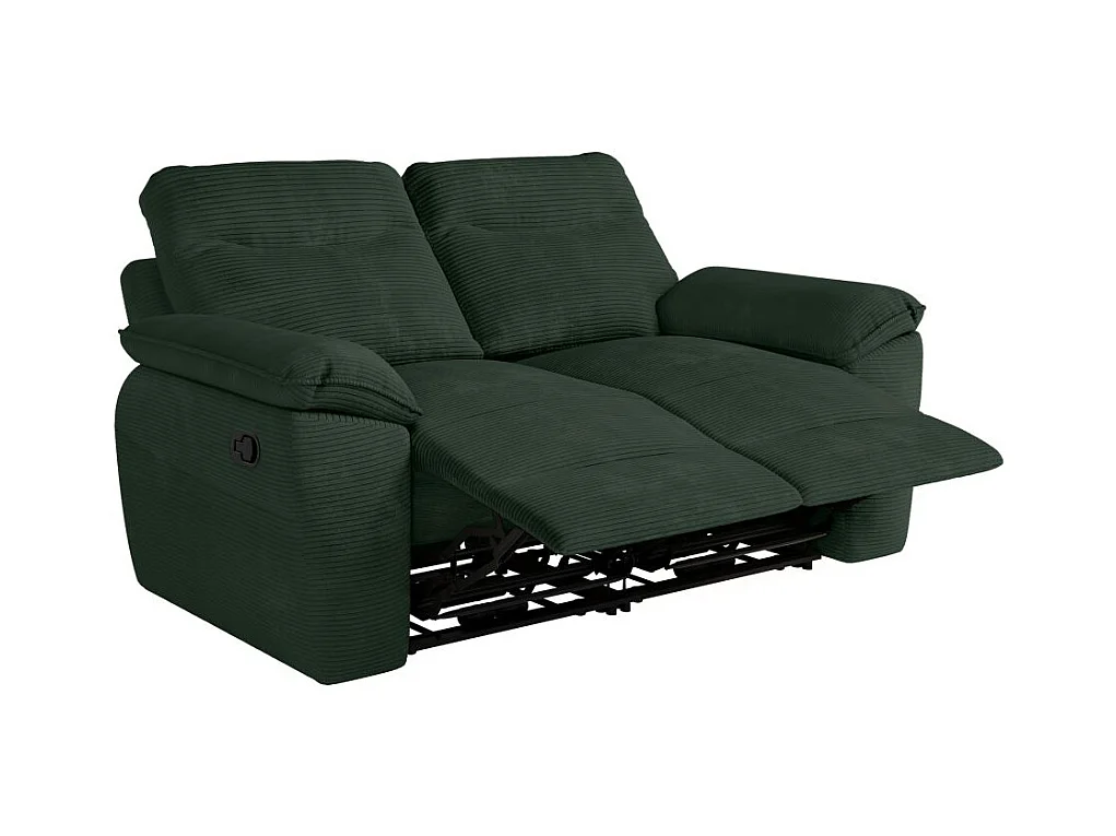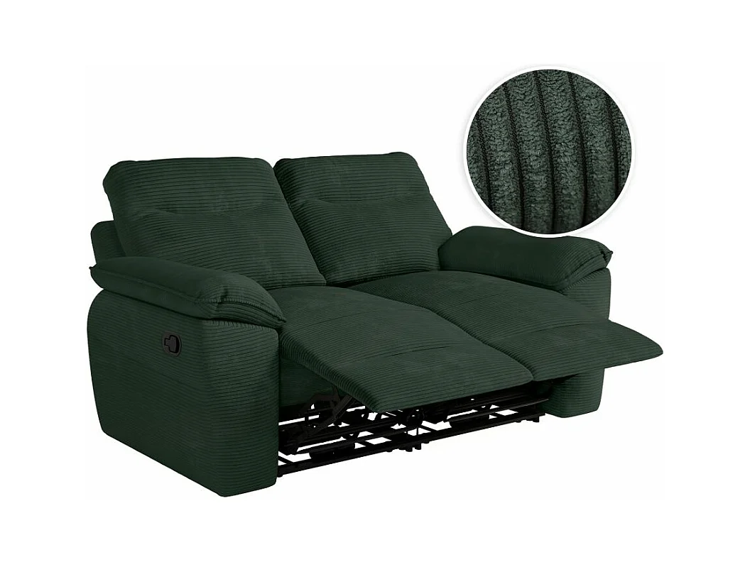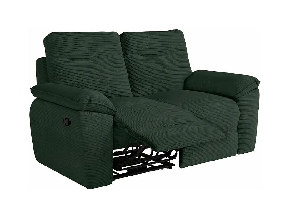 Canapé de relaxation manuel Ross 2 places en velours côtelé - Vert foncé - L160 x P100 x H102cm - Loungitude