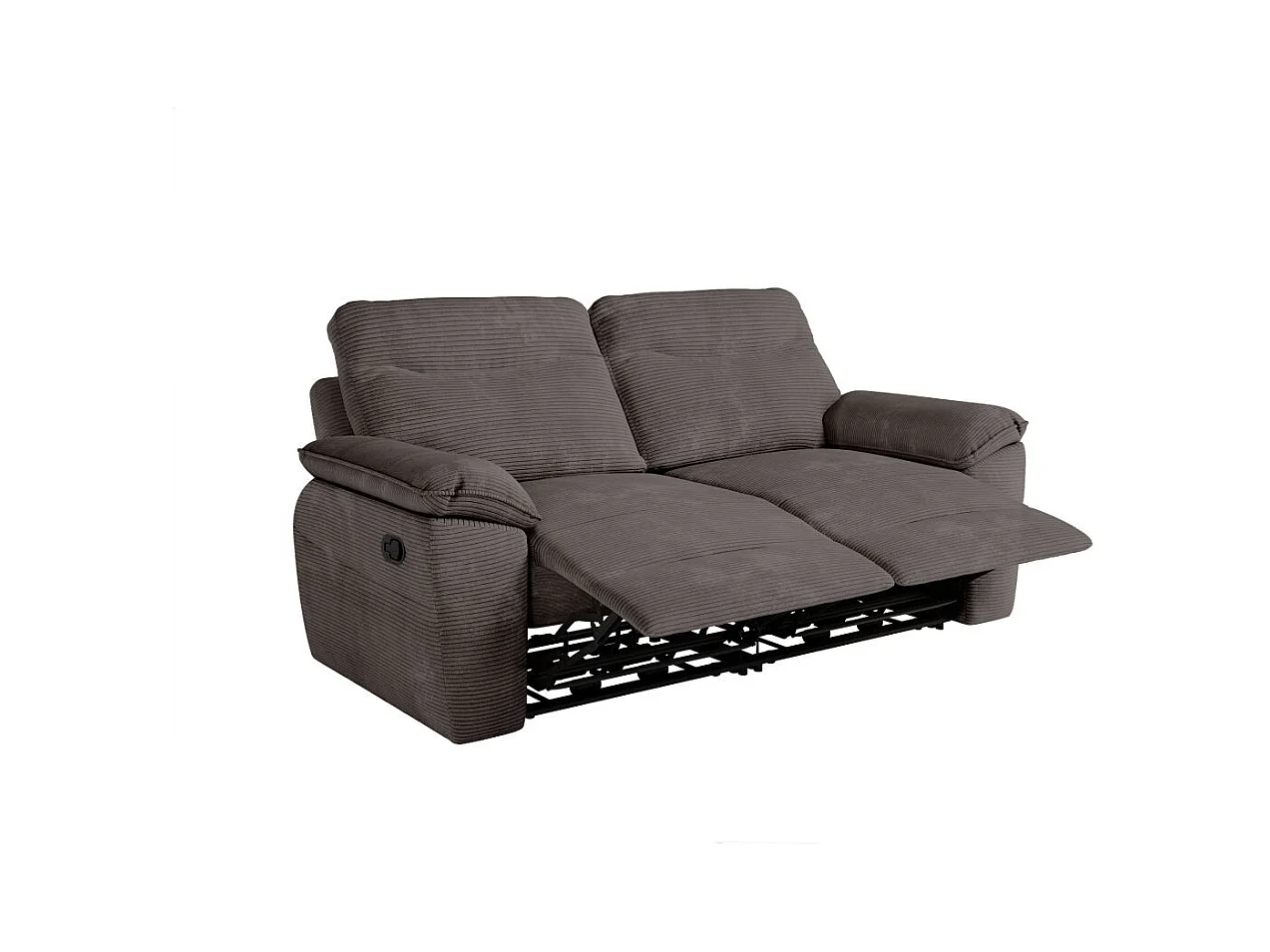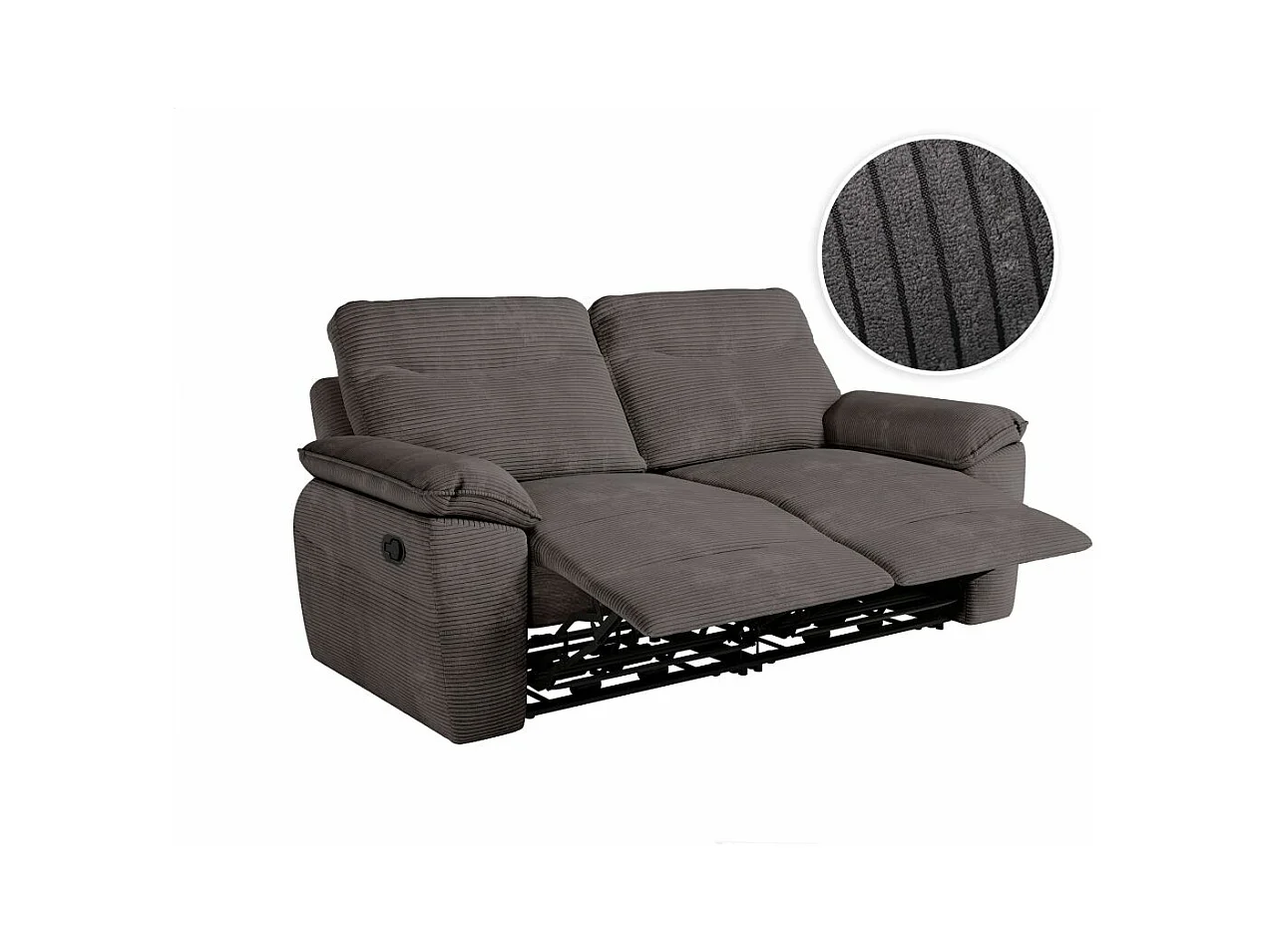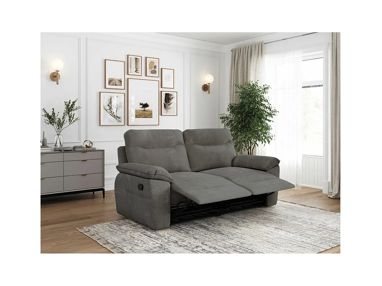 Canapé de relaxation manuel Ross 3 places en velours côtelé - Gris - L200 x P100 x H102cm - Loungitude