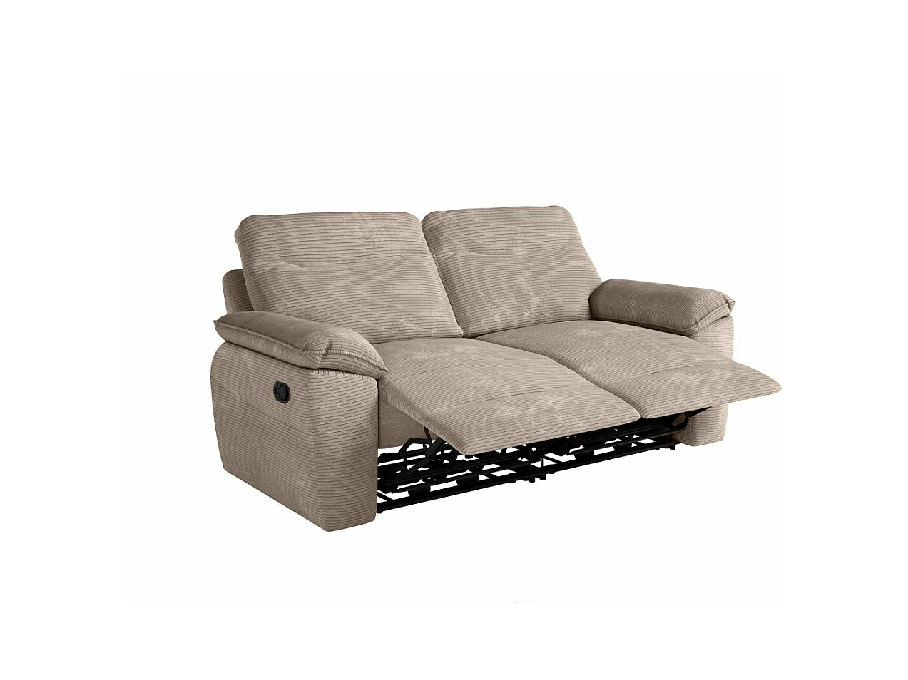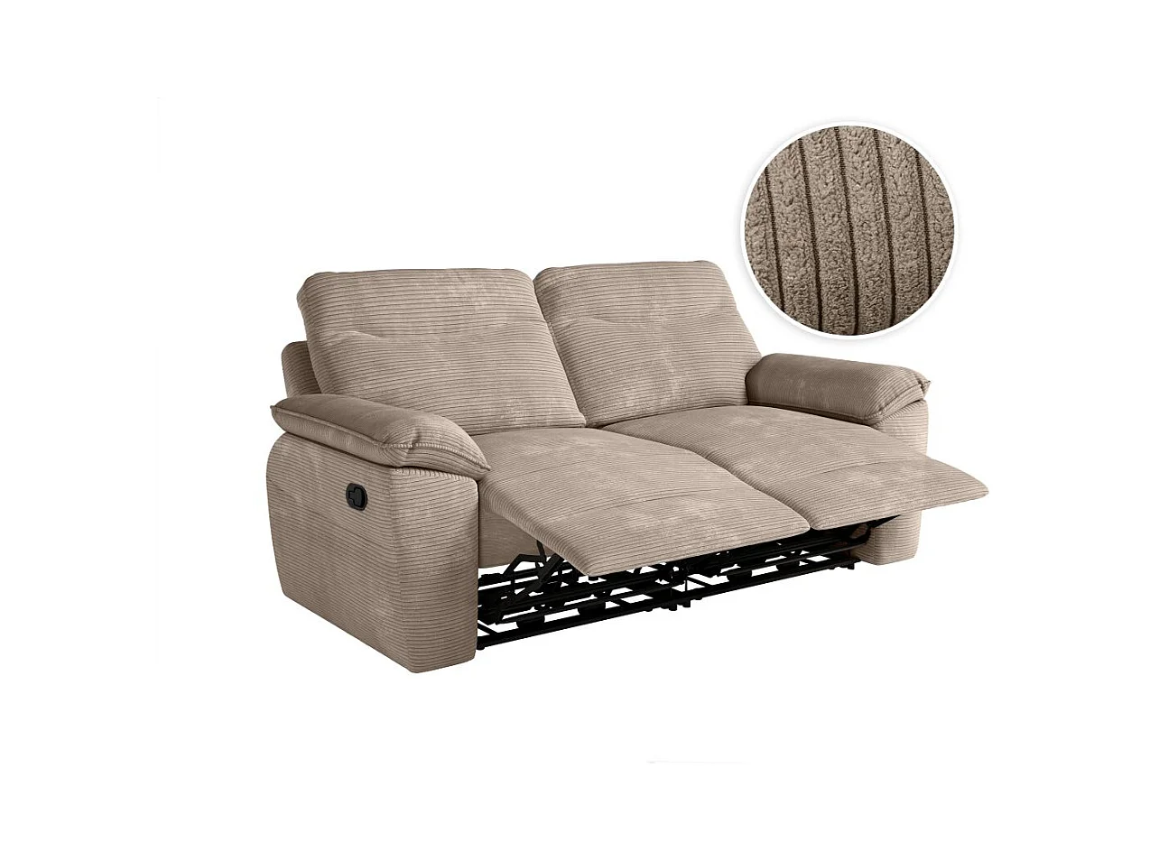 Canapé de relaxation manuel Ross 3 places en velours côtelé - Taupe - L200 x P100 x H102cm - Loungitude