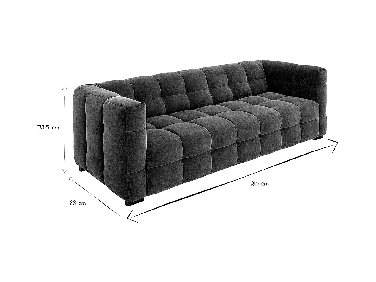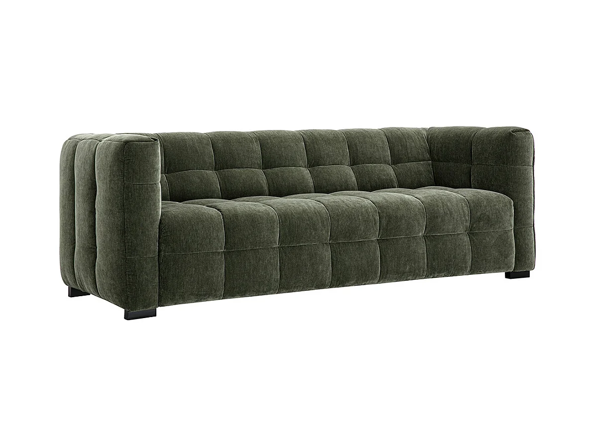 Canapé design 3 places en tissu effet velours vert kaki CORTO