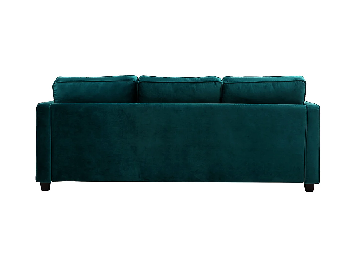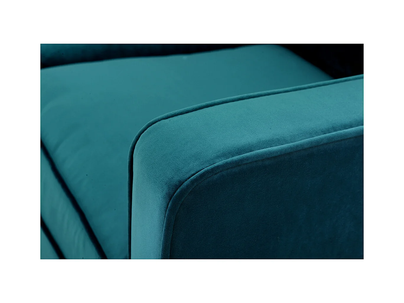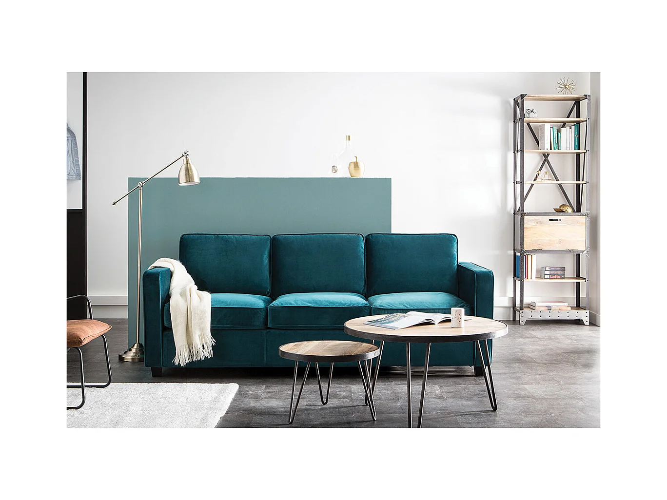 Canapé design 3 places en tissu velours bleu pétrole et bois noir BROOKLYN