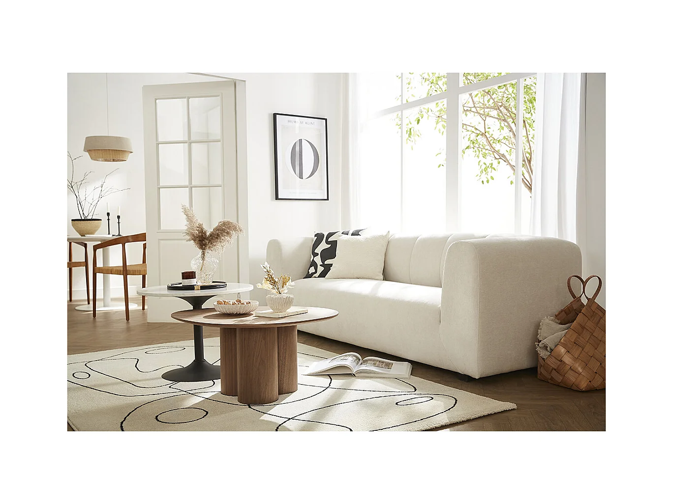 Canapé design en tissu effet velours beige 3-4 places OLIVEIRO