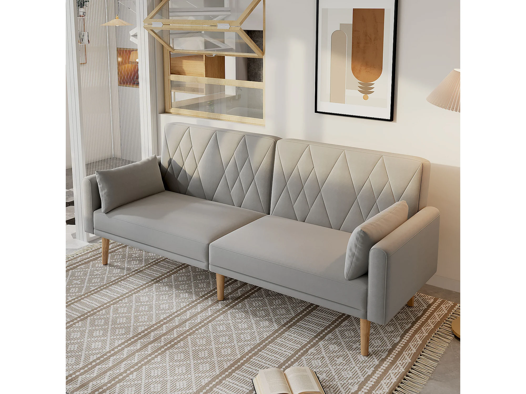 Canapé deux places 180x75x82cm - Dossier réglable- Velours - Gris