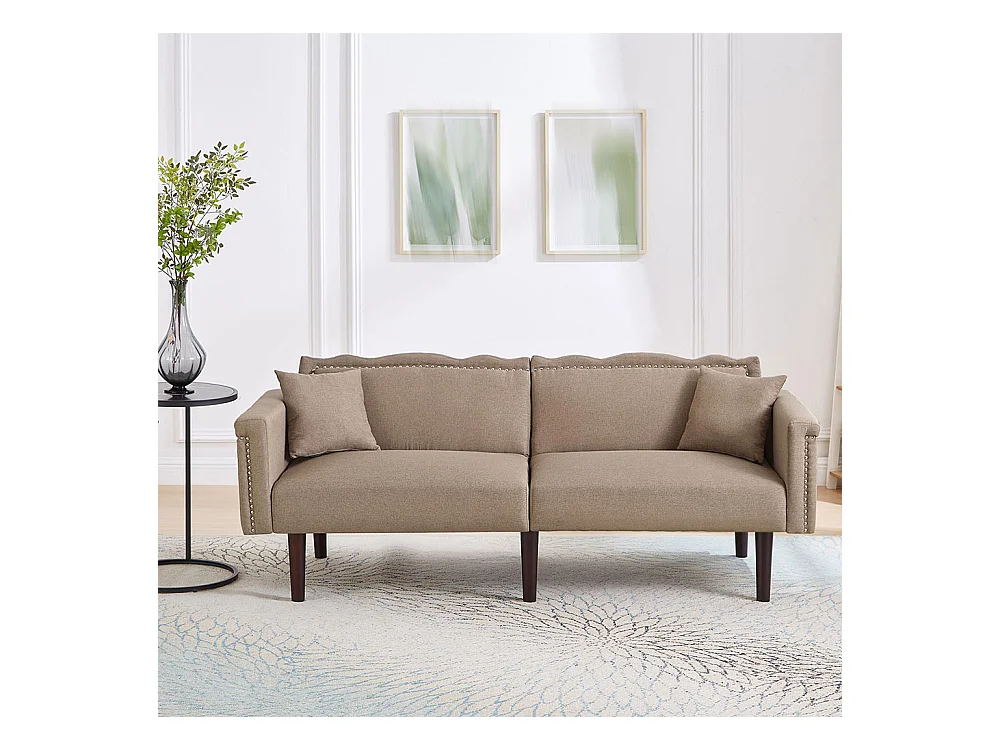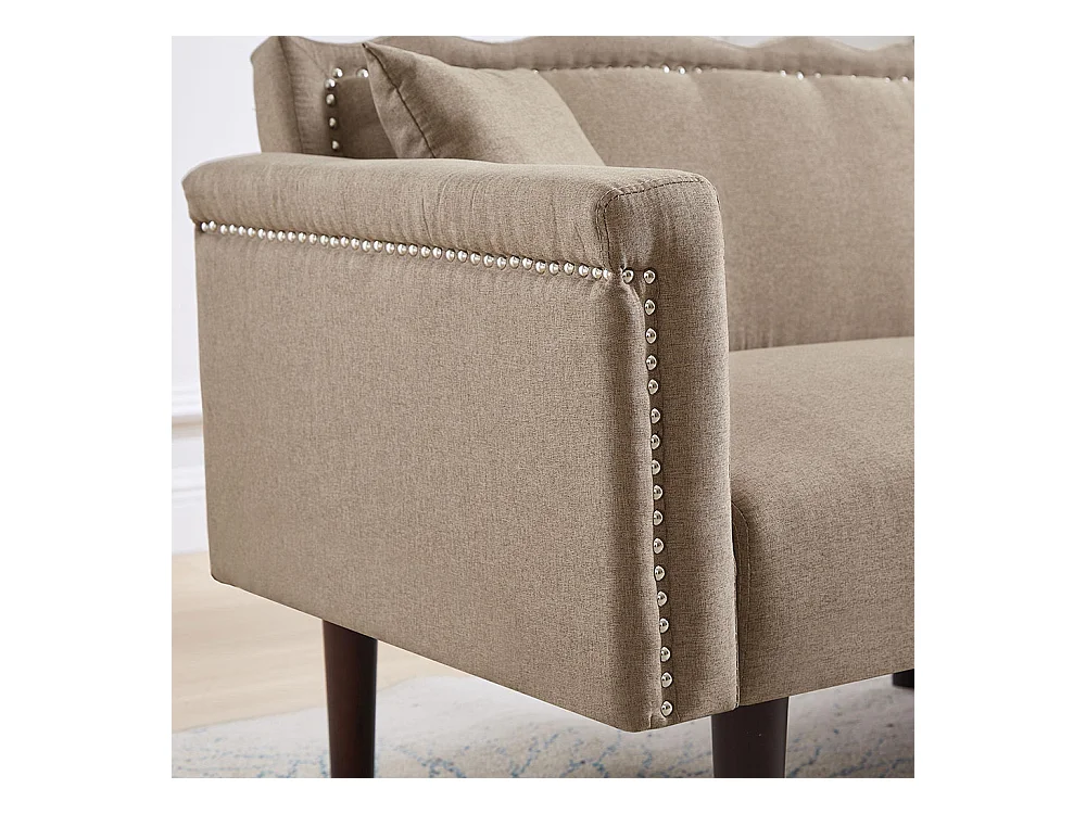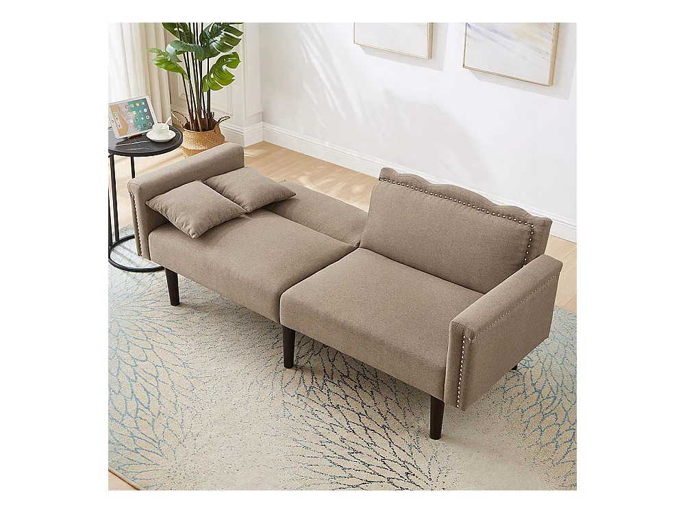 Canapé deux places avec fonction relax, tissu coton et lin, mousse haute densité, marron