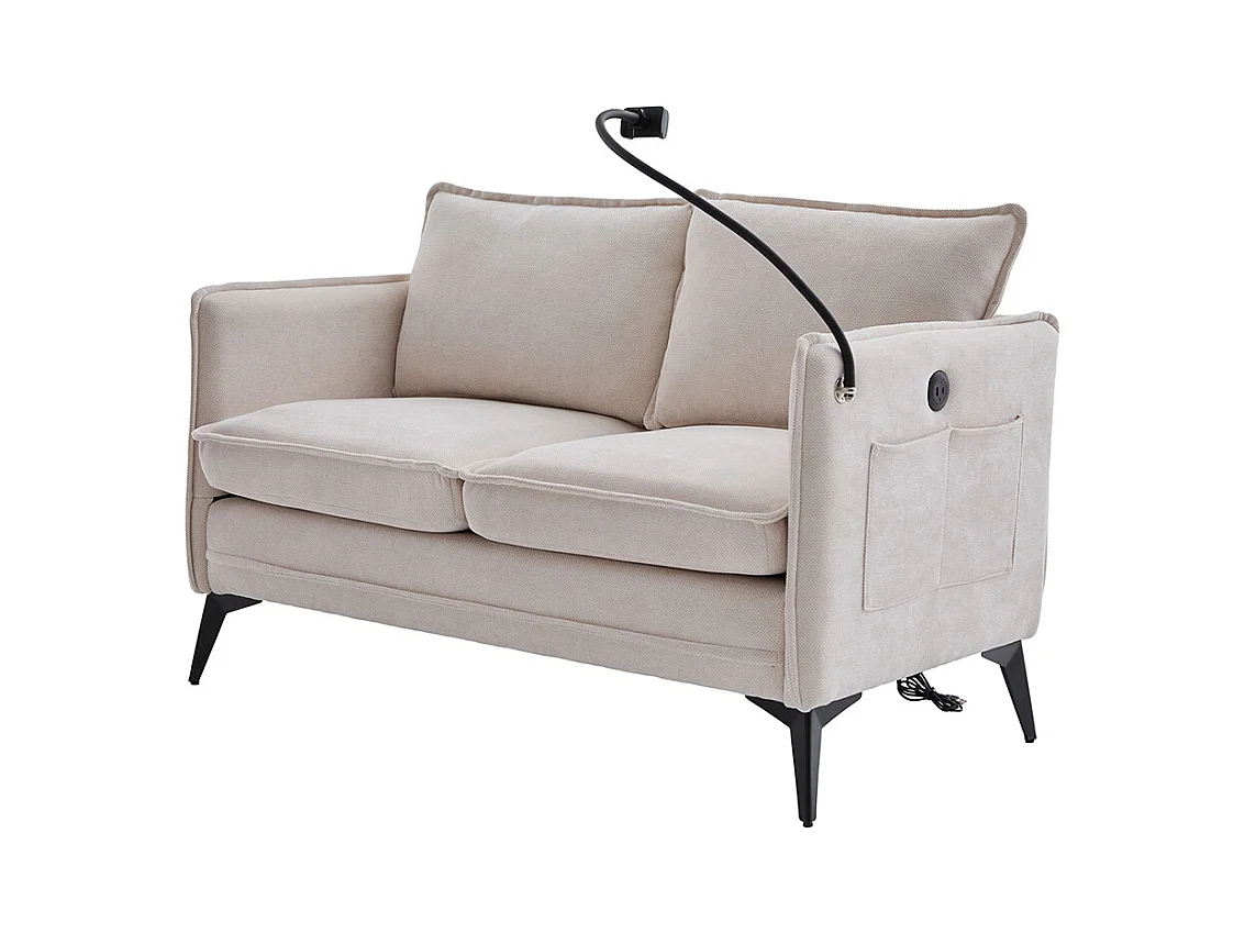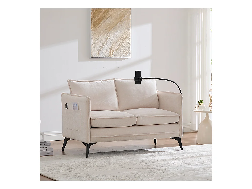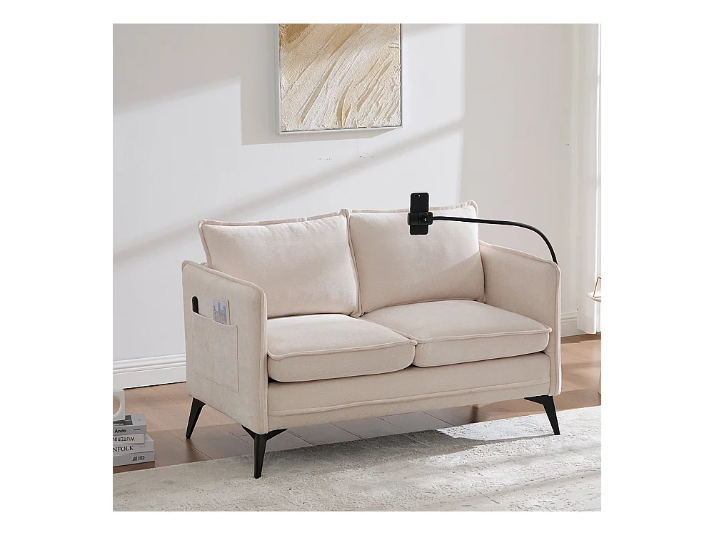 Canapé double moderne tissu poche rangement support téléphone réglable salon balcon beige