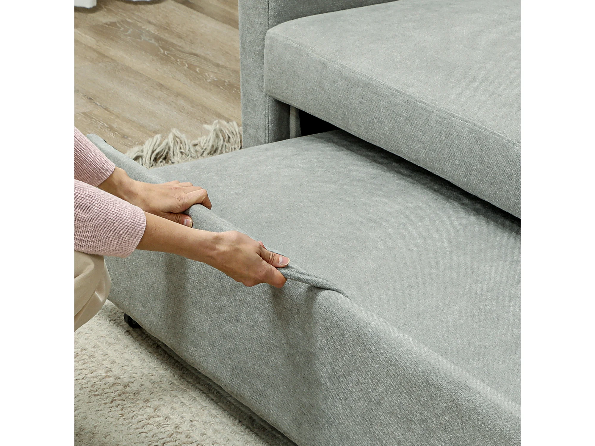 Canapé droit 2 places convertible avec dossier Clic-clac à 3 positions et assise coulissant, en velours gris clair - 155x90x88.5cm