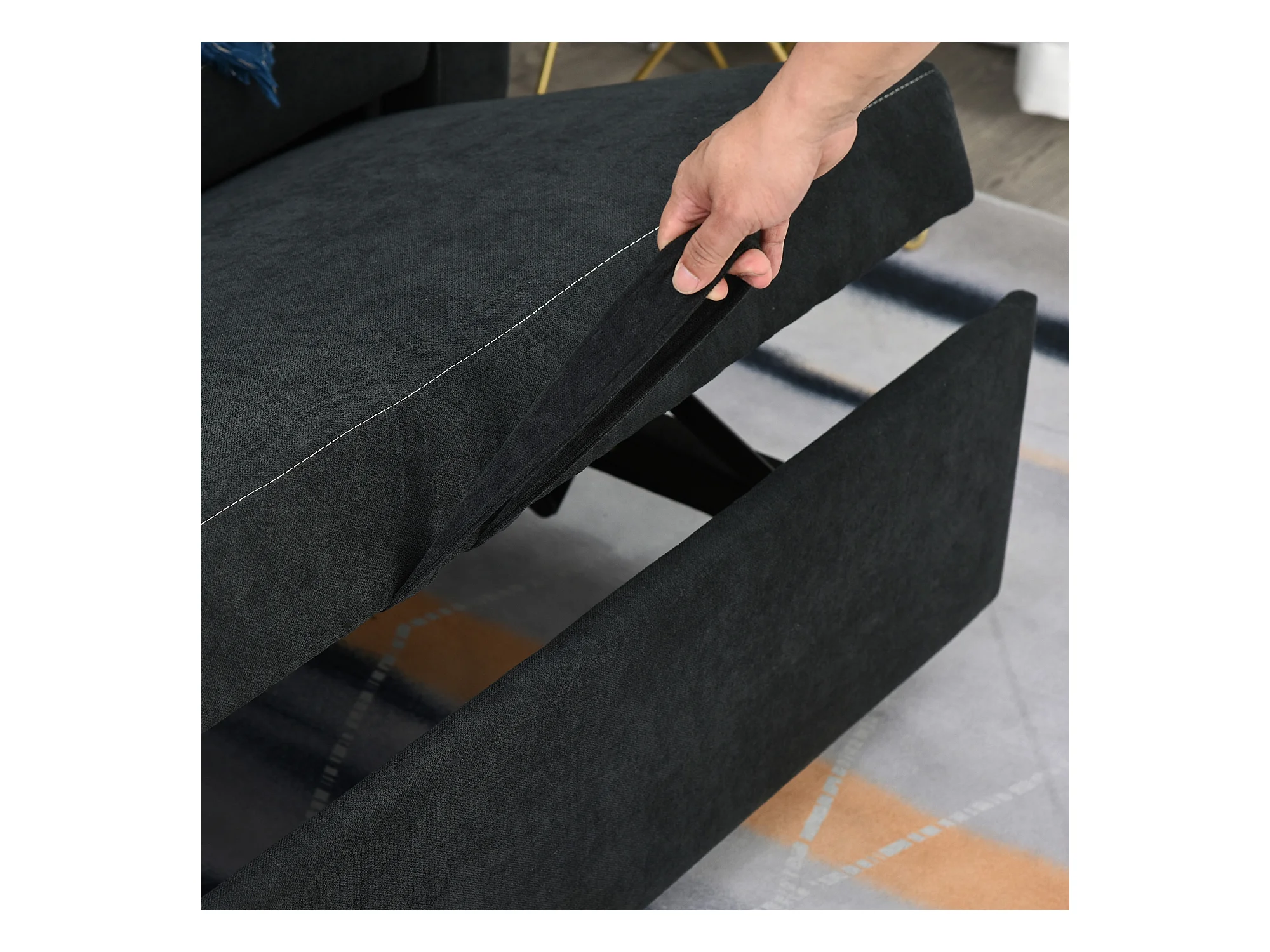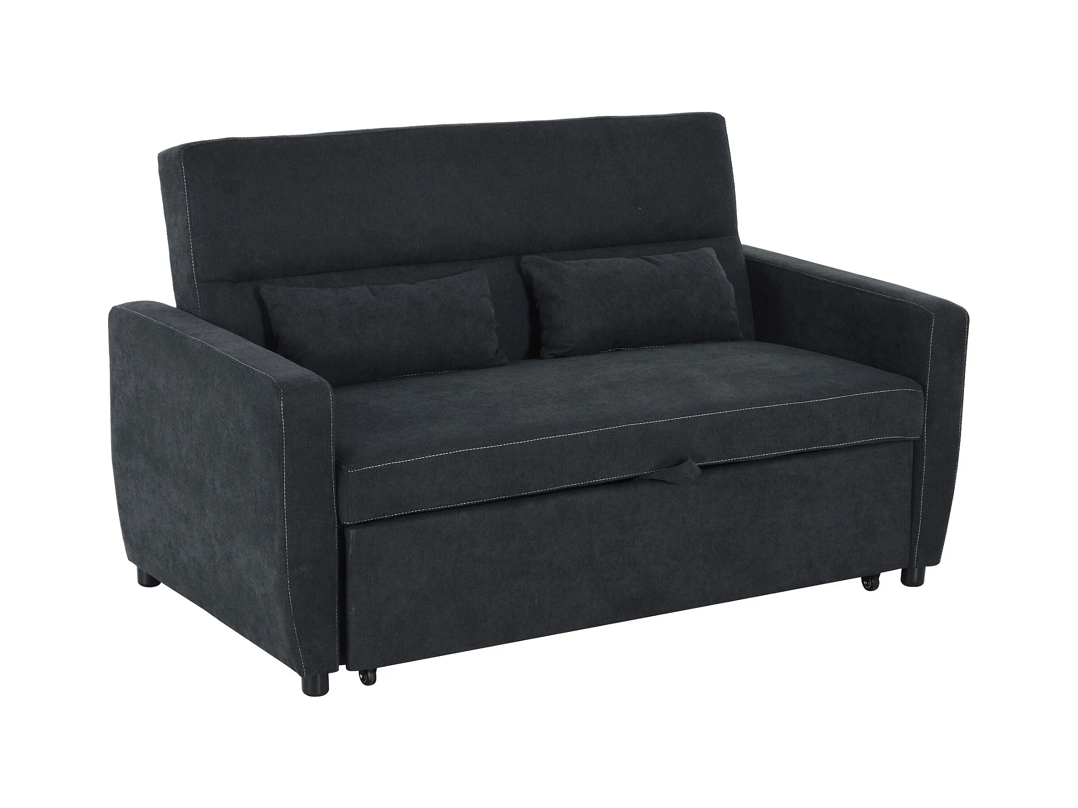 Canapé droit 2 places convertible avec dossier Clic-clac à 3 positions et assise coulissant, en velours noir - 155x90x88.5cm