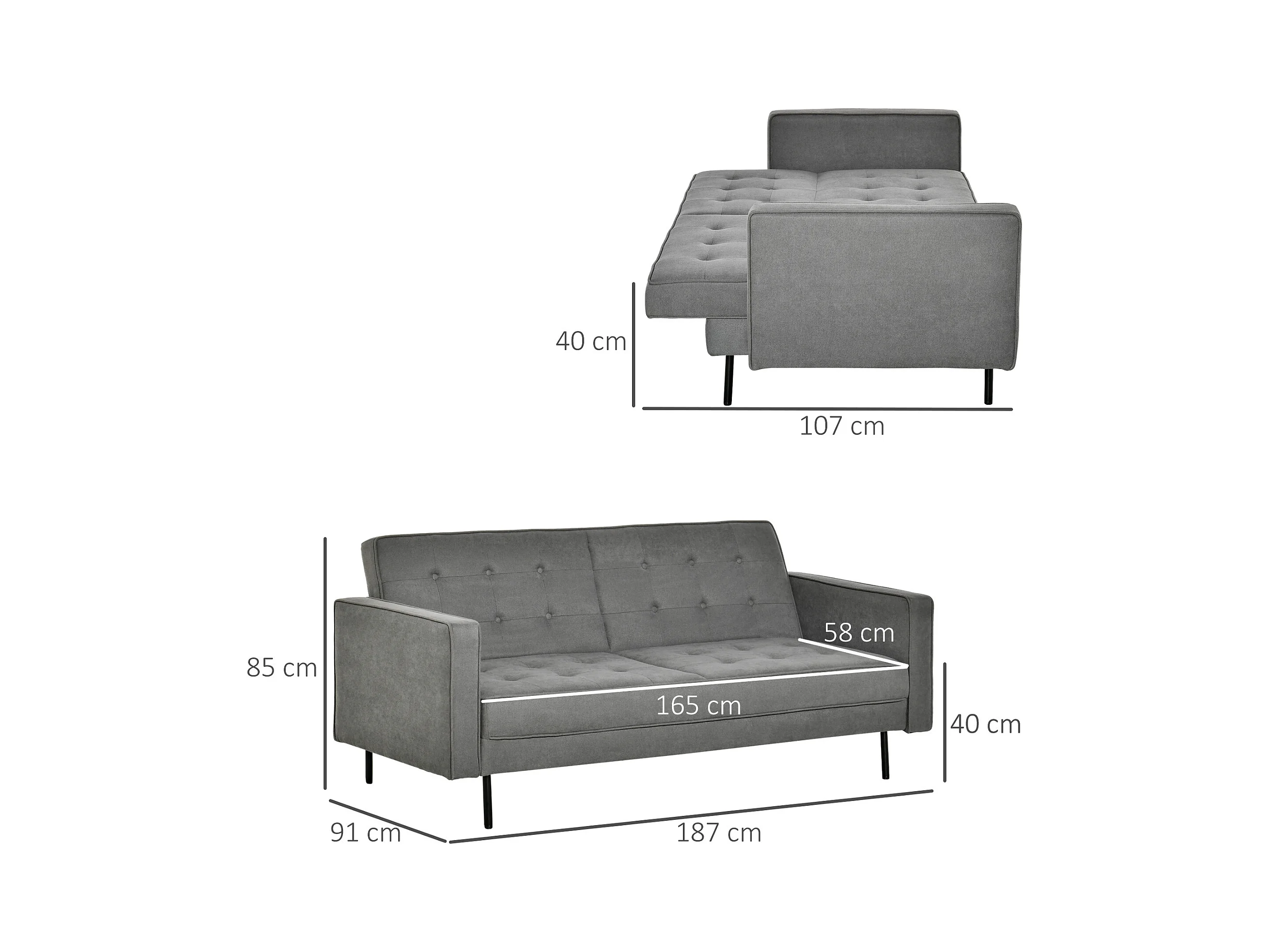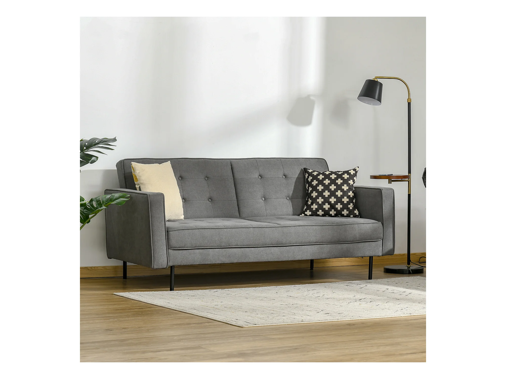 Canapé droit 2 places convertible Clic-clac à 3 positions en coton gris - 187x91x85cm