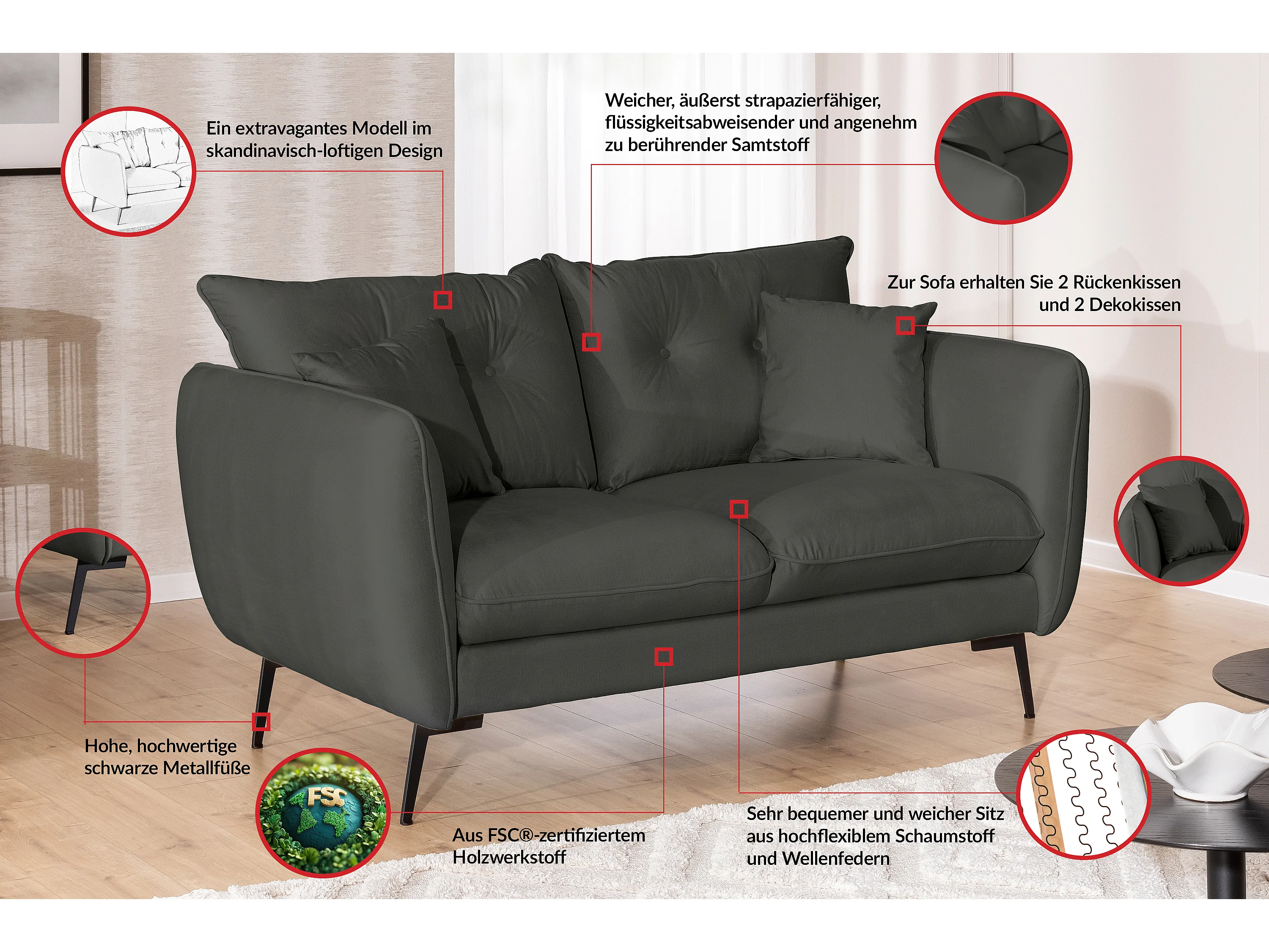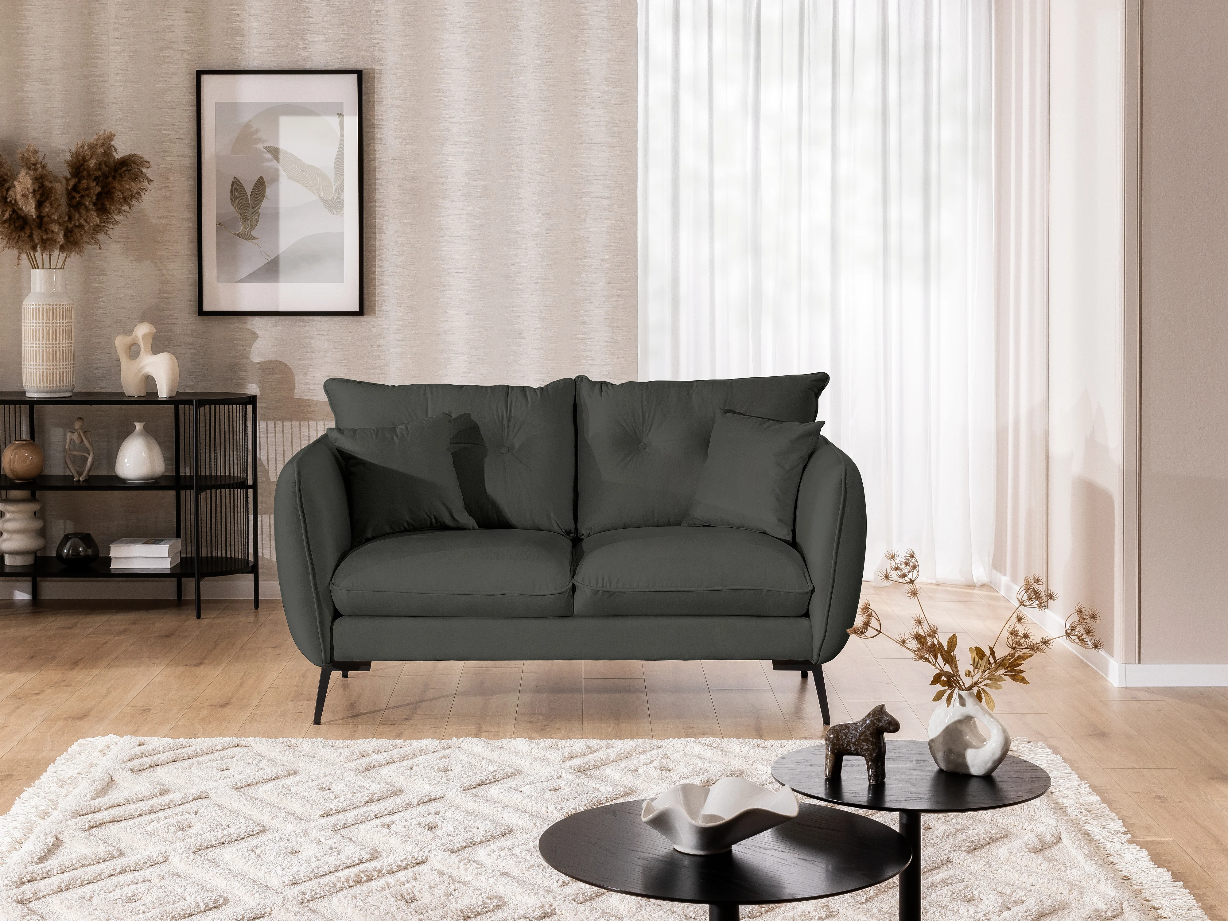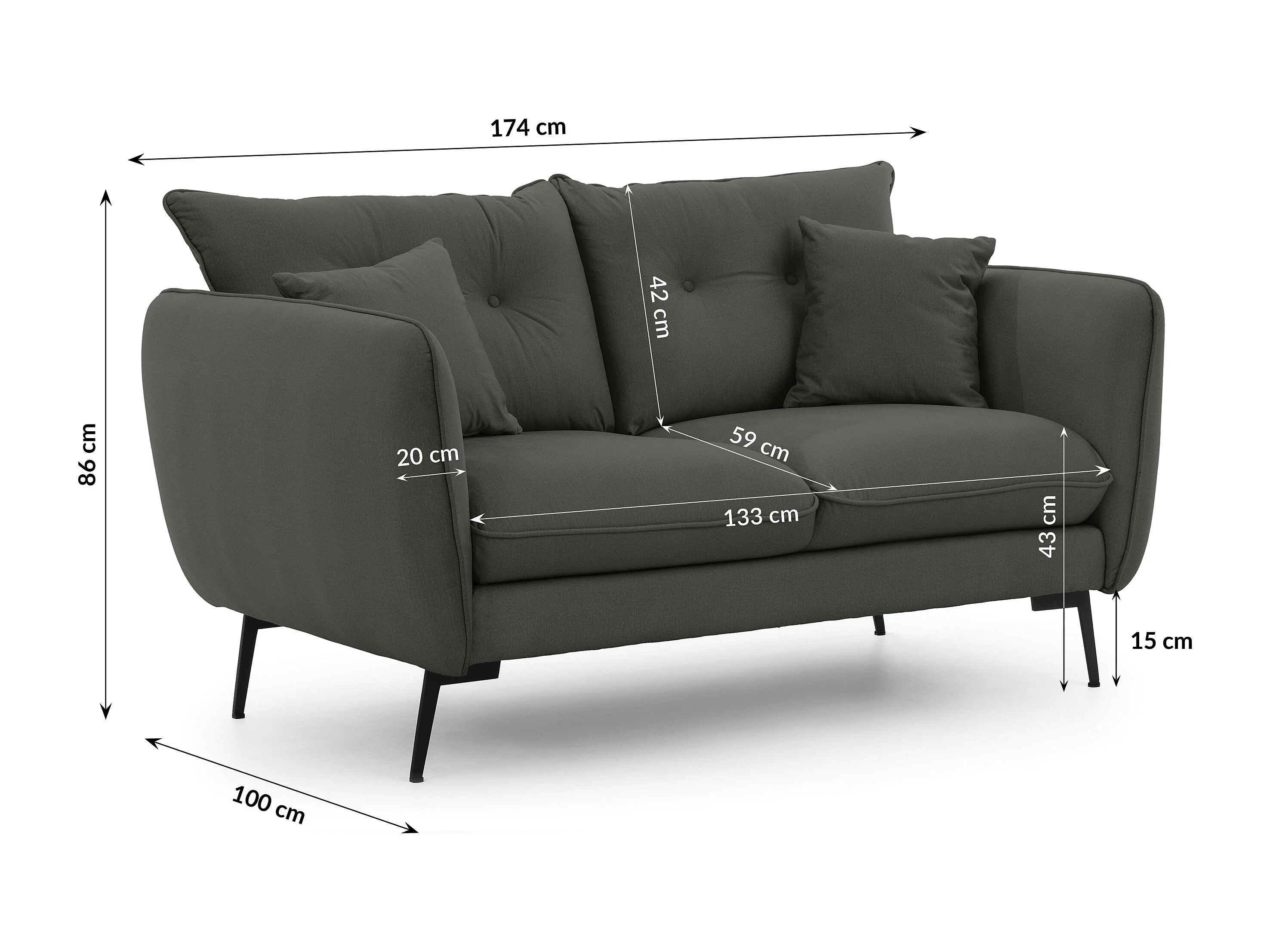 Canapé droit 2 places en tissu avec de hauts pieds en métal noir Nordloft