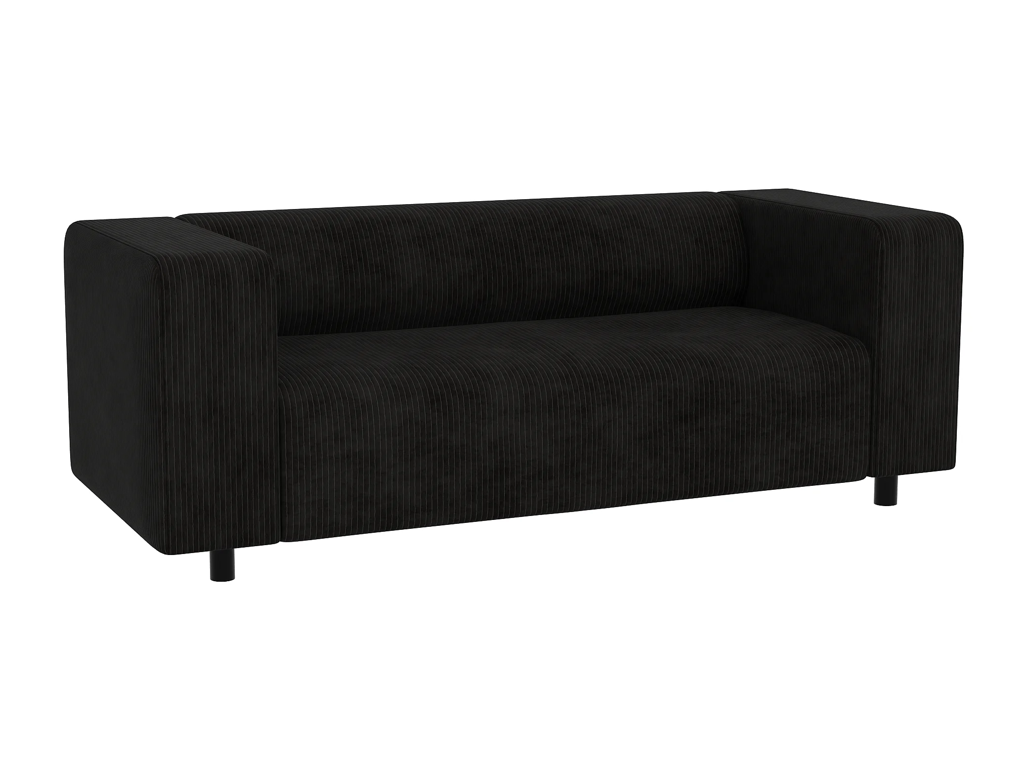 Canapé droit 2 places moderne en velours côtelé noir avec assise confortable THORA