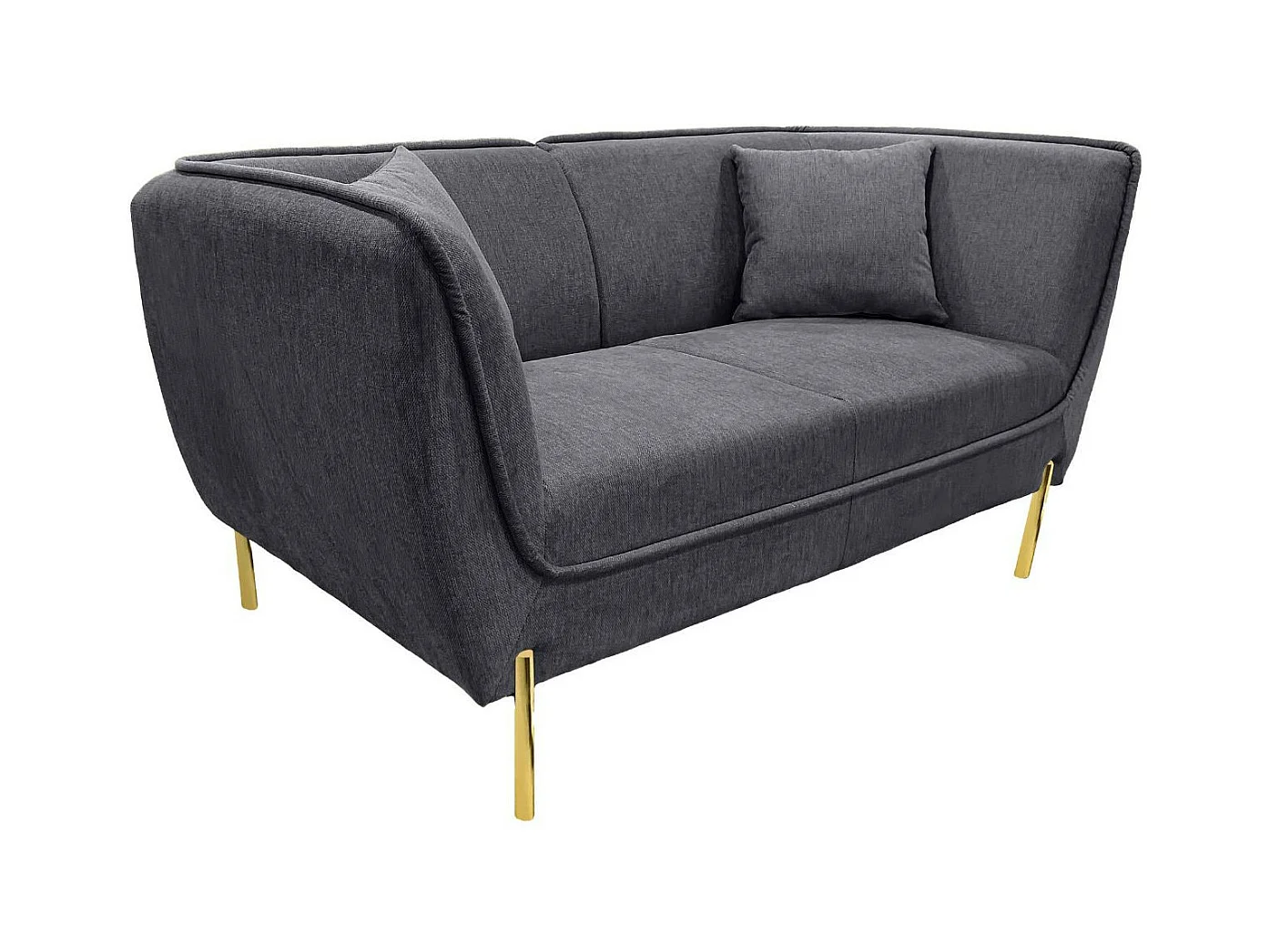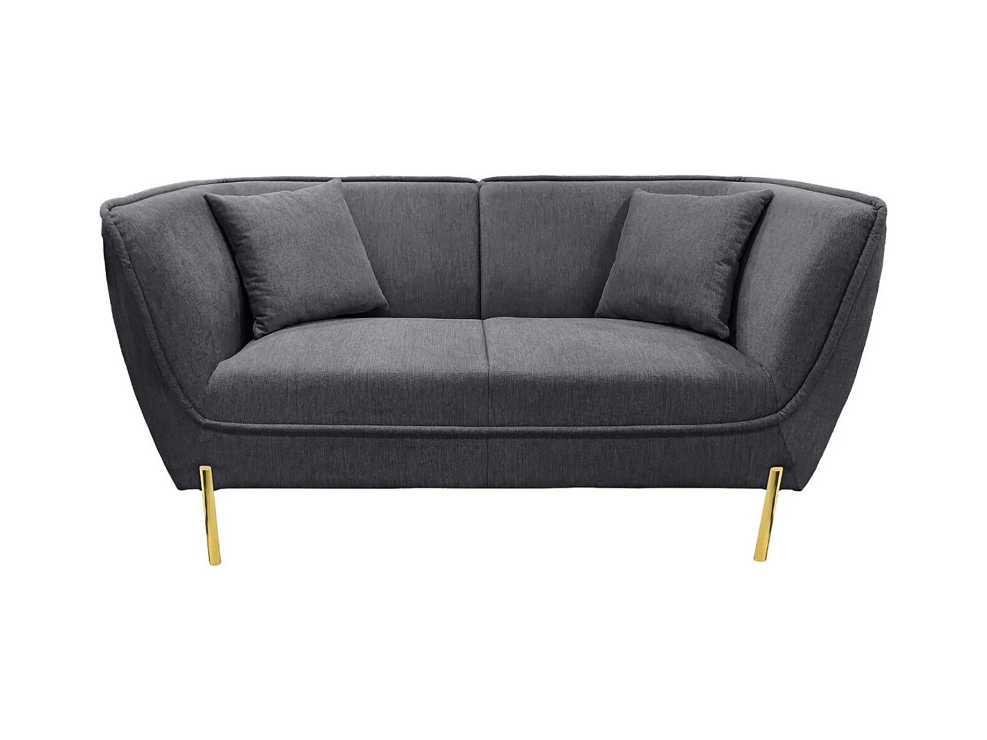 Canapé droit 2 places tissu gris et piétement doré - DIJON