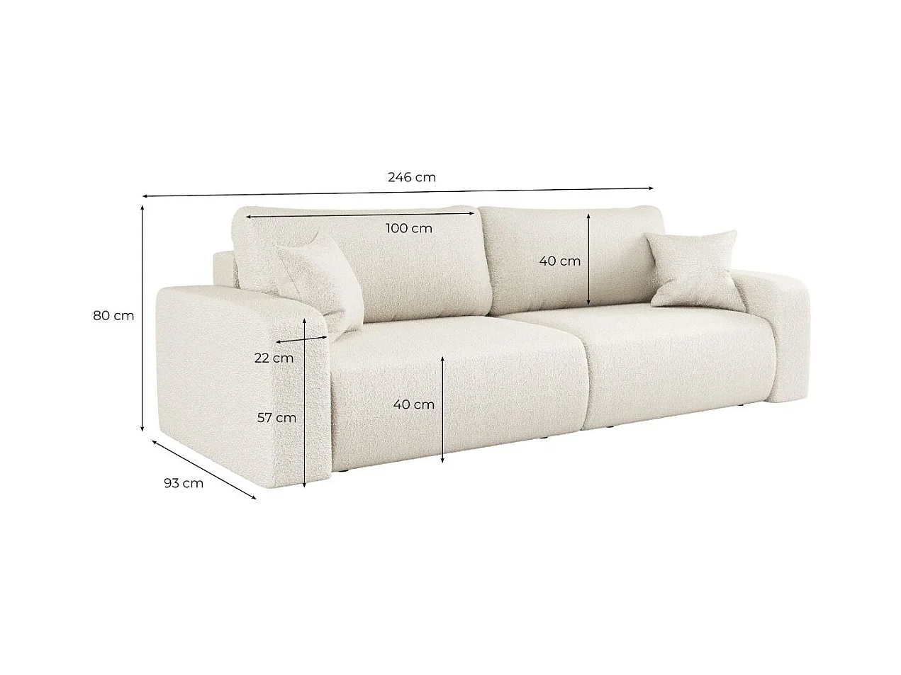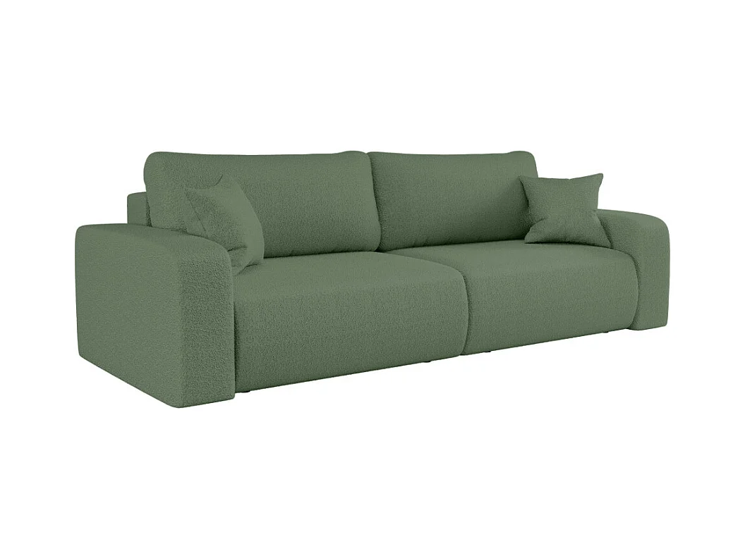 Canapé droit 3 places ALYA convertible en tissu bouclette - Vert