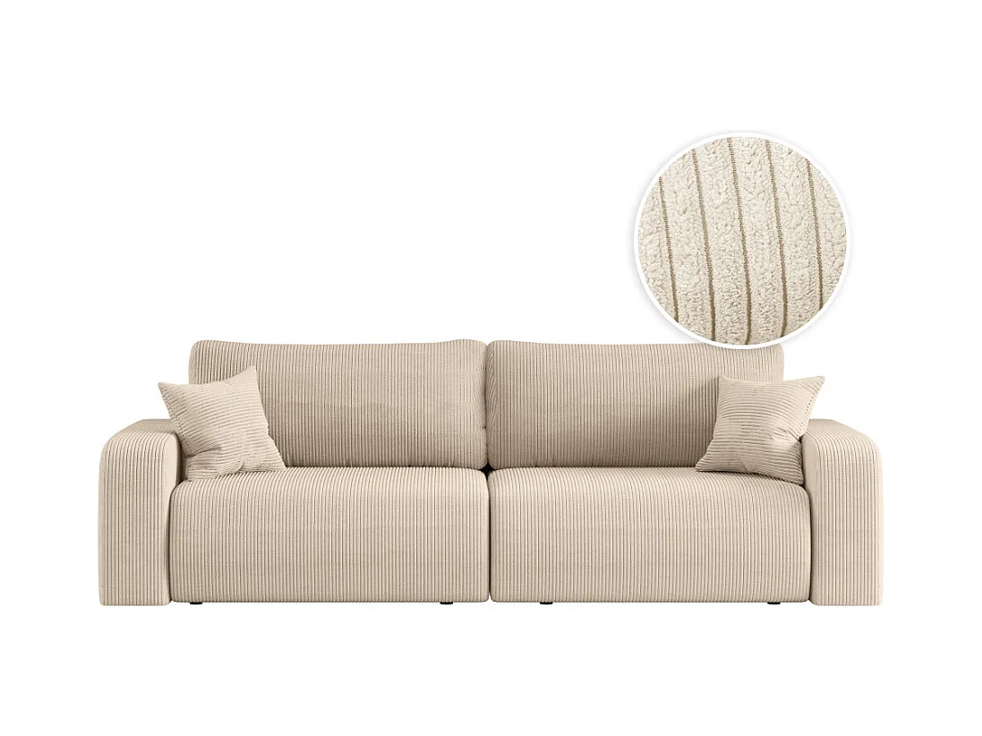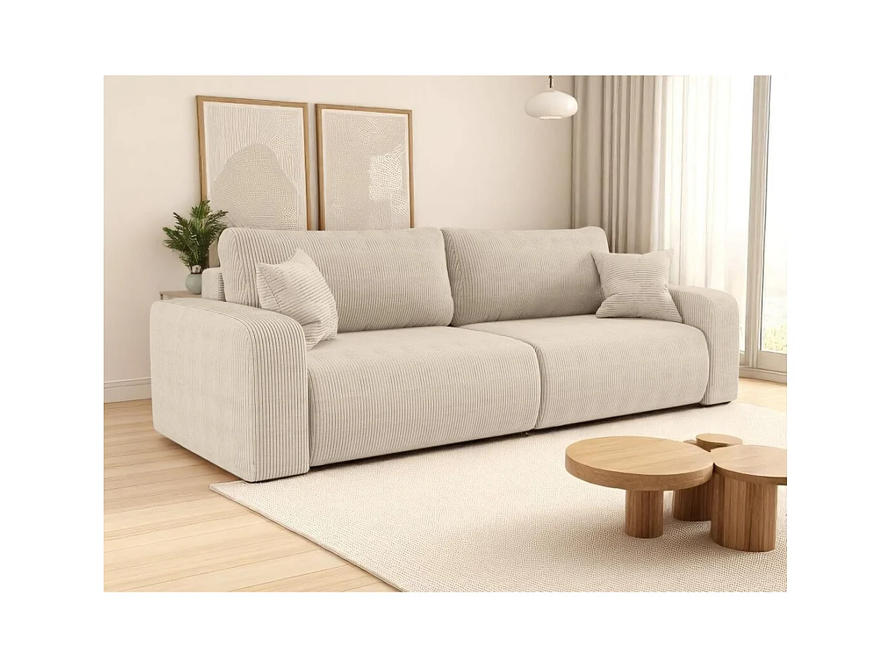 Canapé droit 3 places ALYA convertible en velours côtelé - Beige