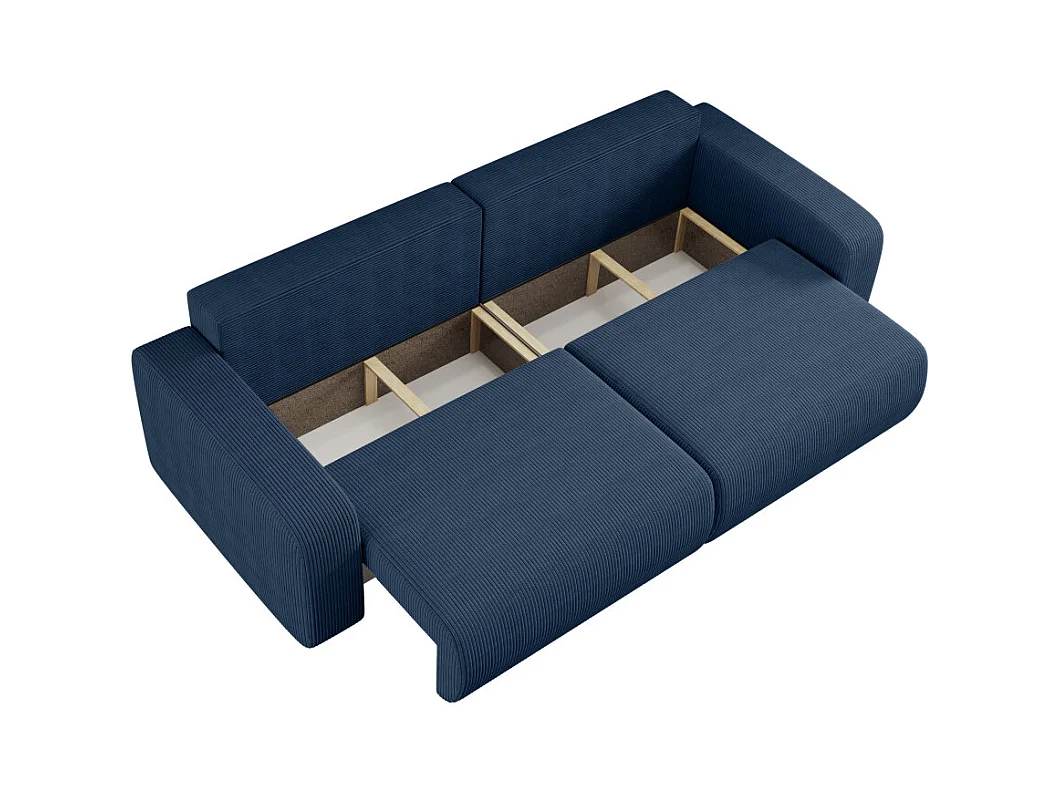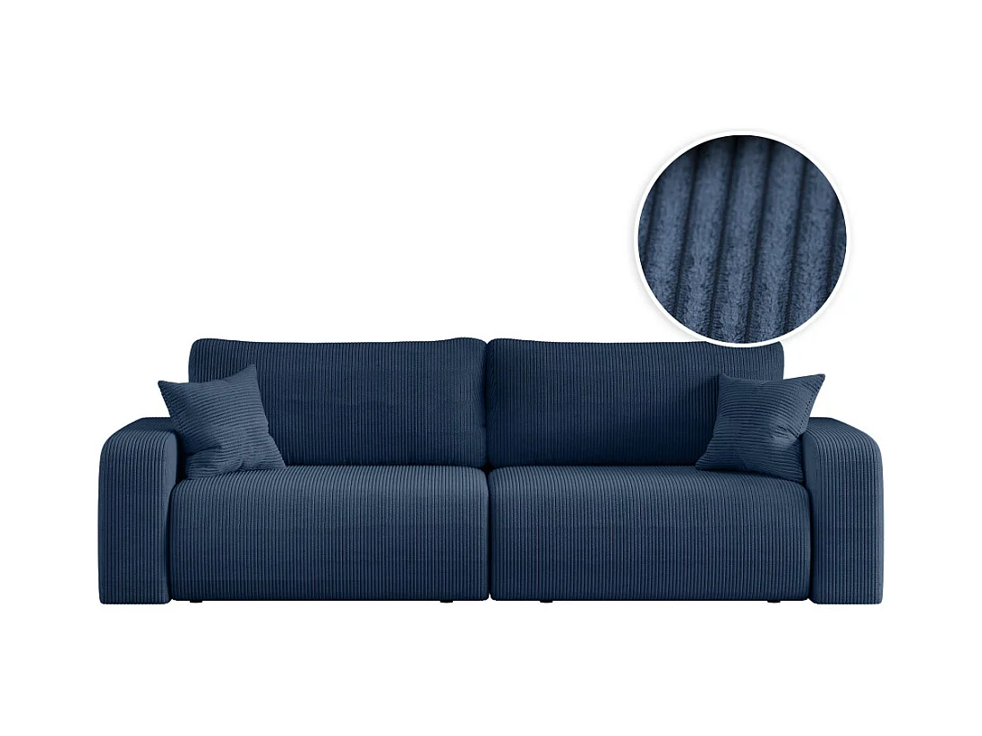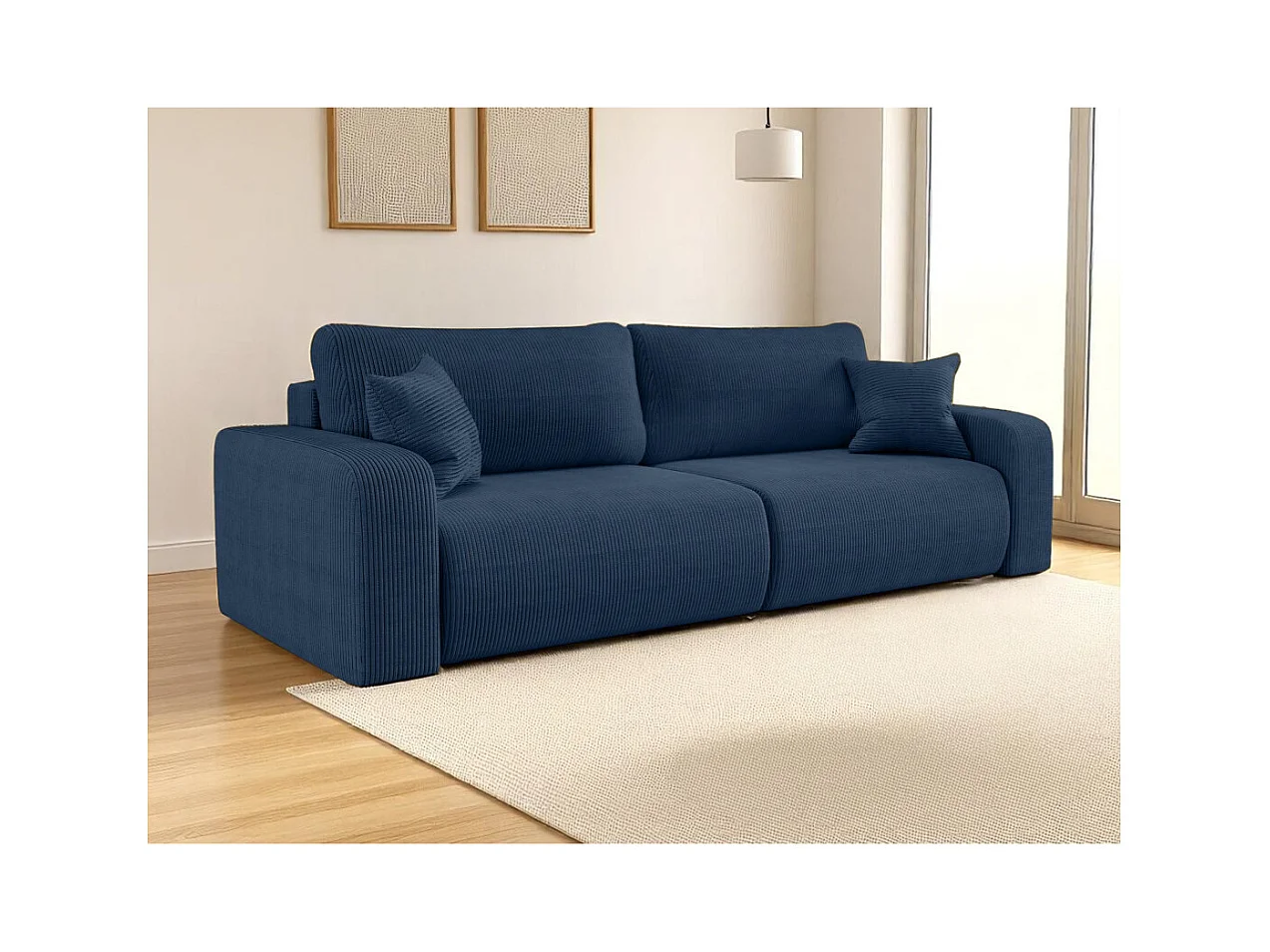 Canapé droit 3 places ALYA convertible en velours côtelé - Bleu foncé