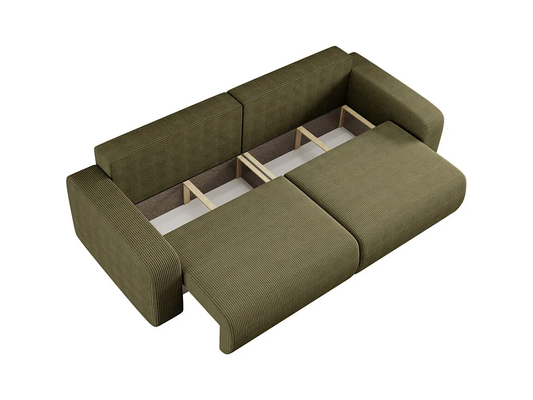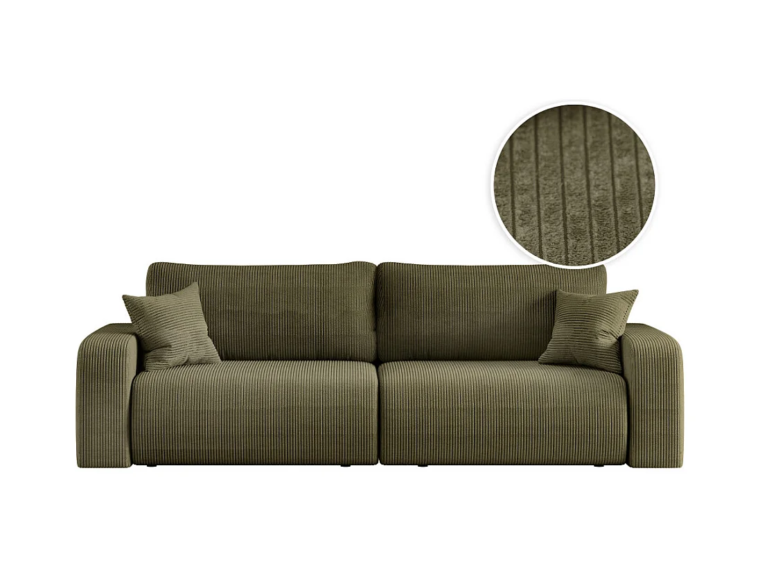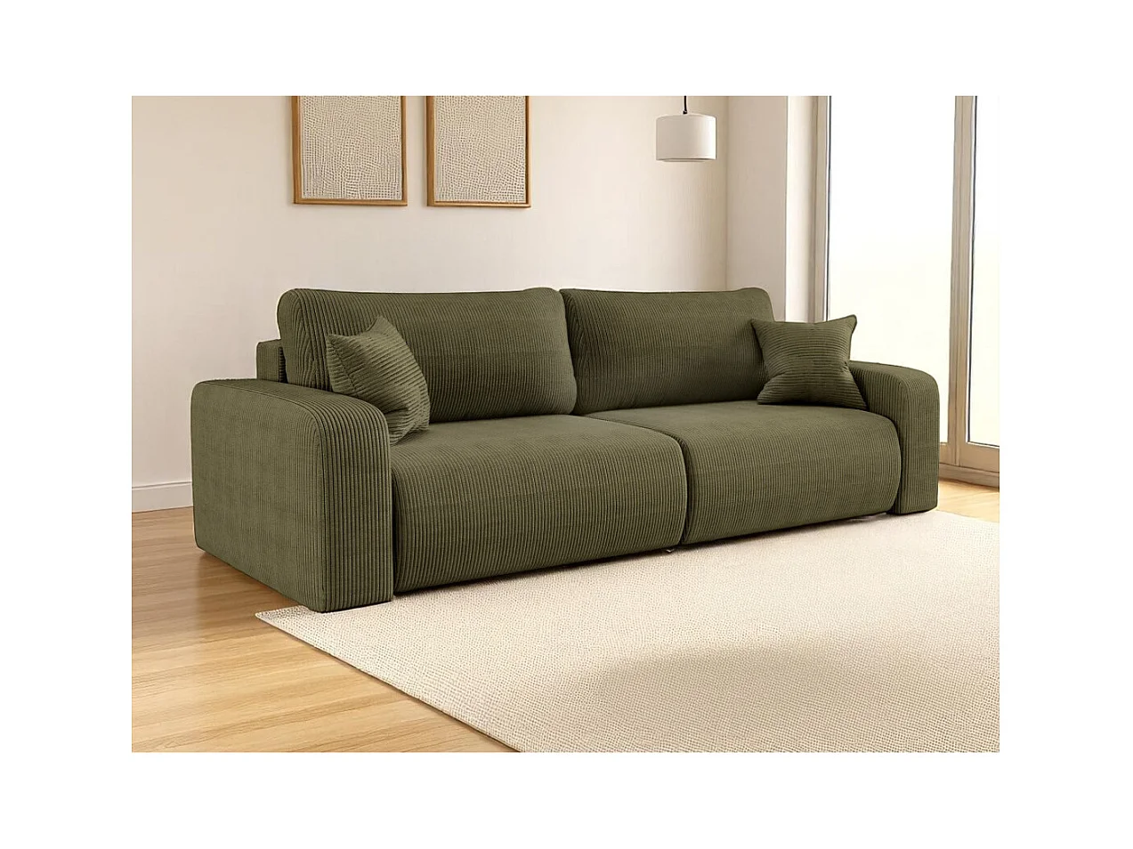Canapé droit 3 places ALYA convertible en velours côtelé - Vert kaki