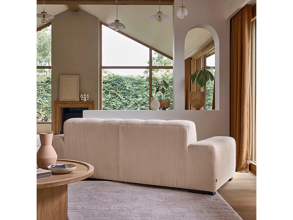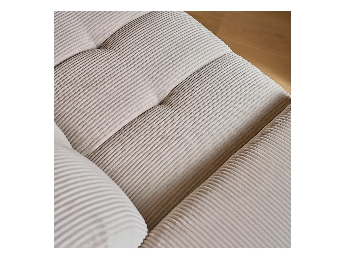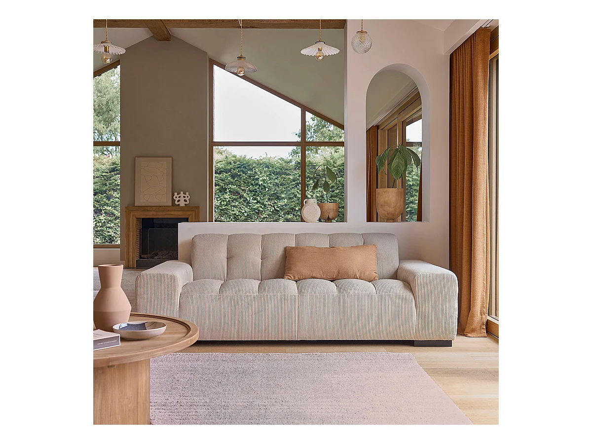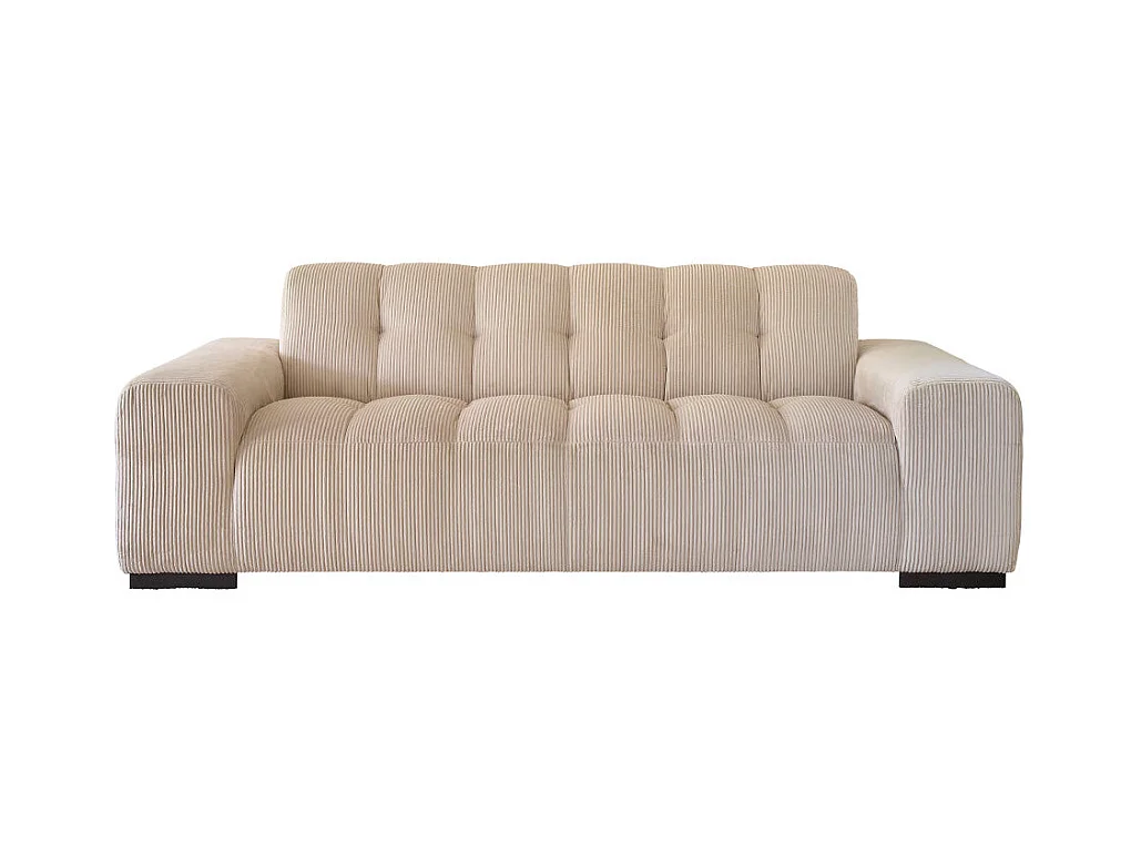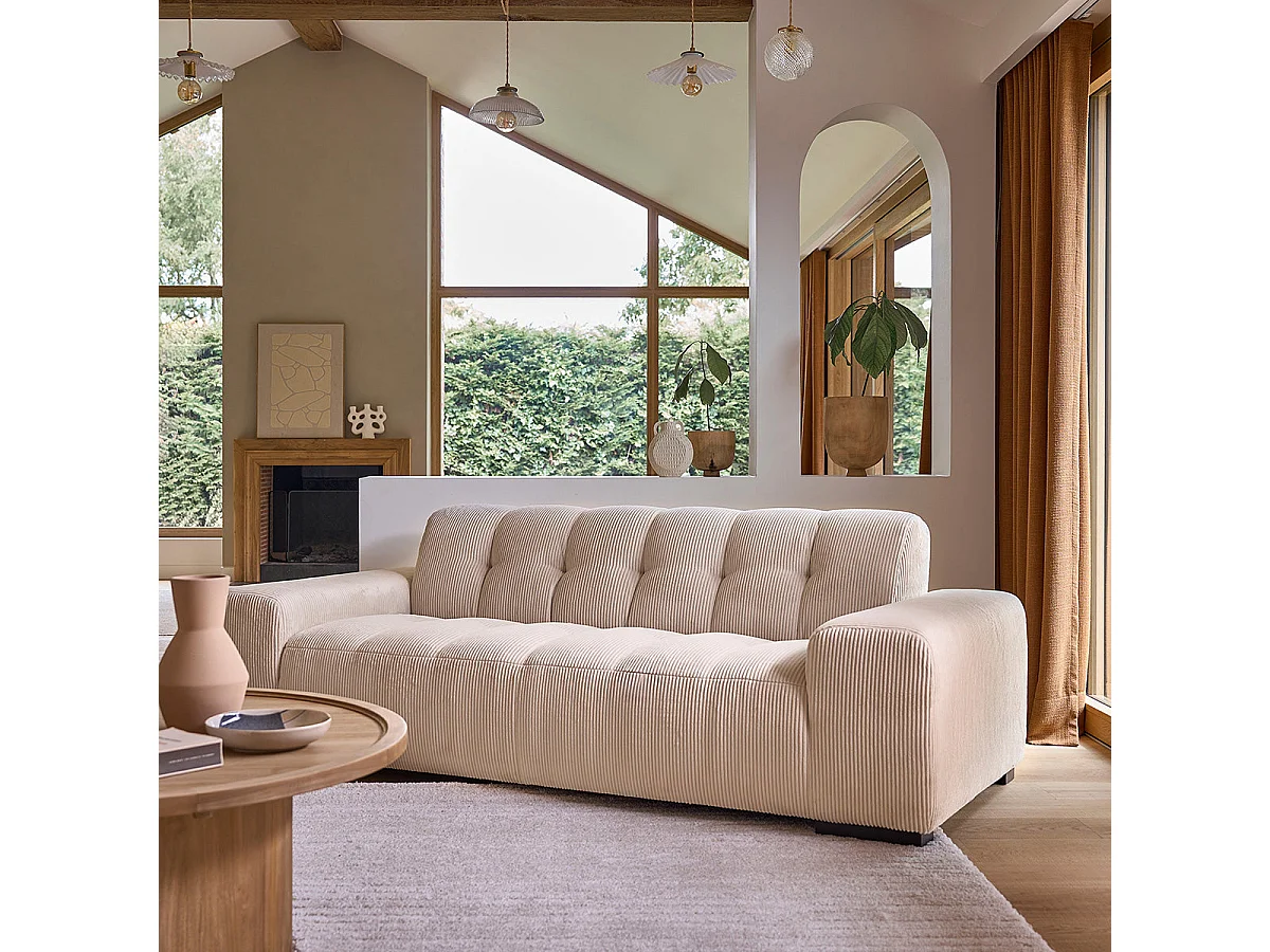 Canapé droit 3 places en velours côtelé écru