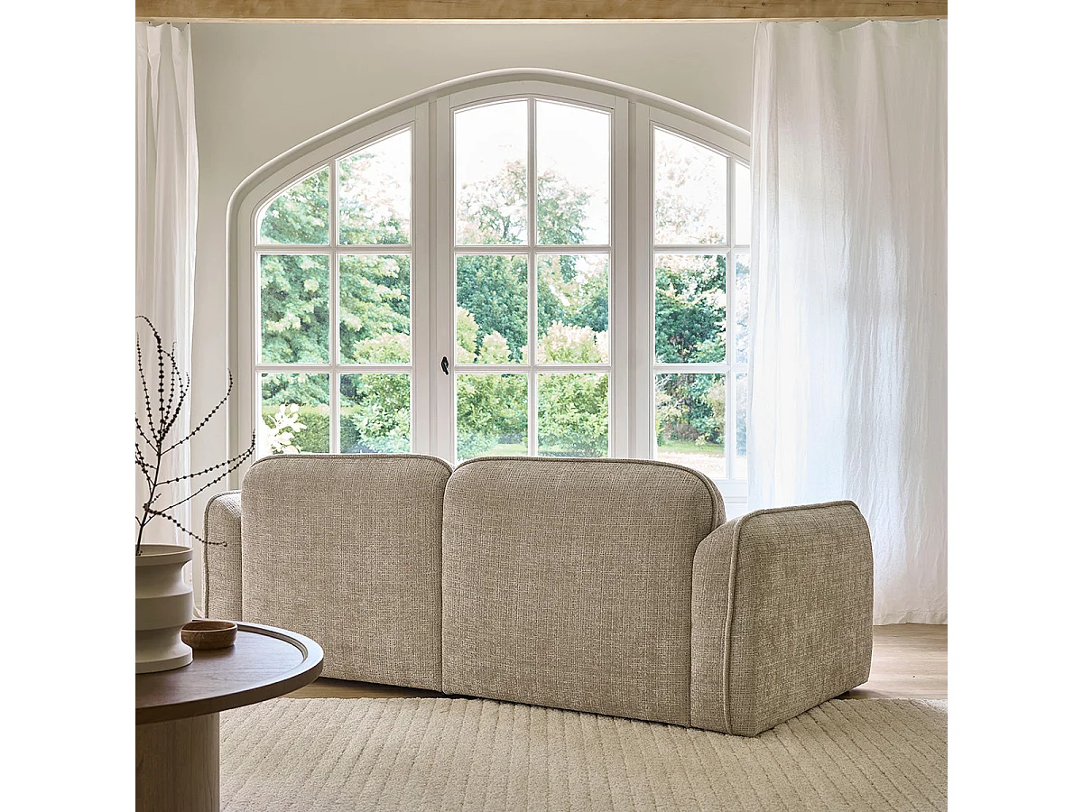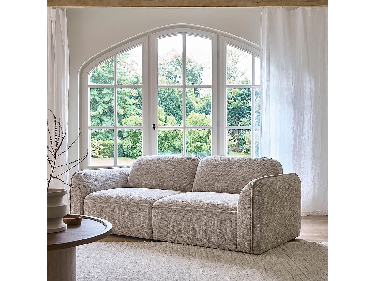Canapé droit 3 places en velours texturé beige