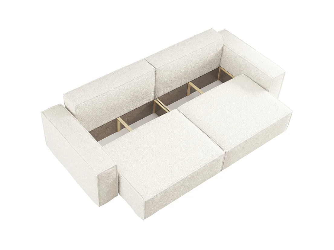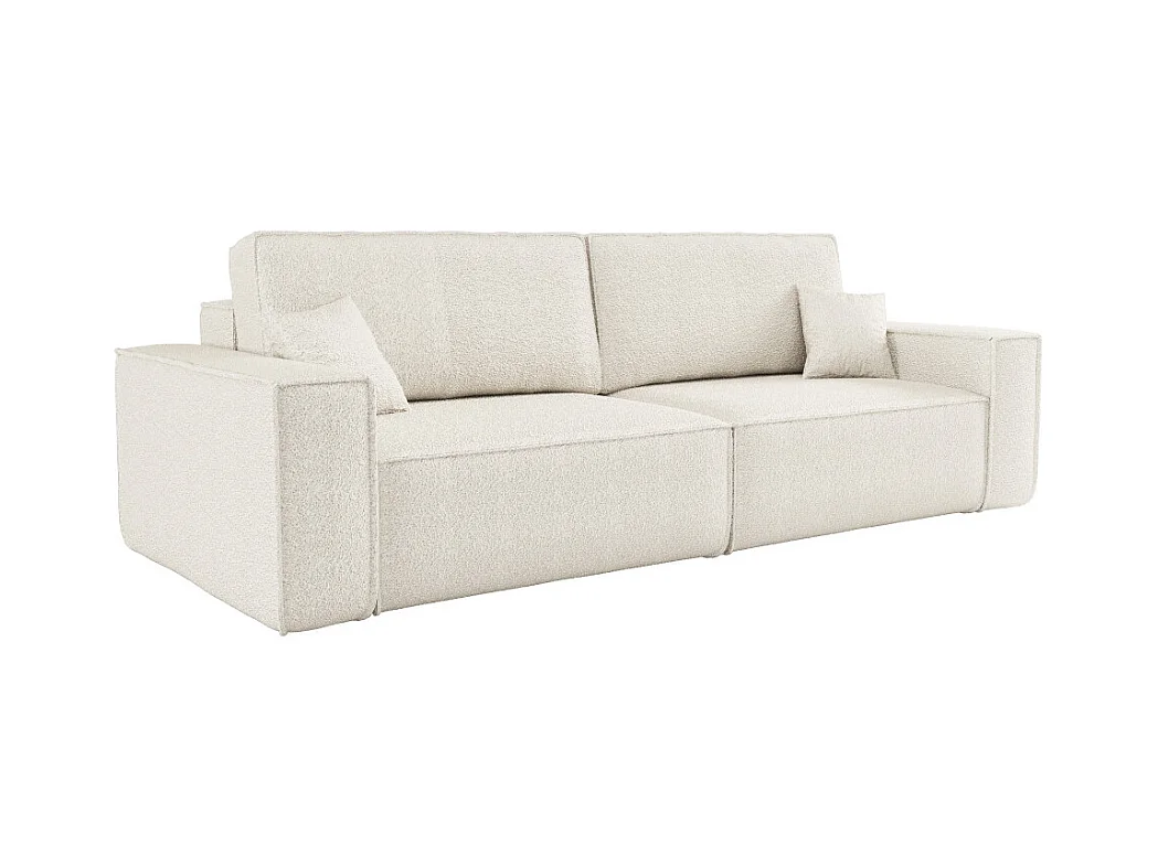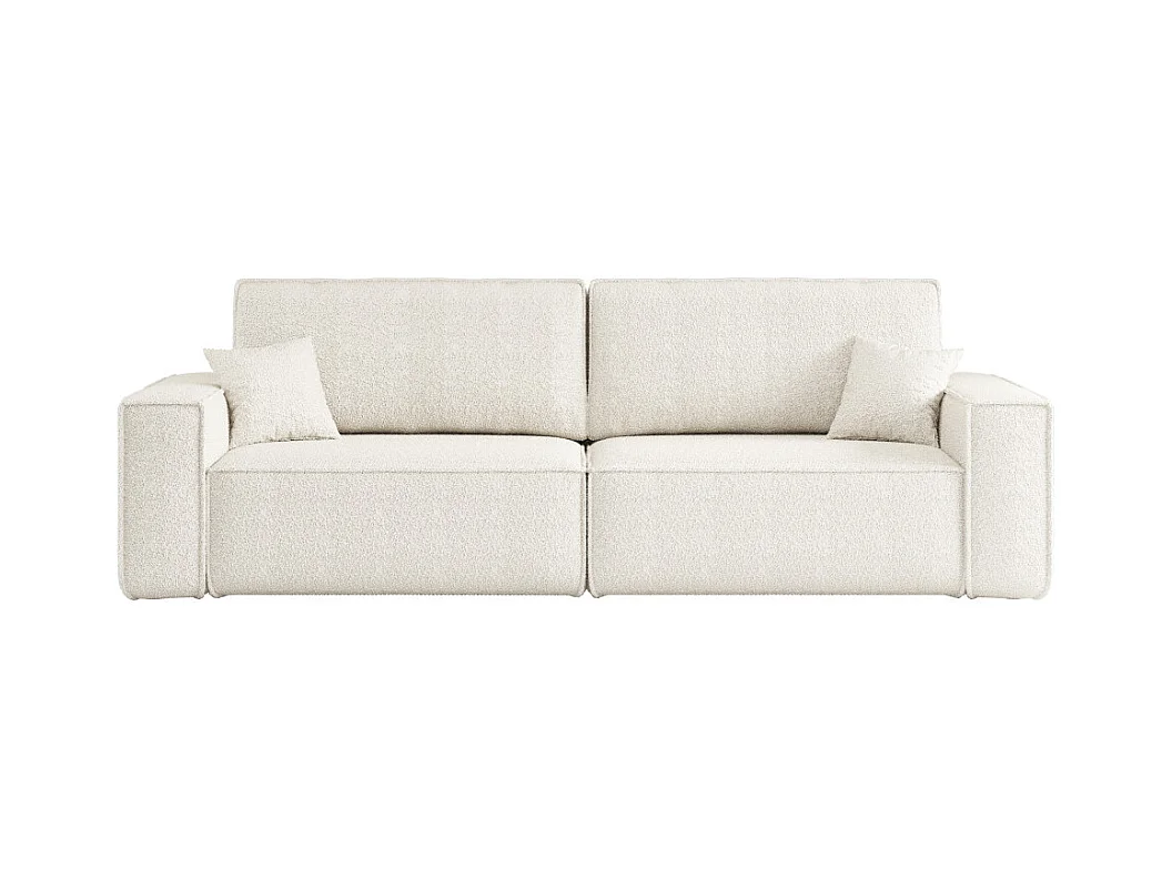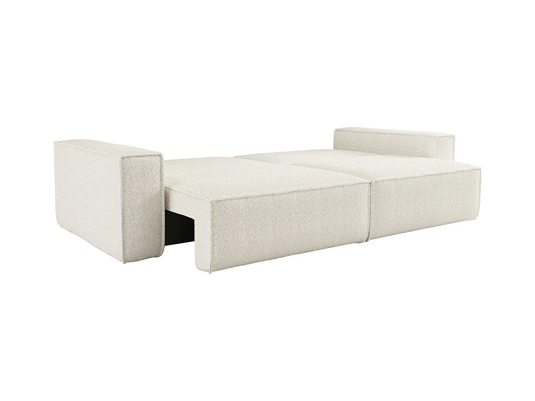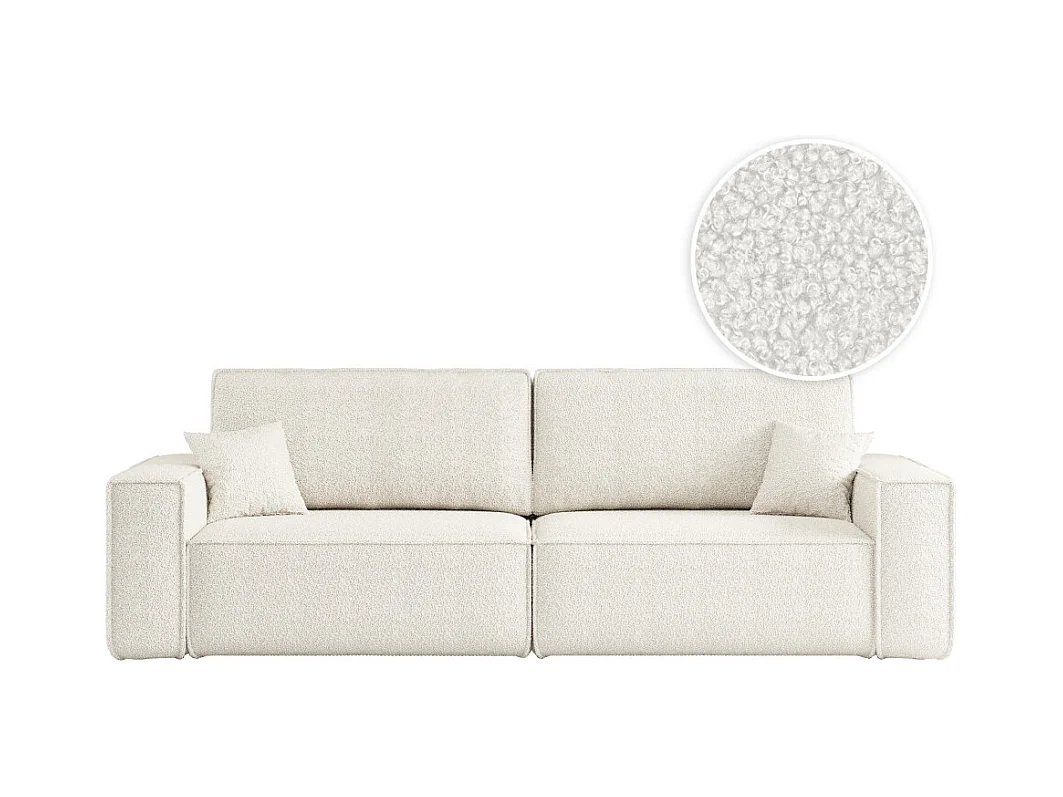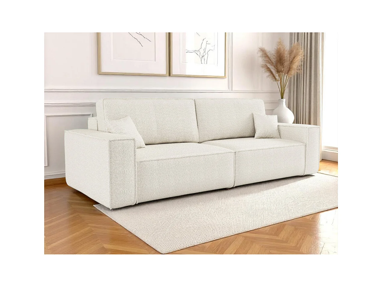 Canapé droit 3 places FARAH convertible en tissu bouclette - Blanc