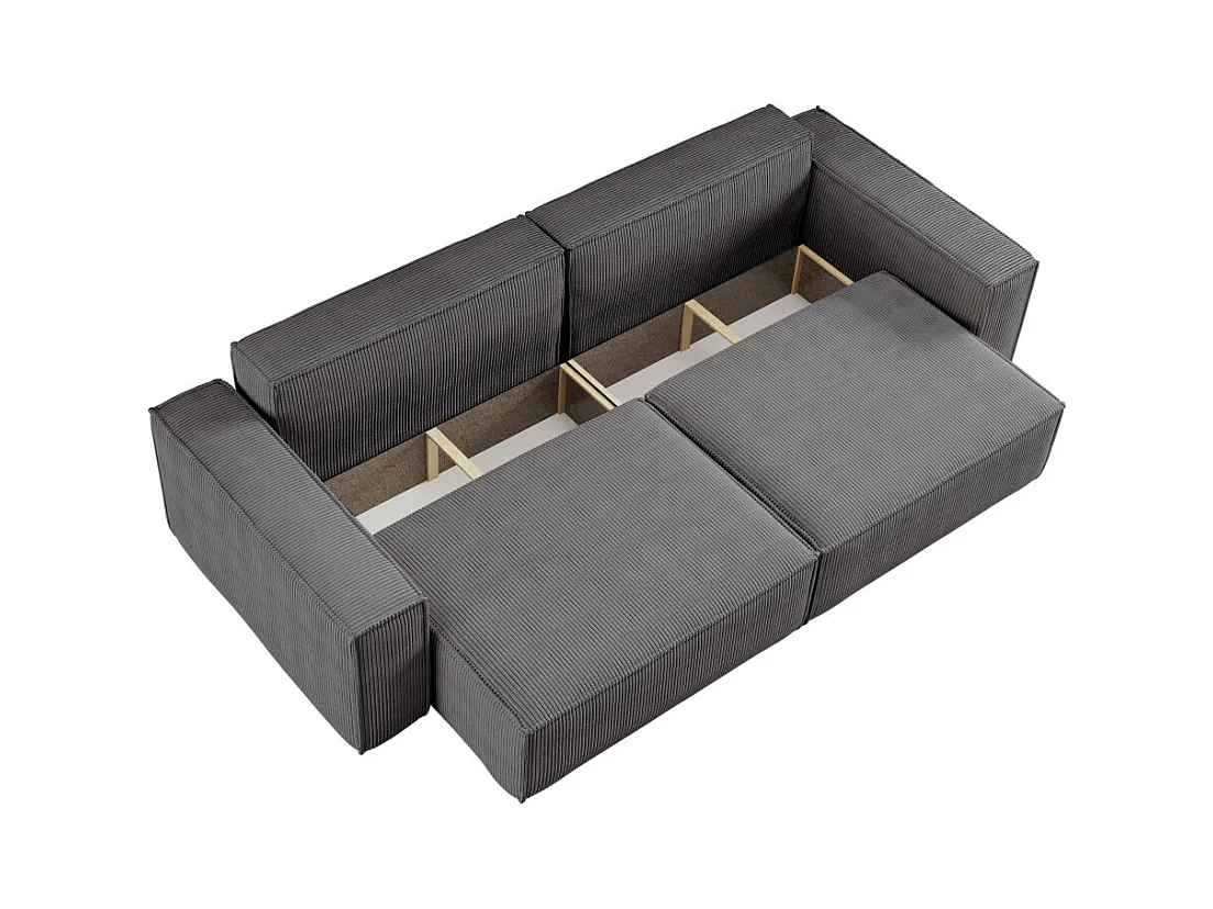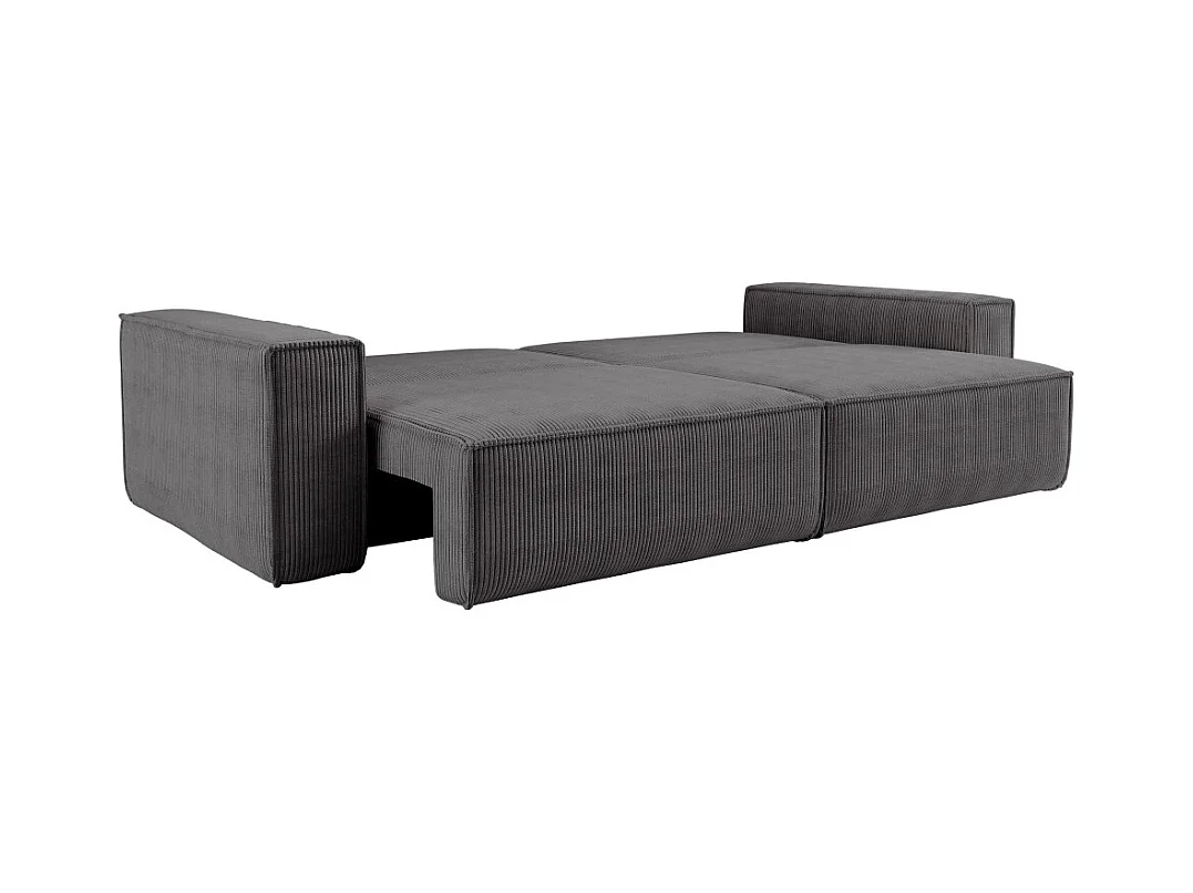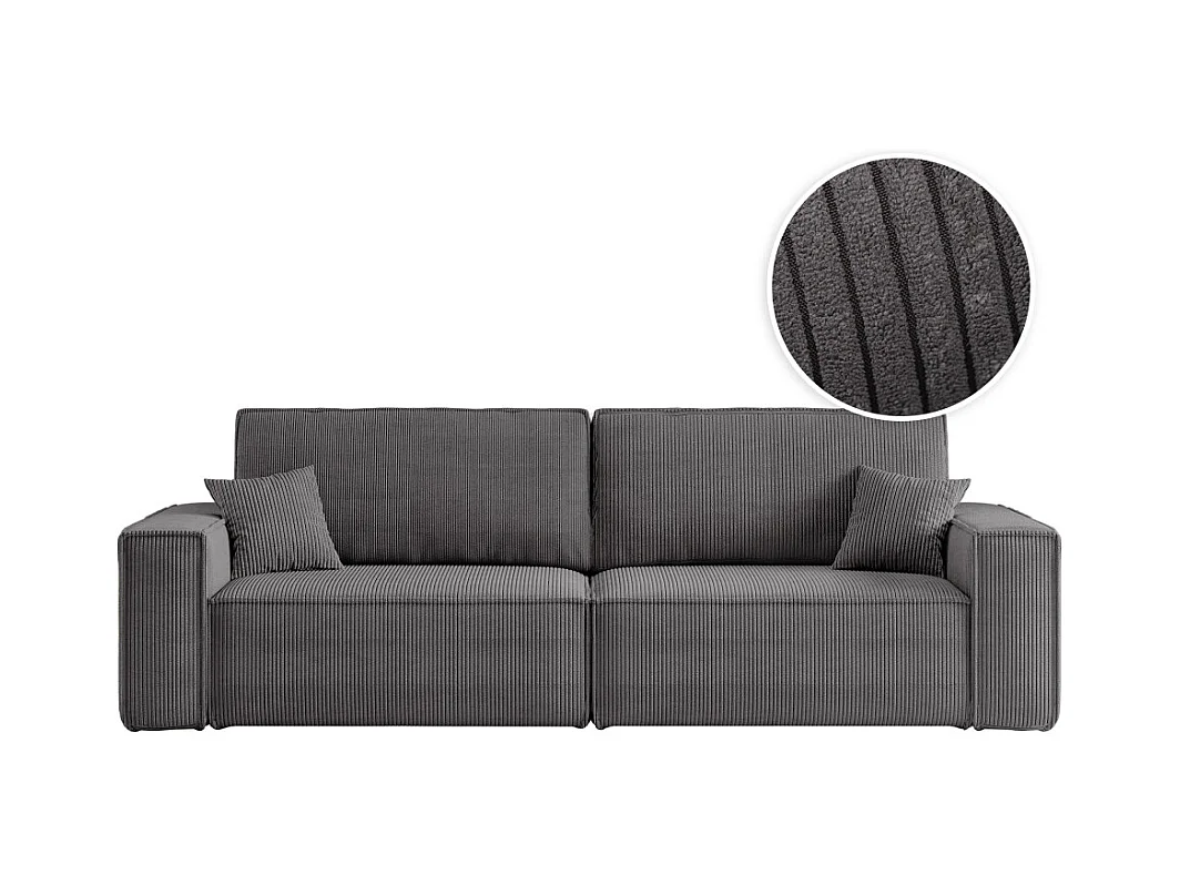 Canapé droit 3 places FARAH convertible en velours côtelé - Gris