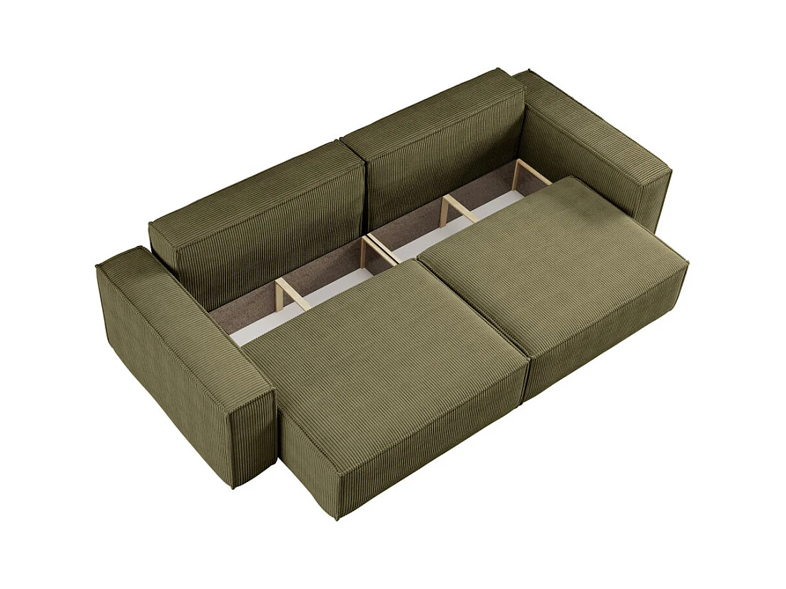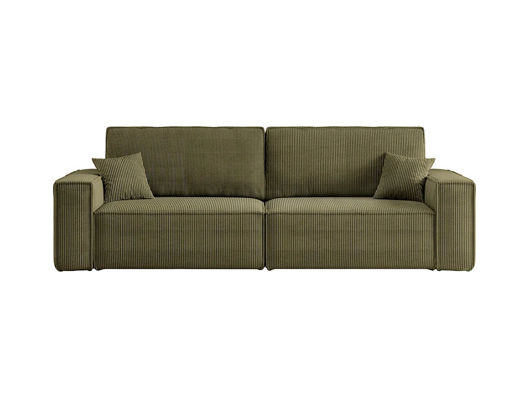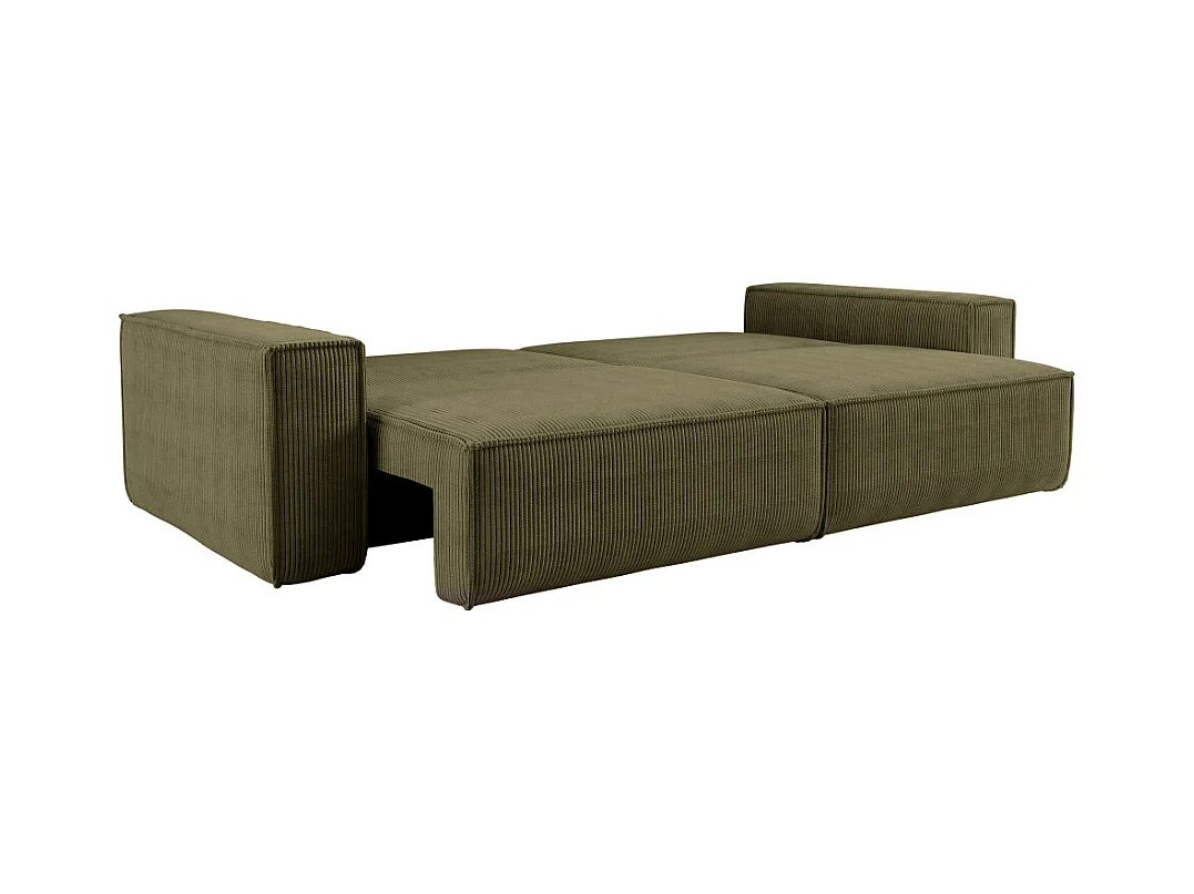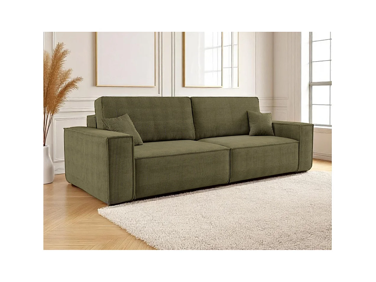 Canapé droit 3 places FARAH convertible en velours côtelé - Vert kaki