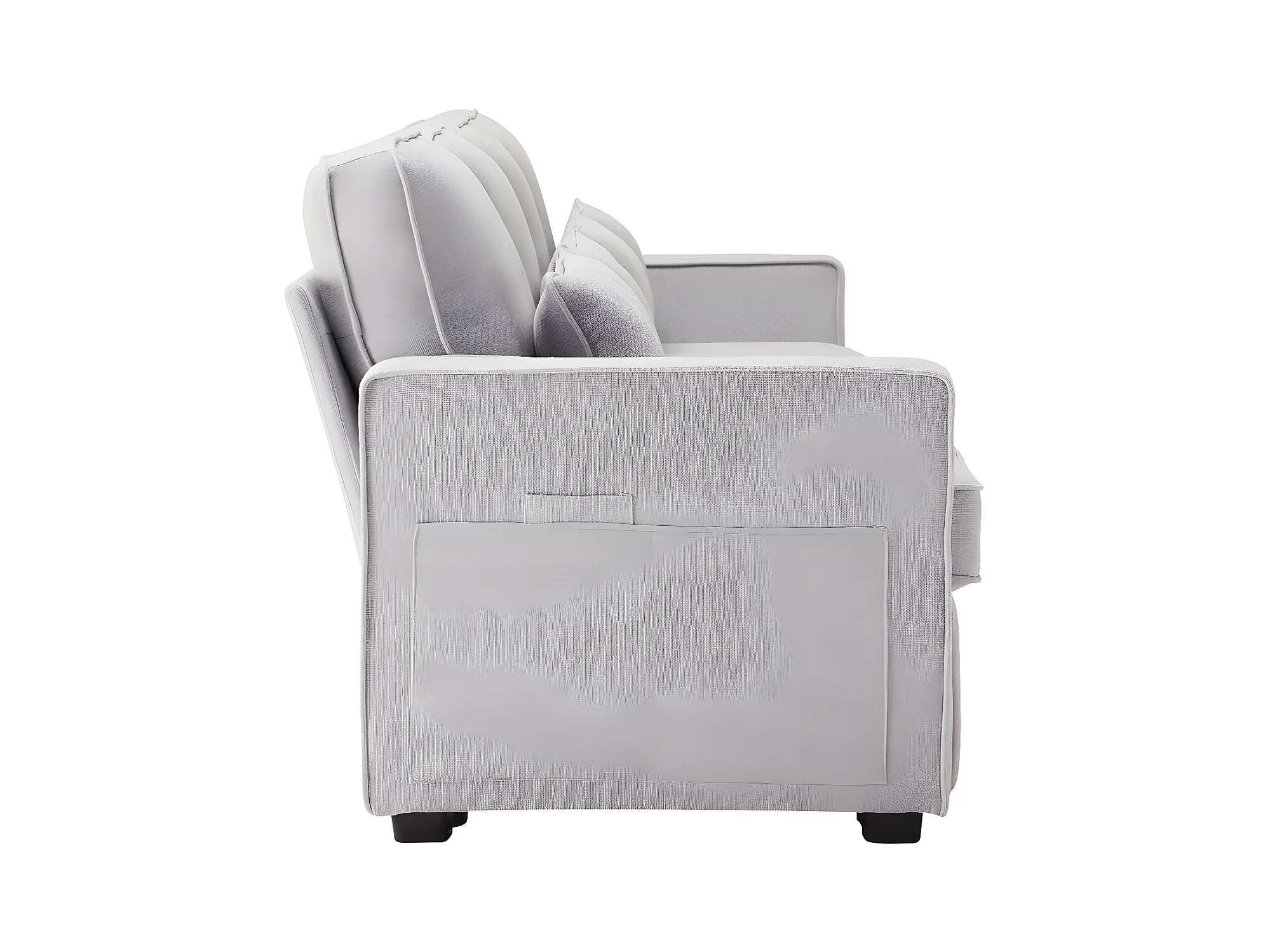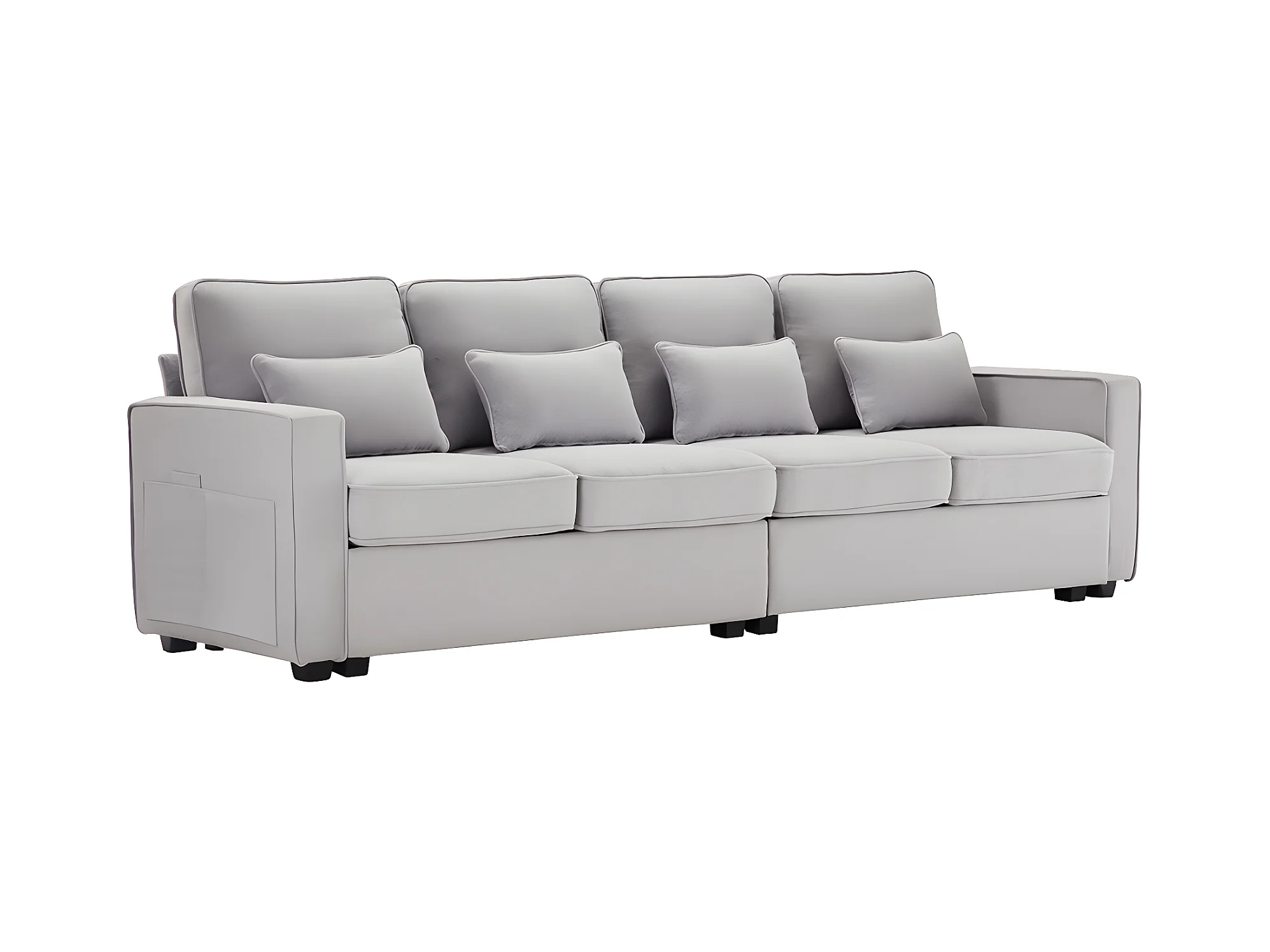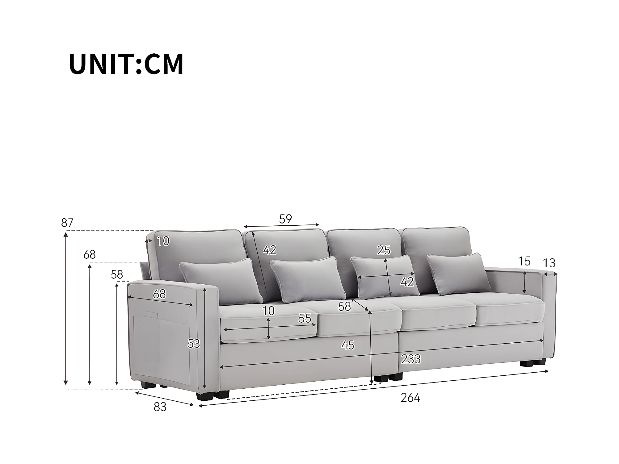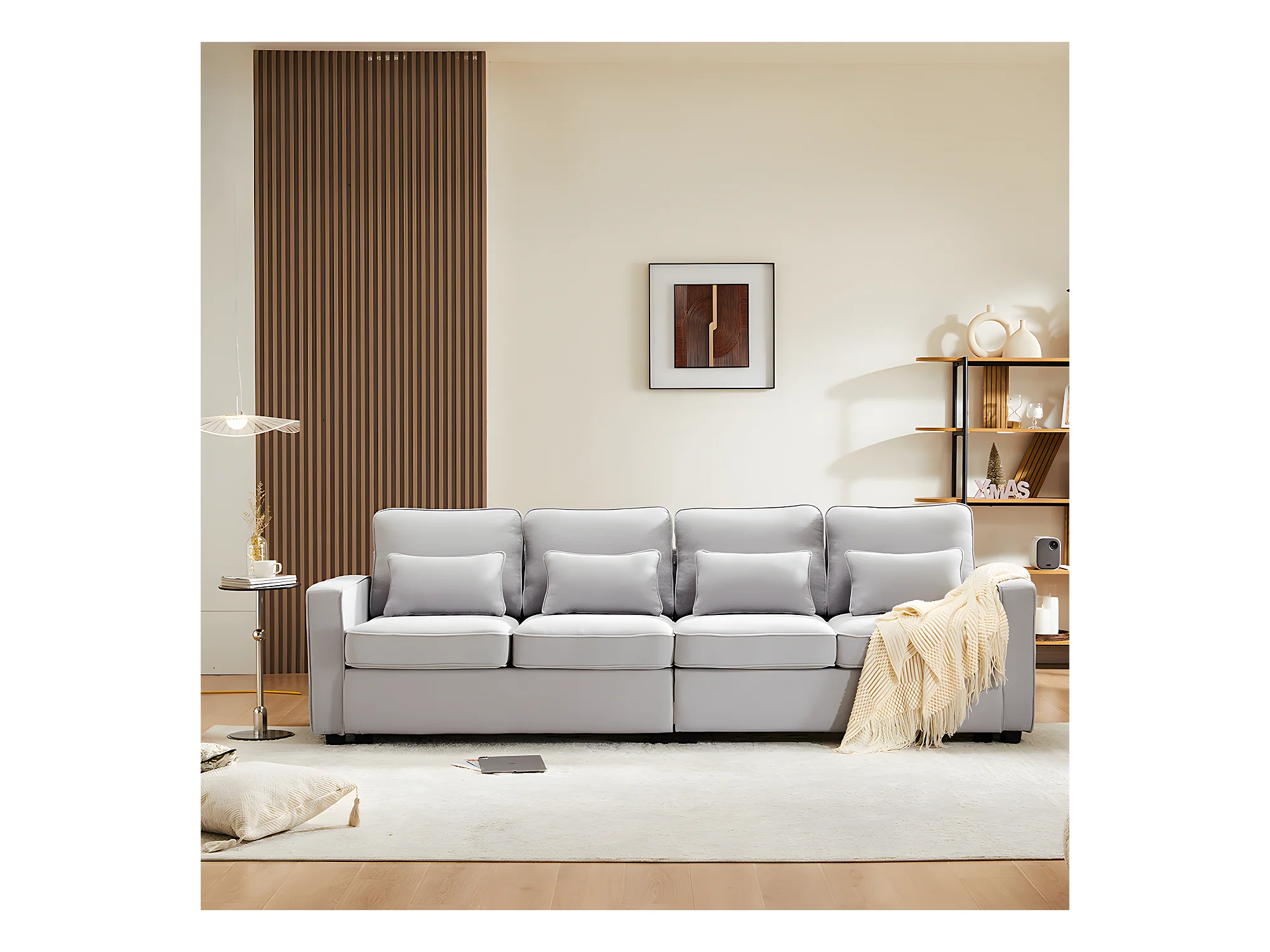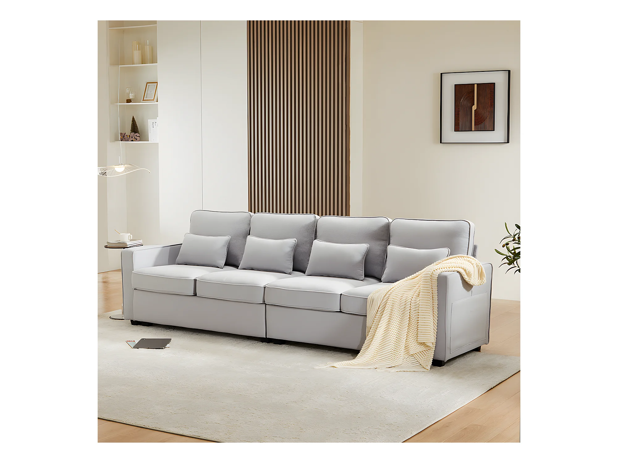 Canapé droit 4 places avec poches accoudoirs et 4 coussins pour le salon l'appartement le bureau Tissu de lin Gris