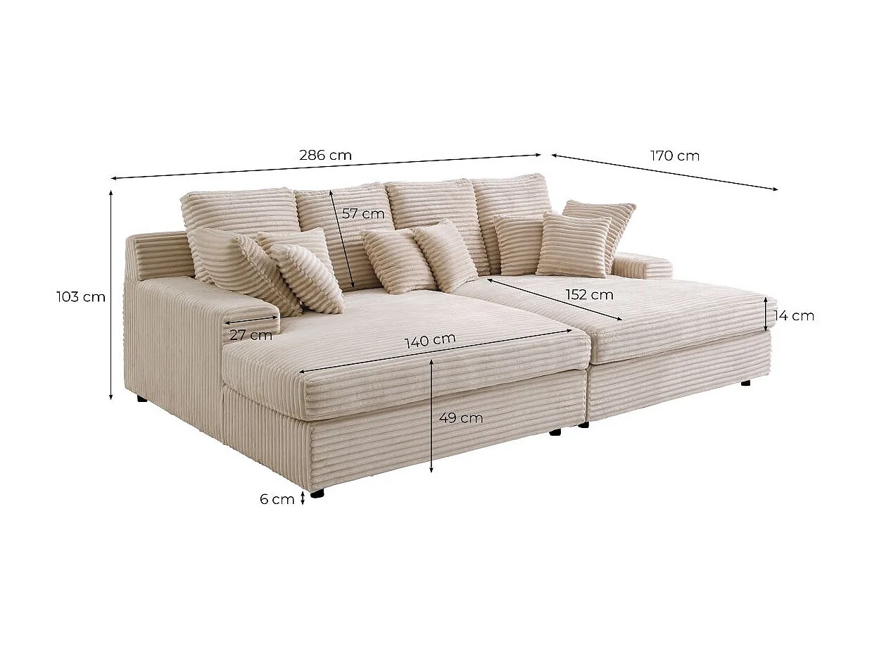 Canapé droit 4 places FLUFFY avec double méridienne et assise profonde en velours côtelé Terracotta