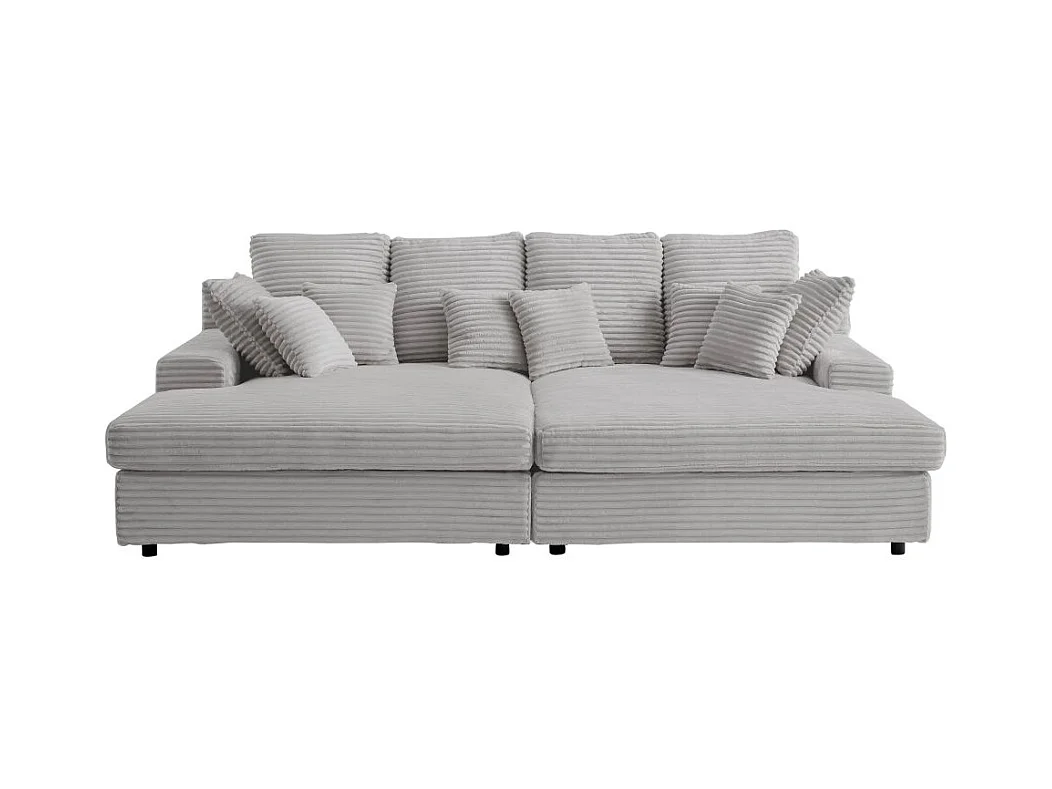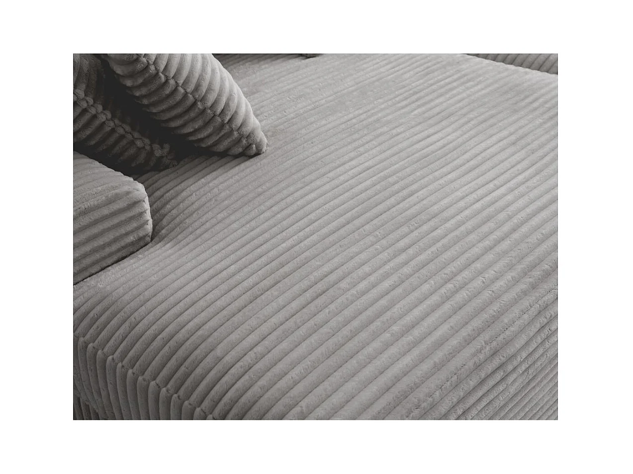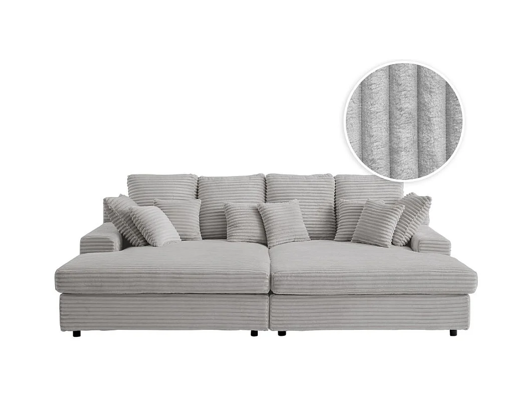 Canapé droit 4 places FLUFFY double méridienne et assise profonde en velours côtelé - gris clair