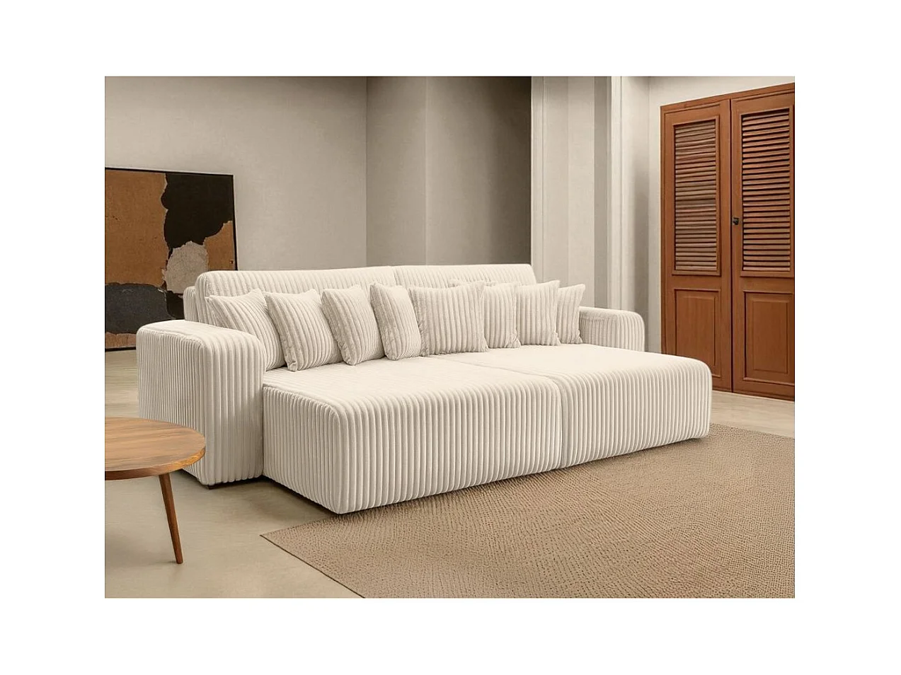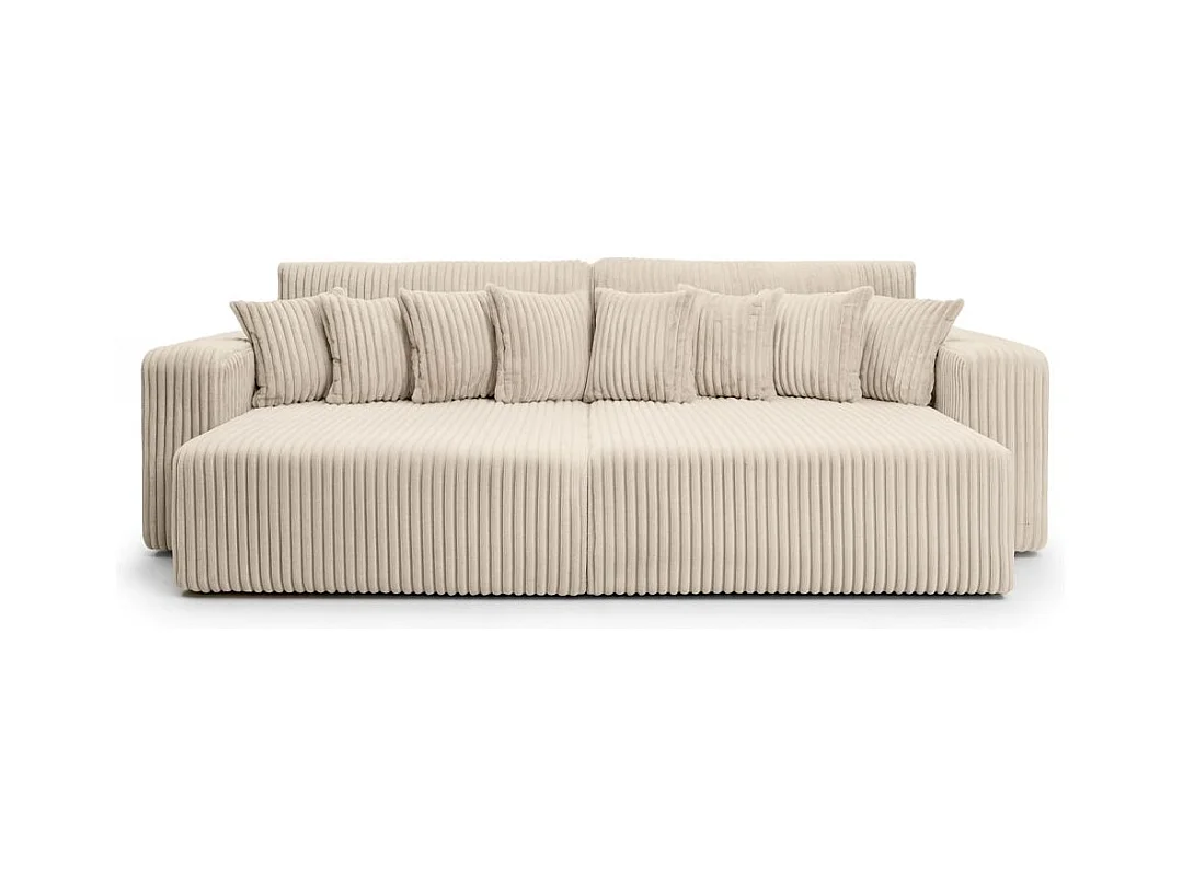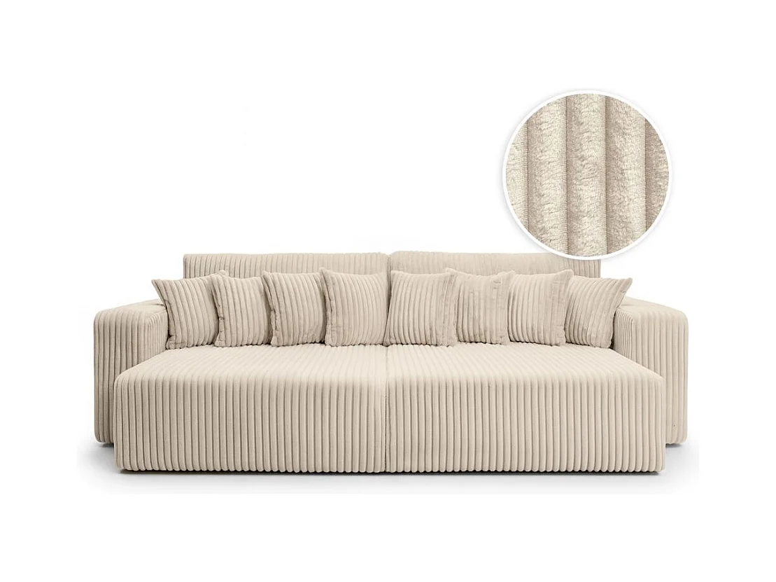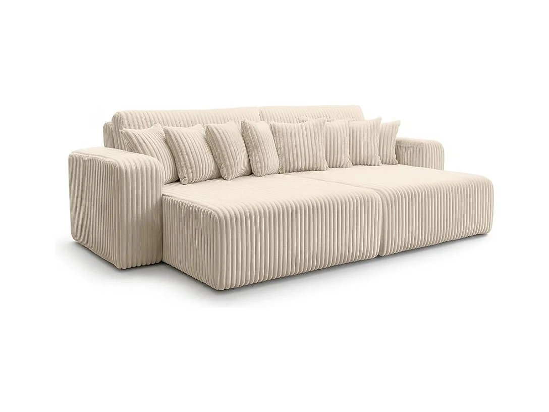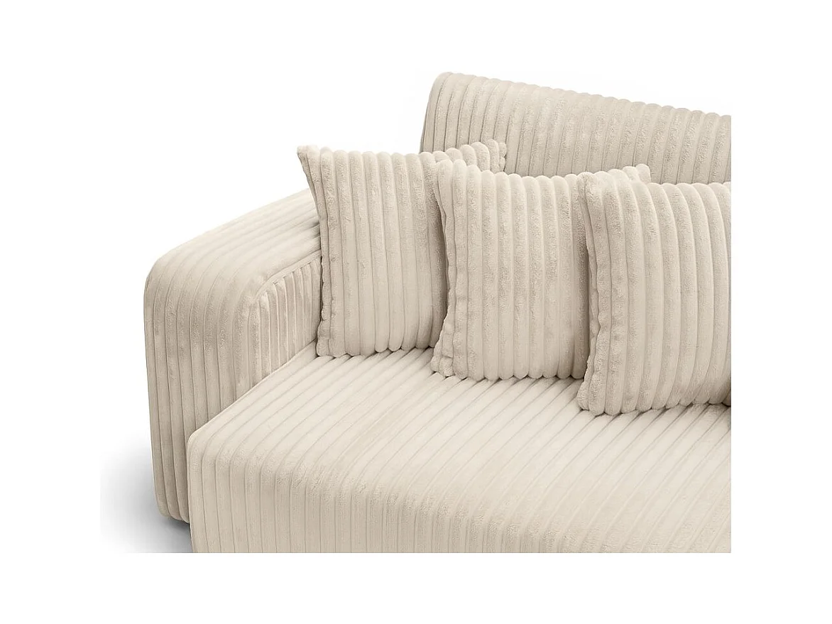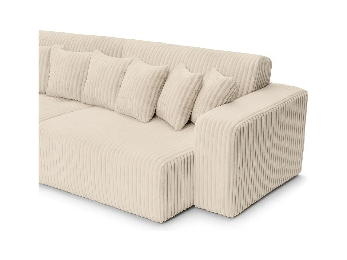 Canapé droit 4 places JADE double méridienne et assise profonde en velours côtelé épais - Beige