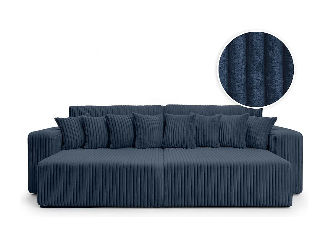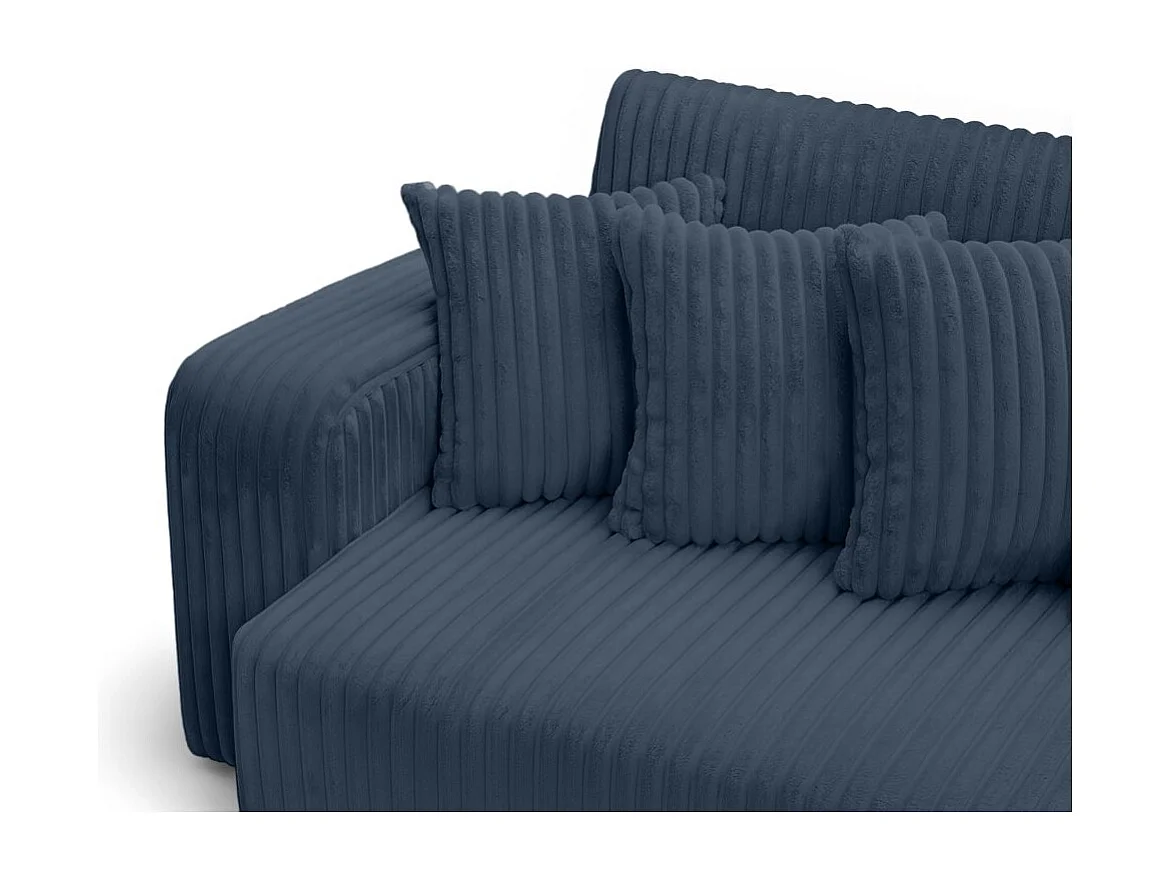 Canapé droit 4 places JADE double méridienne et assise profonde en velours côtelé épais - Bleu foncé
