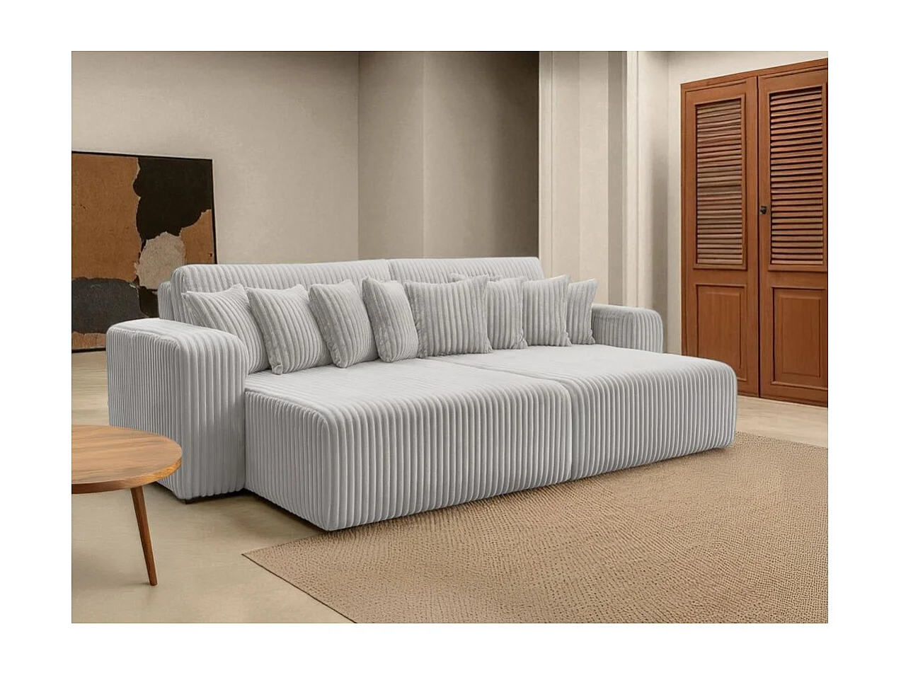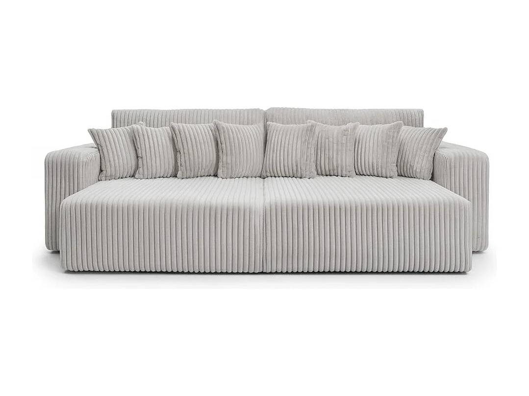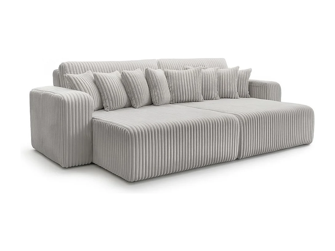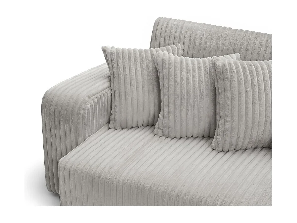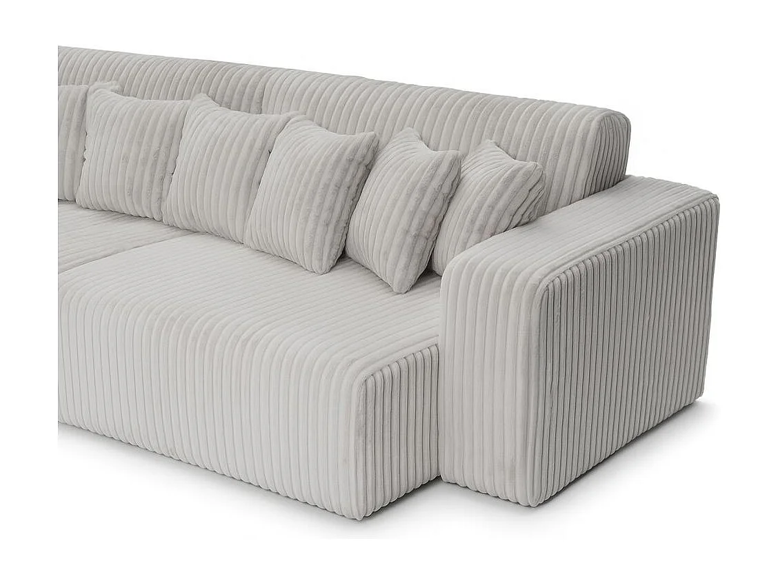 Canapé droit 4 places JADE double méridienne et assise profonde en velours côtelé épais - Gris clair