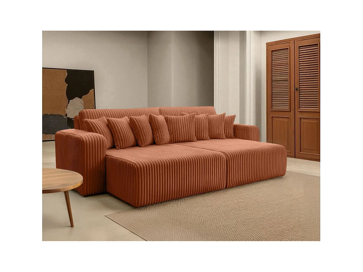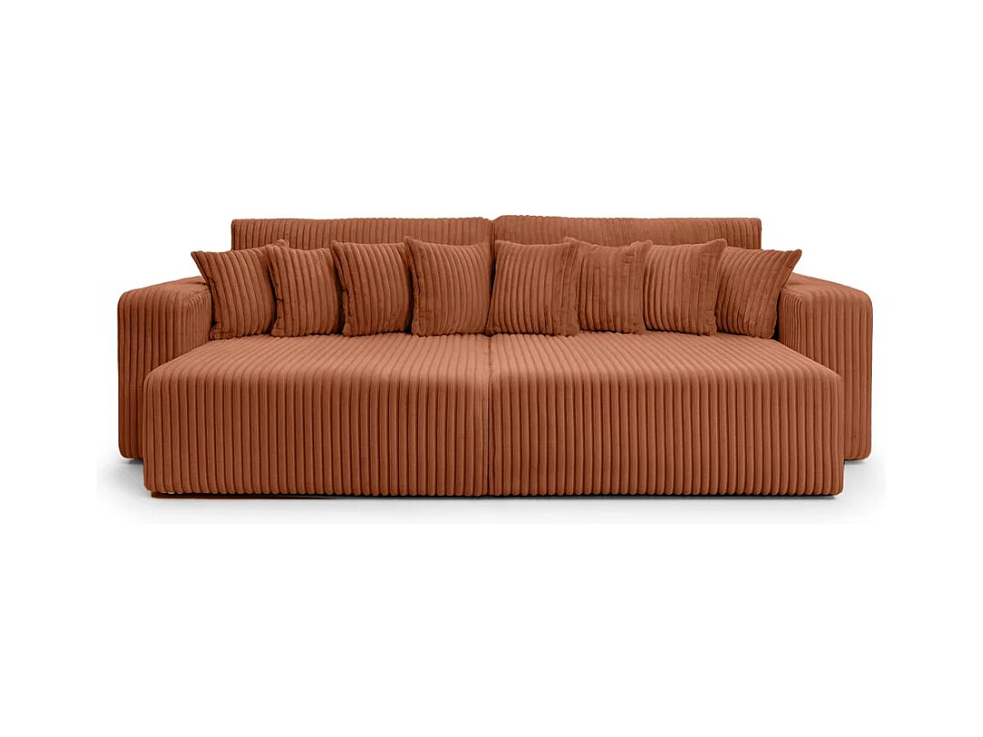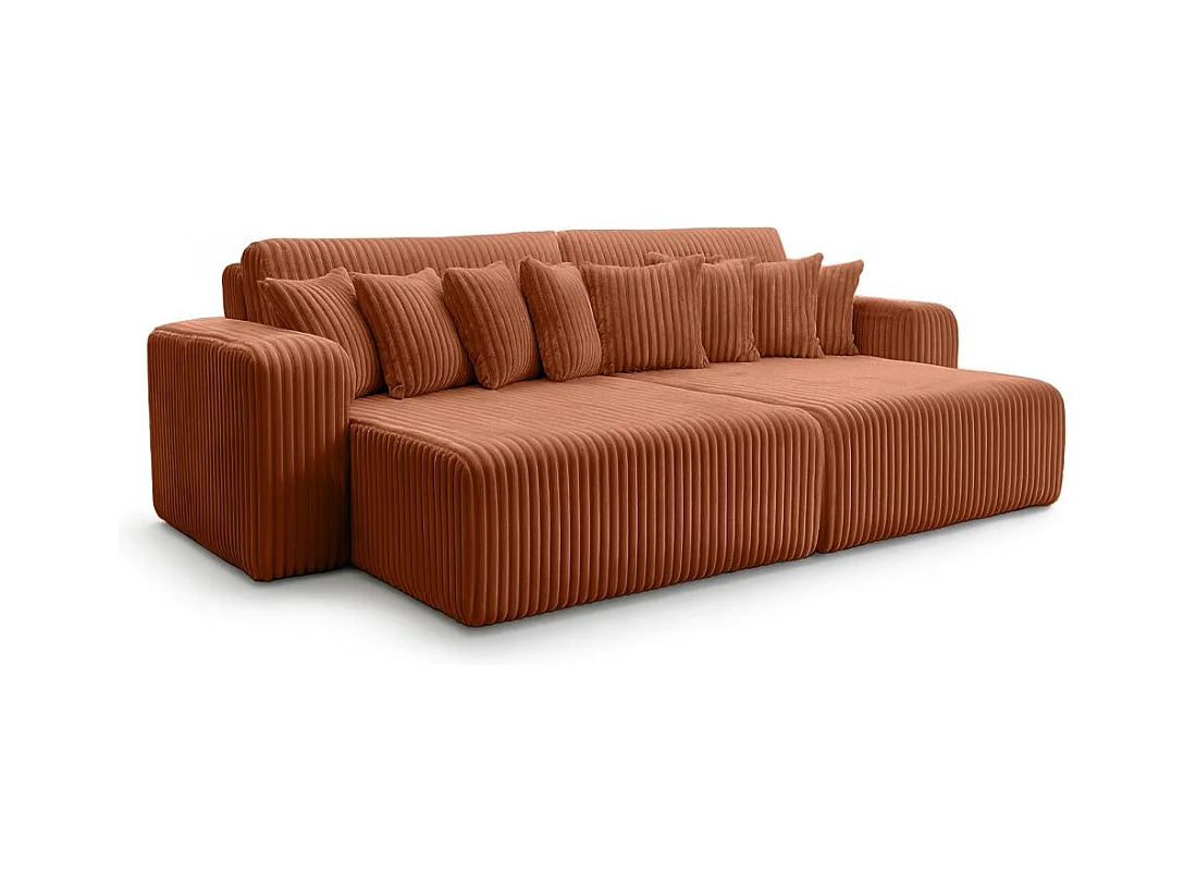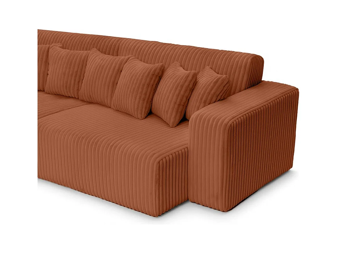 Canapé droit 4 places JADE double méridienne et assise profonde en velours côtelé épais - Terracotta