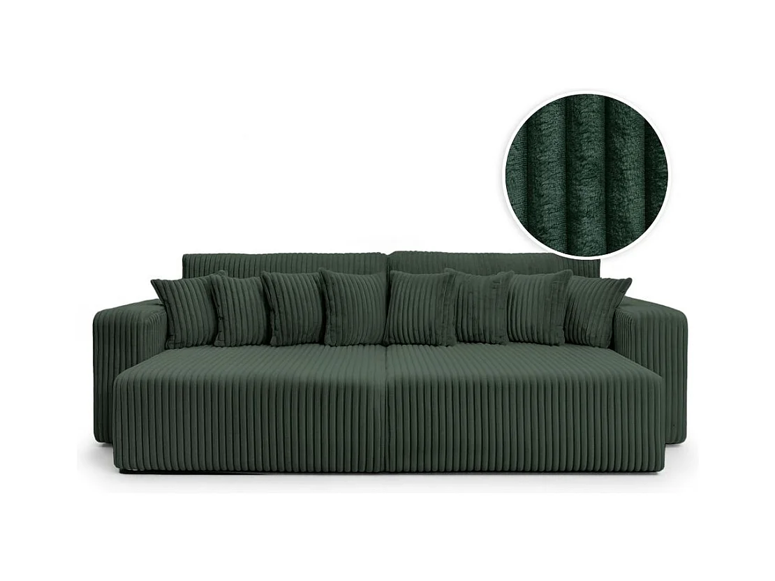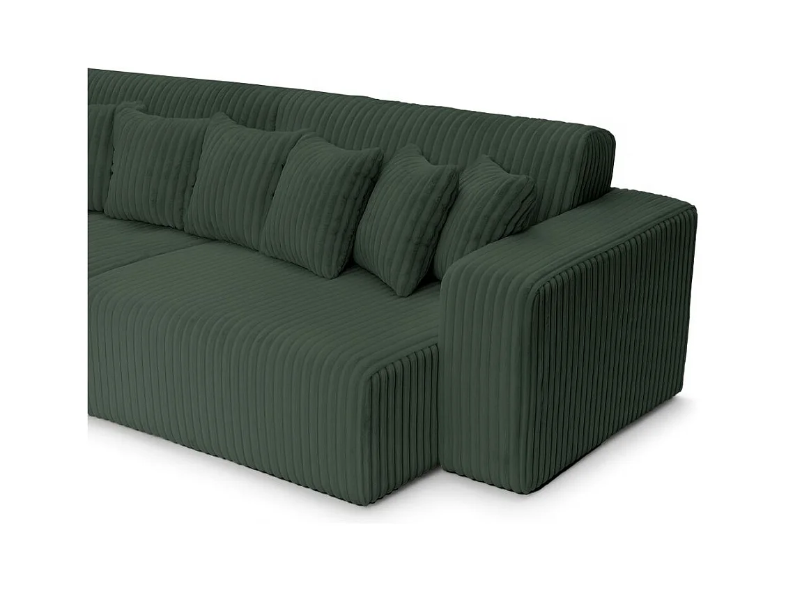 Canapé droit 4 places JADE double méridienne et assise profonde en velours côtelé épais - Vert foncé