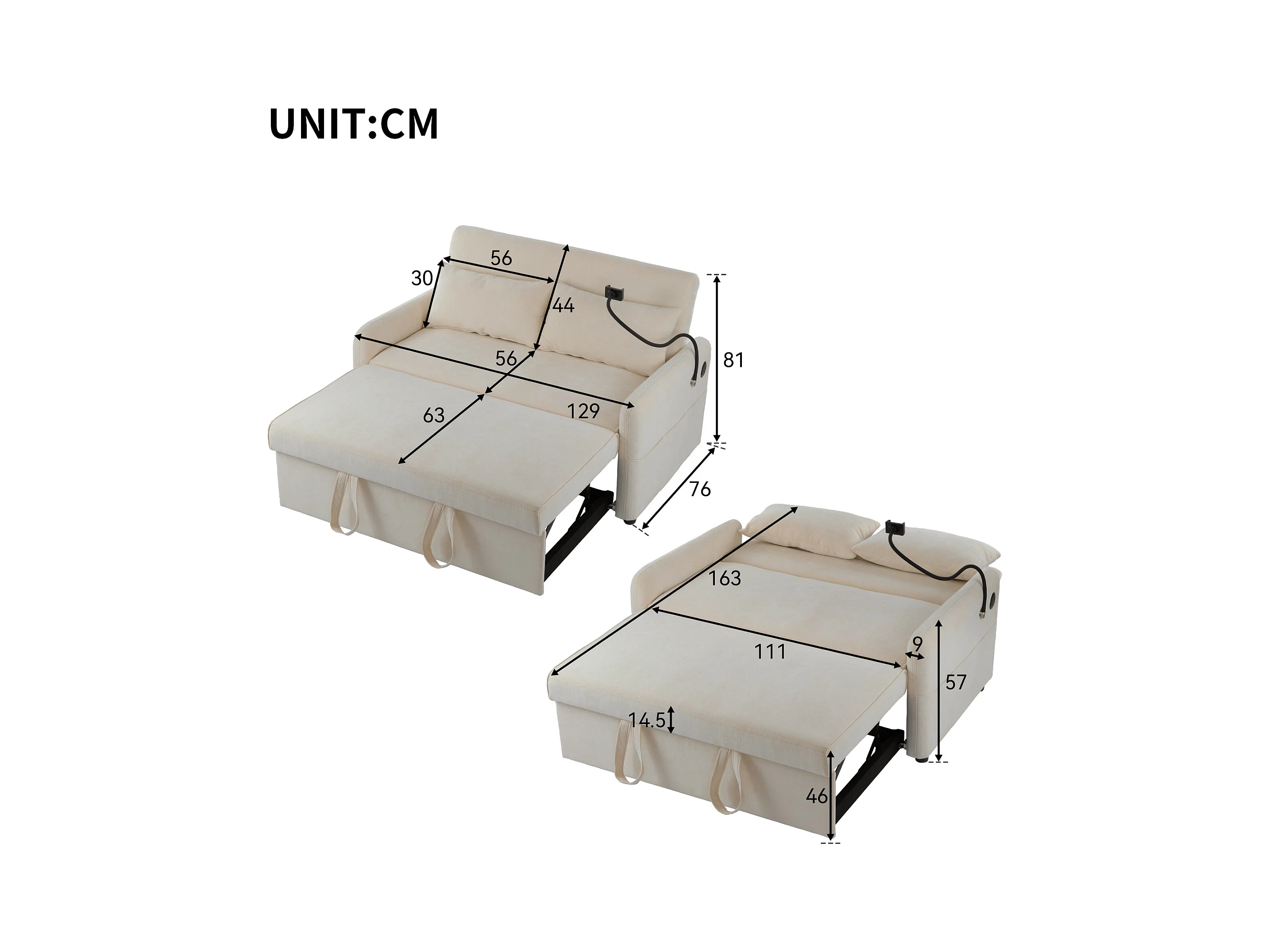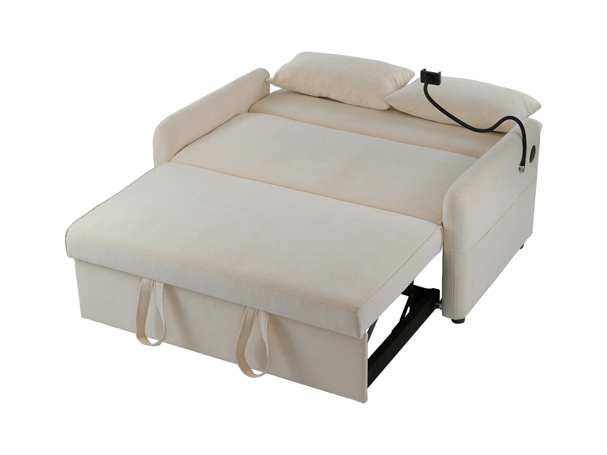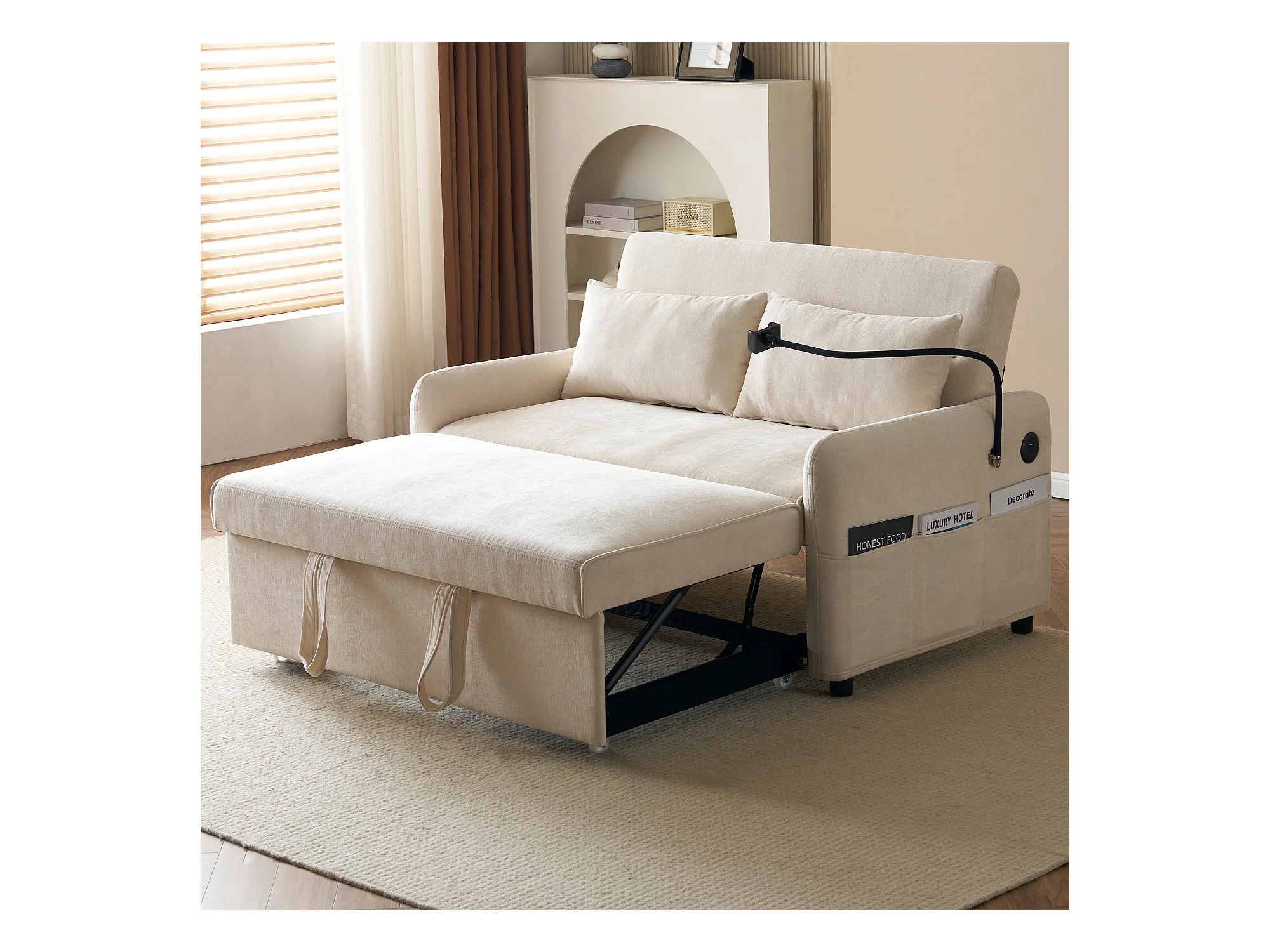 Canapé droit beige - Canapé pliant avec support téléphone et poche de rangement - dossier réglable - pour salon et chambre