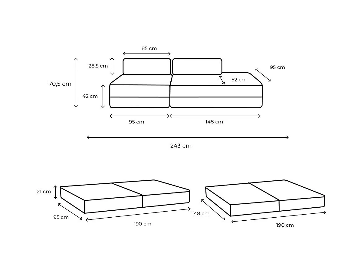 Canapé droit modulable et convertible 3 places - Tissu tweed - Marron