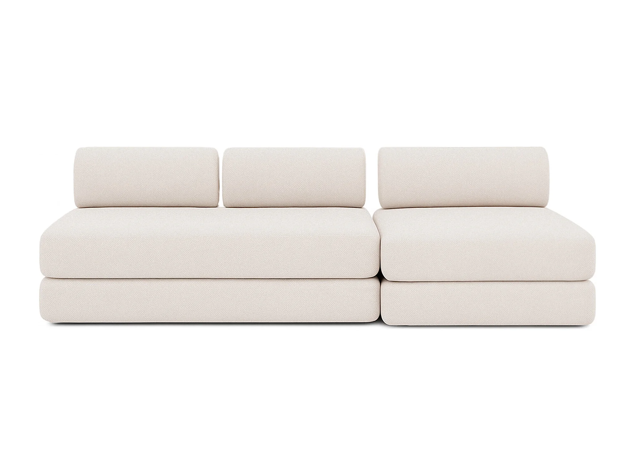 Canapé droit de jardin modulable et convertible 4 places - Tissu imperméable - Gris