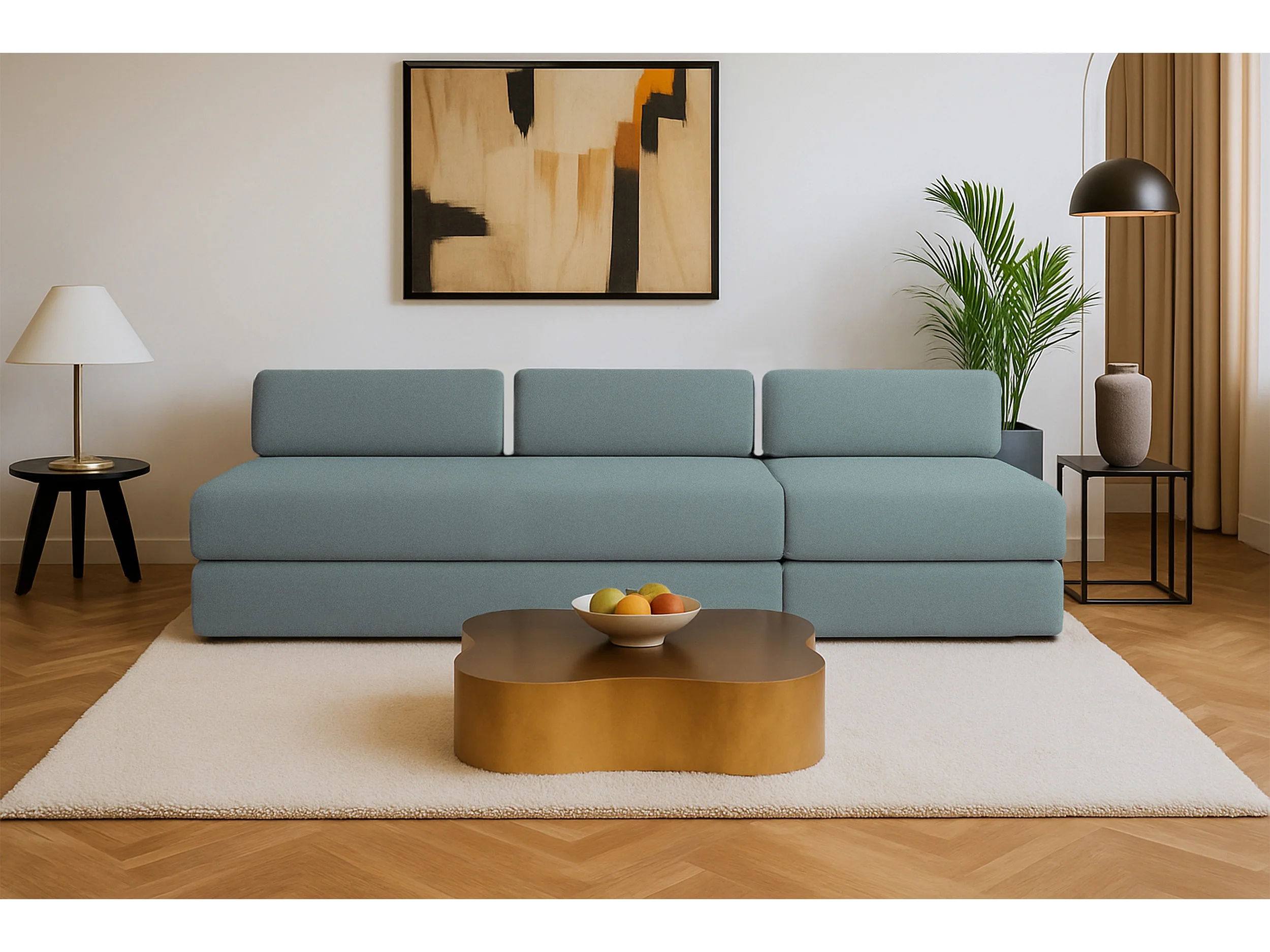 Canapé droit modulable et convertible 4 places - Tissu lisse - Bleu vert