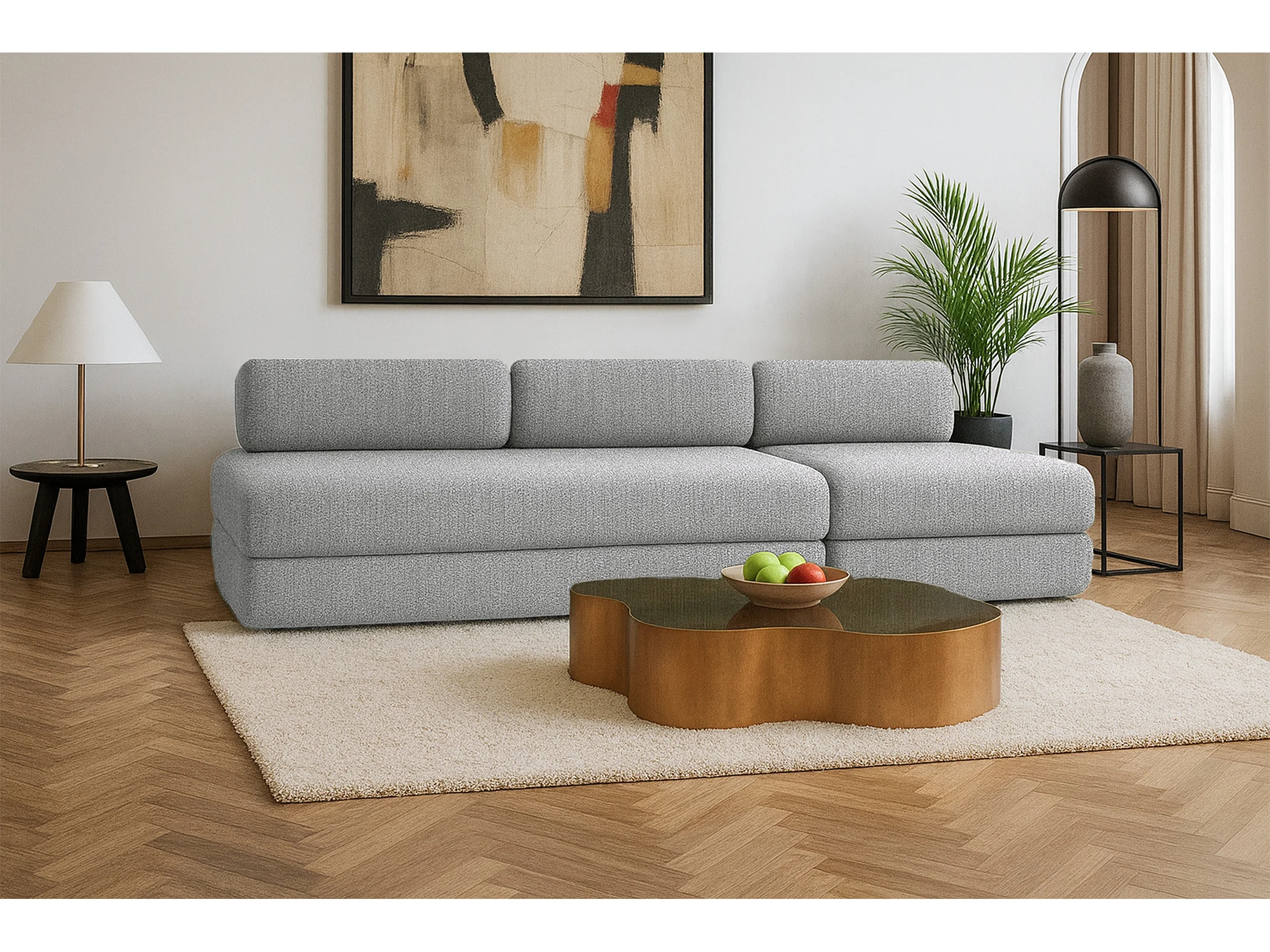 Canapé droit modulable et convertible 4 places - Tissu tweed - Gris