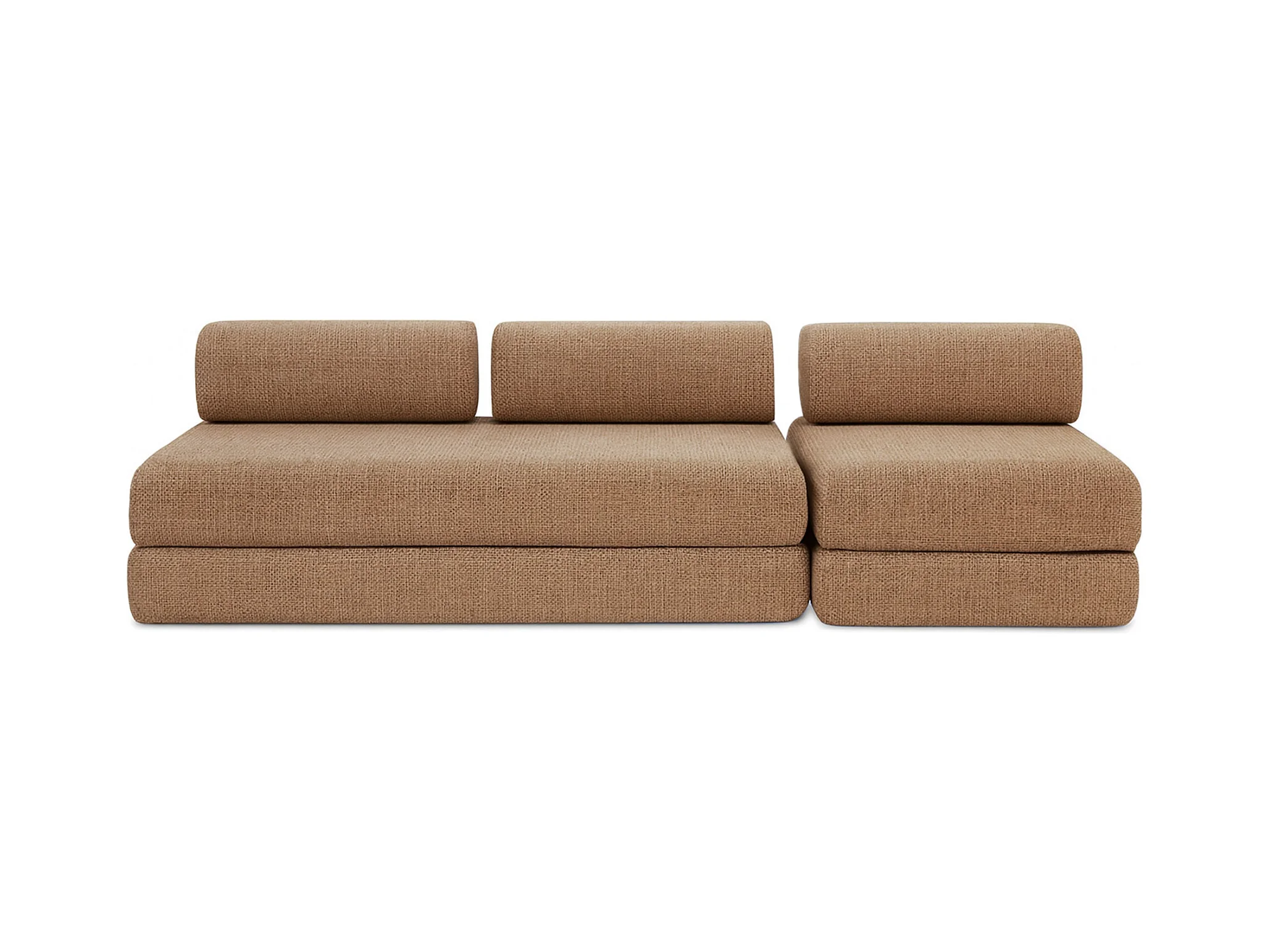 Canapé droit modulable et convertible 4 places - Tissu tweed - Marron