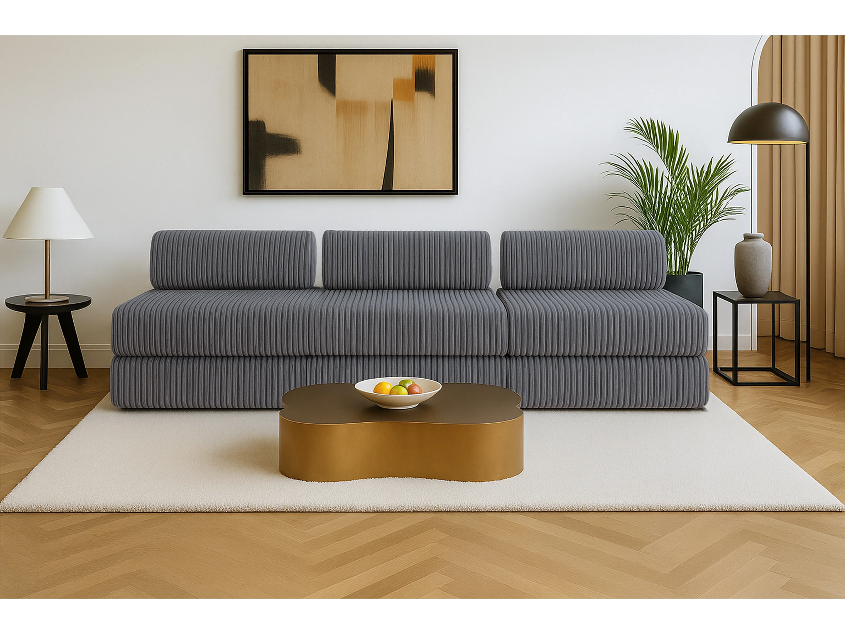 Canapé droit modulable et convertible 4 places - Velours côtelé XL - Gris