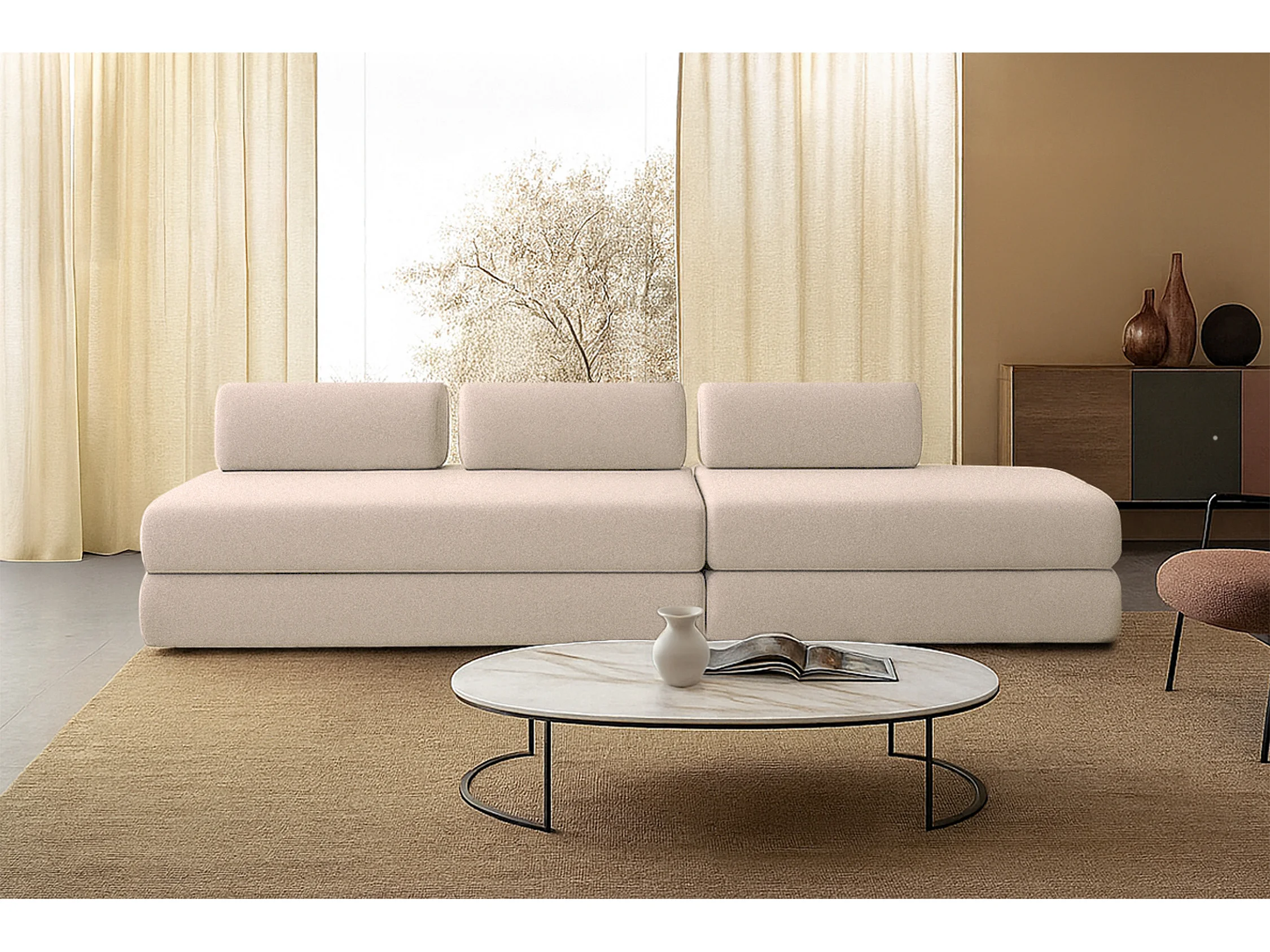 Canapé droit modulable et convertible 5 places - Tissu lisse - Beige