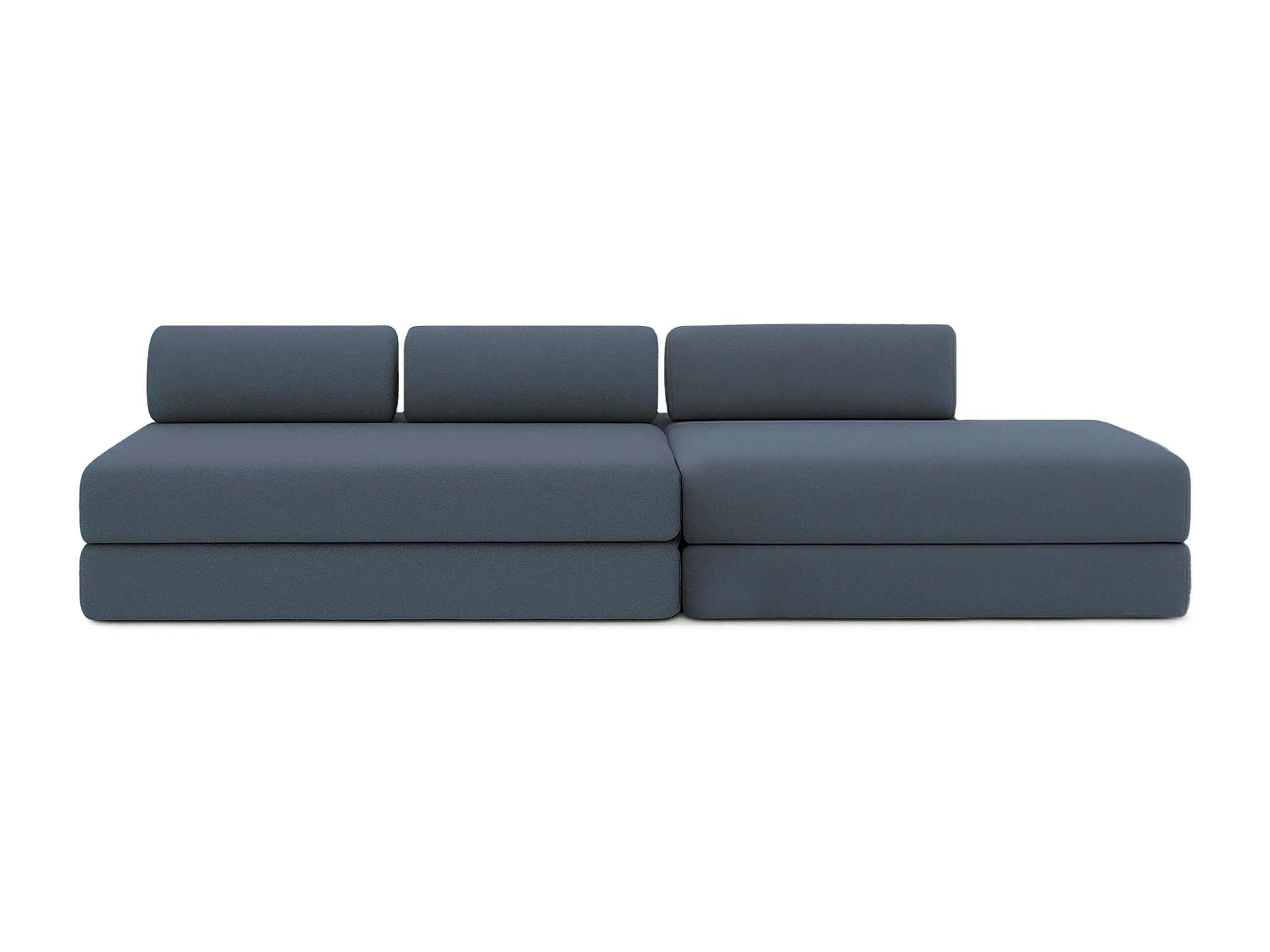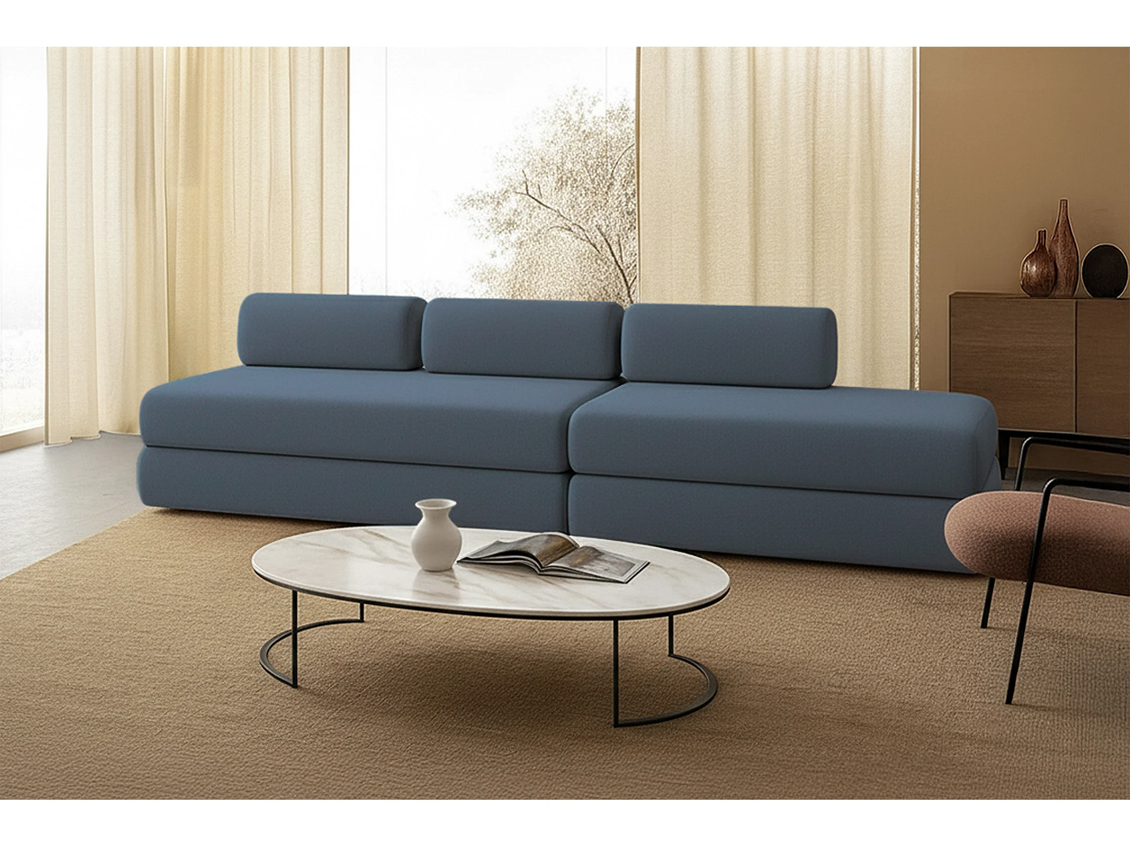 Canapé droit modulable et convertible 5 places - Tissu lisse - Bleu