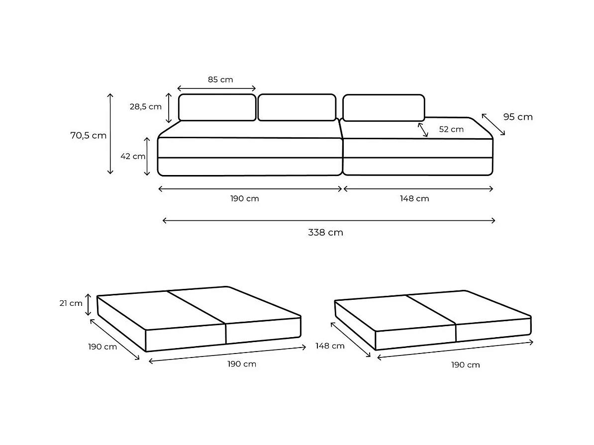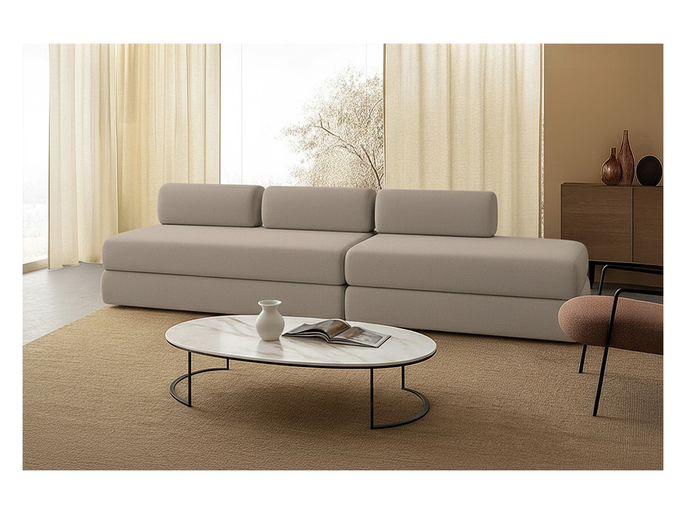 Canapé droit modulable et convertible 5 places - Tissu lisse - Taupe