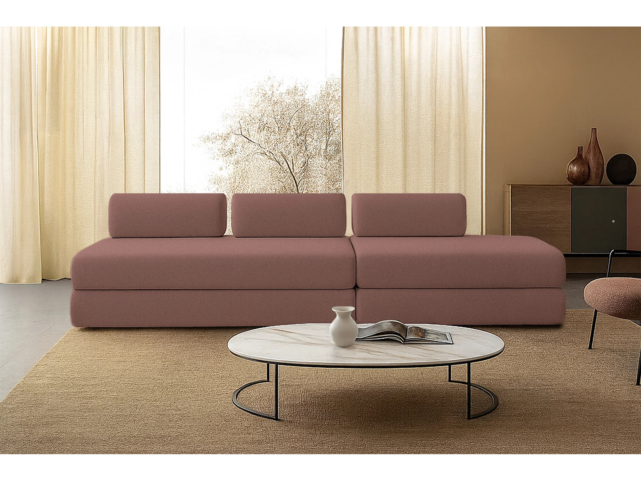 Canapé droit modulable et convertible 5 places - Tissu lisse - Terracotta