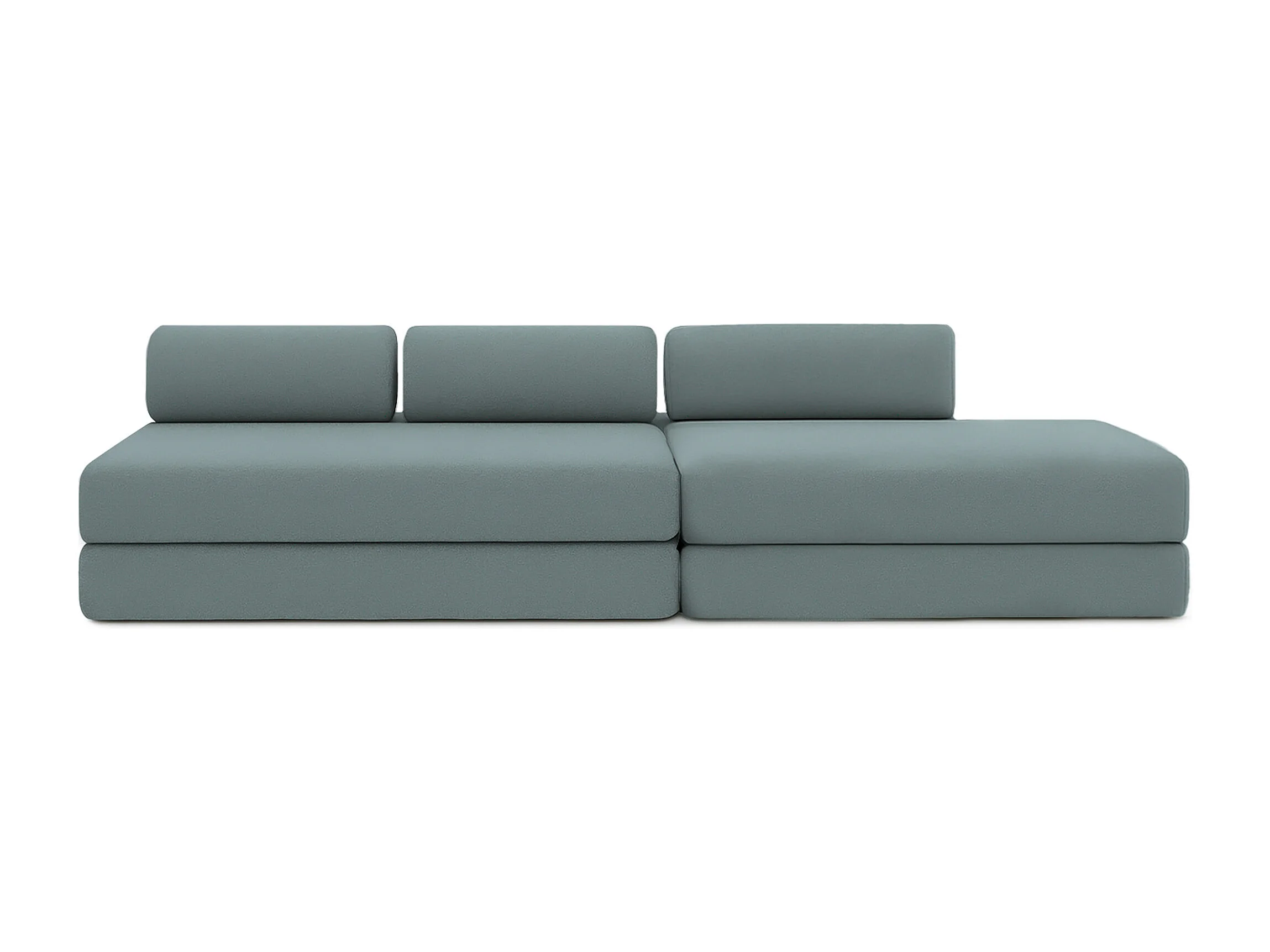 Canapé droit modulable et convertible 5 places - Tissu lisse - Bleu vert