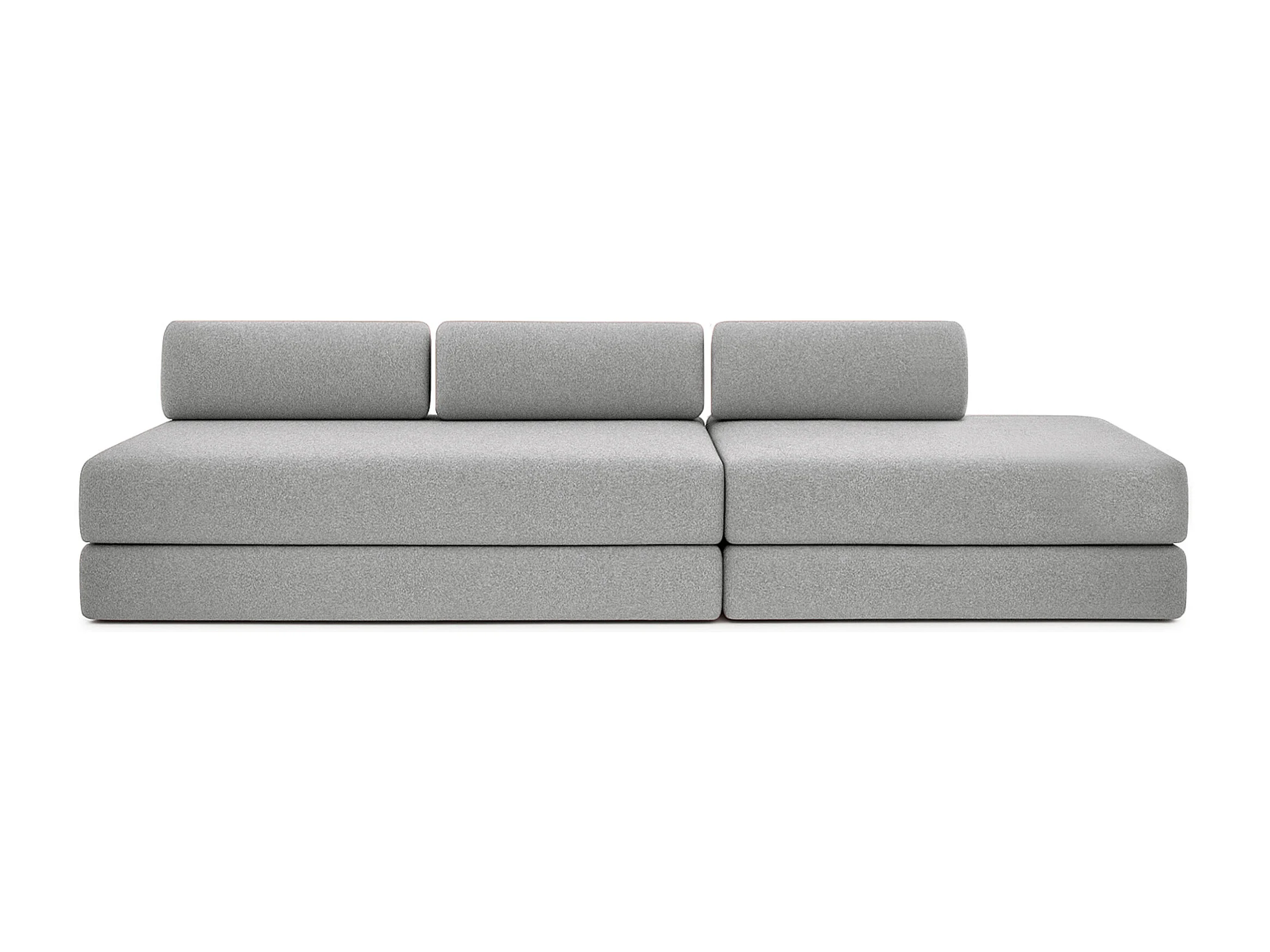Canapé droit modulable et convertible 5 places - Tissu tweed - Gris