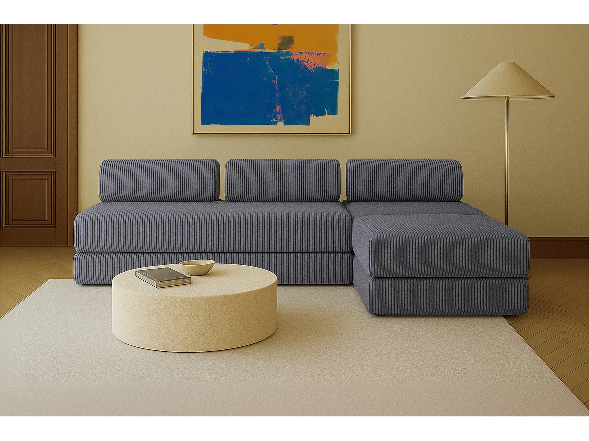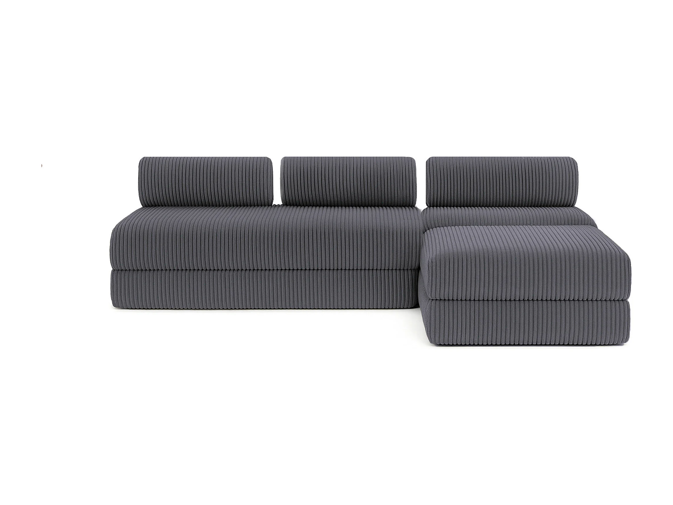 Canapé droit modulable et convertible 6 places - Velours côtelé XL - Gris