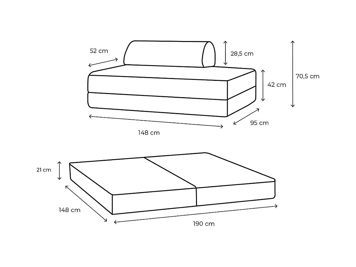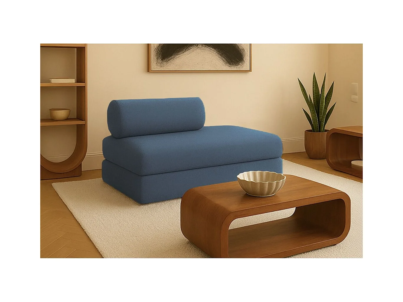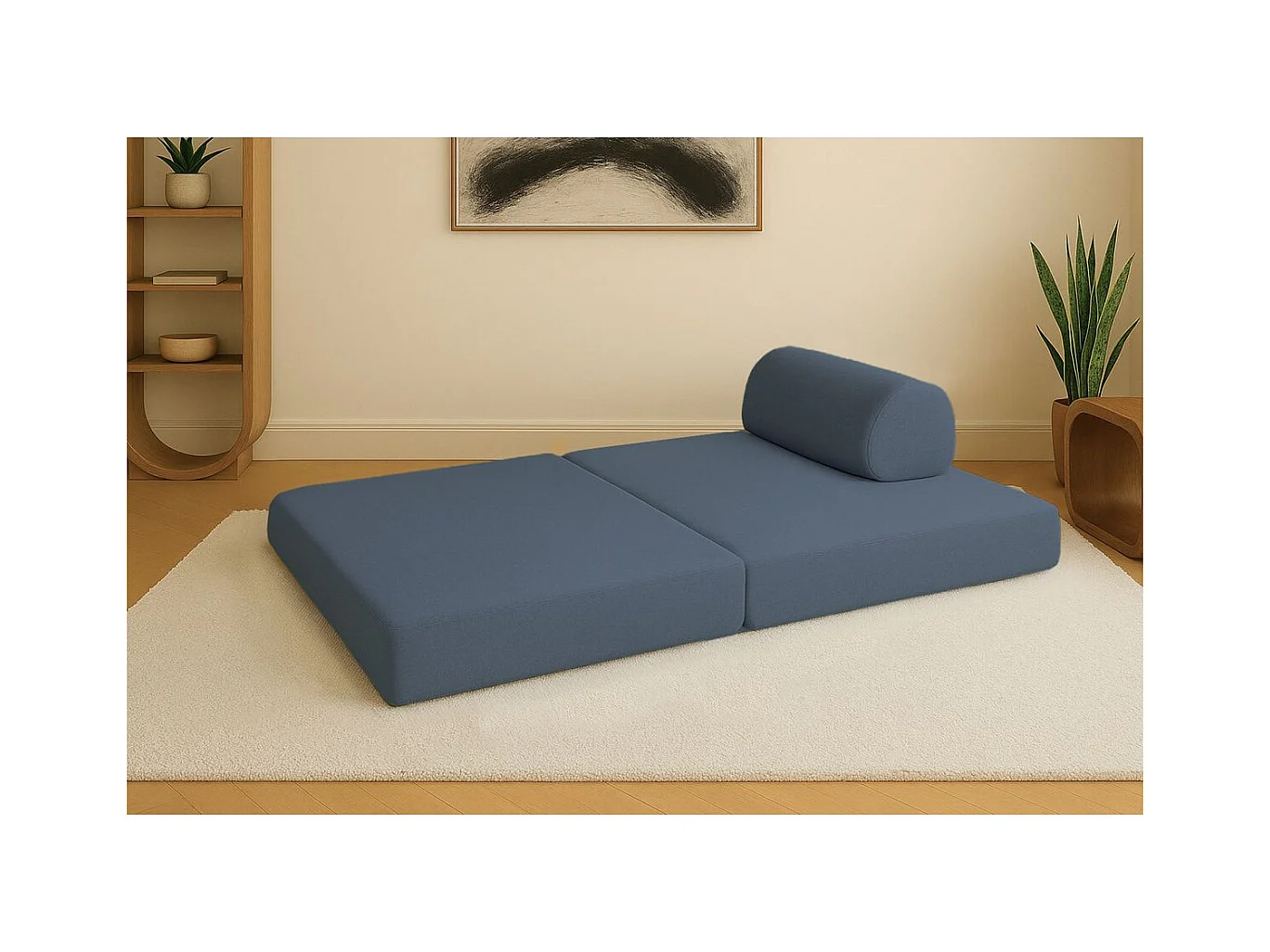 Canapé droit modulable et convertible 2 places - Tissu lisse - Bleu
