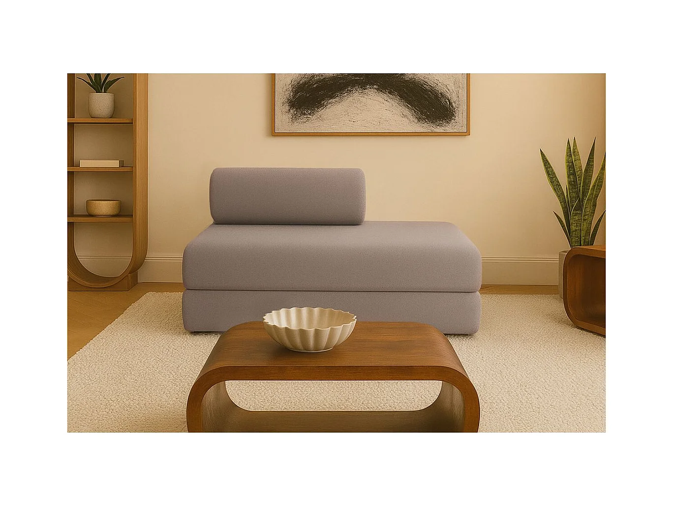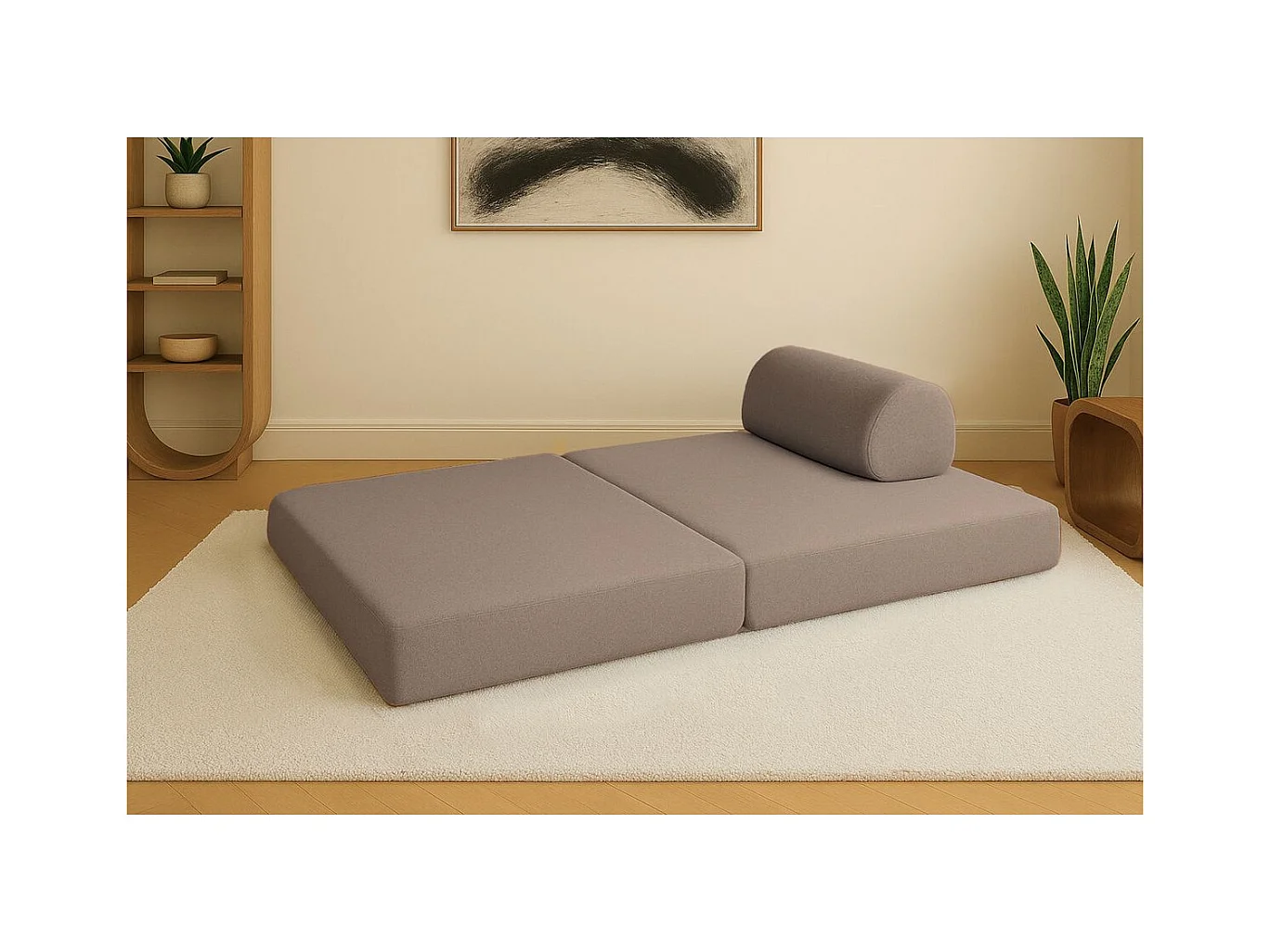Canapé droit modulable et convertible 2 places - Tissu lisse - Marron