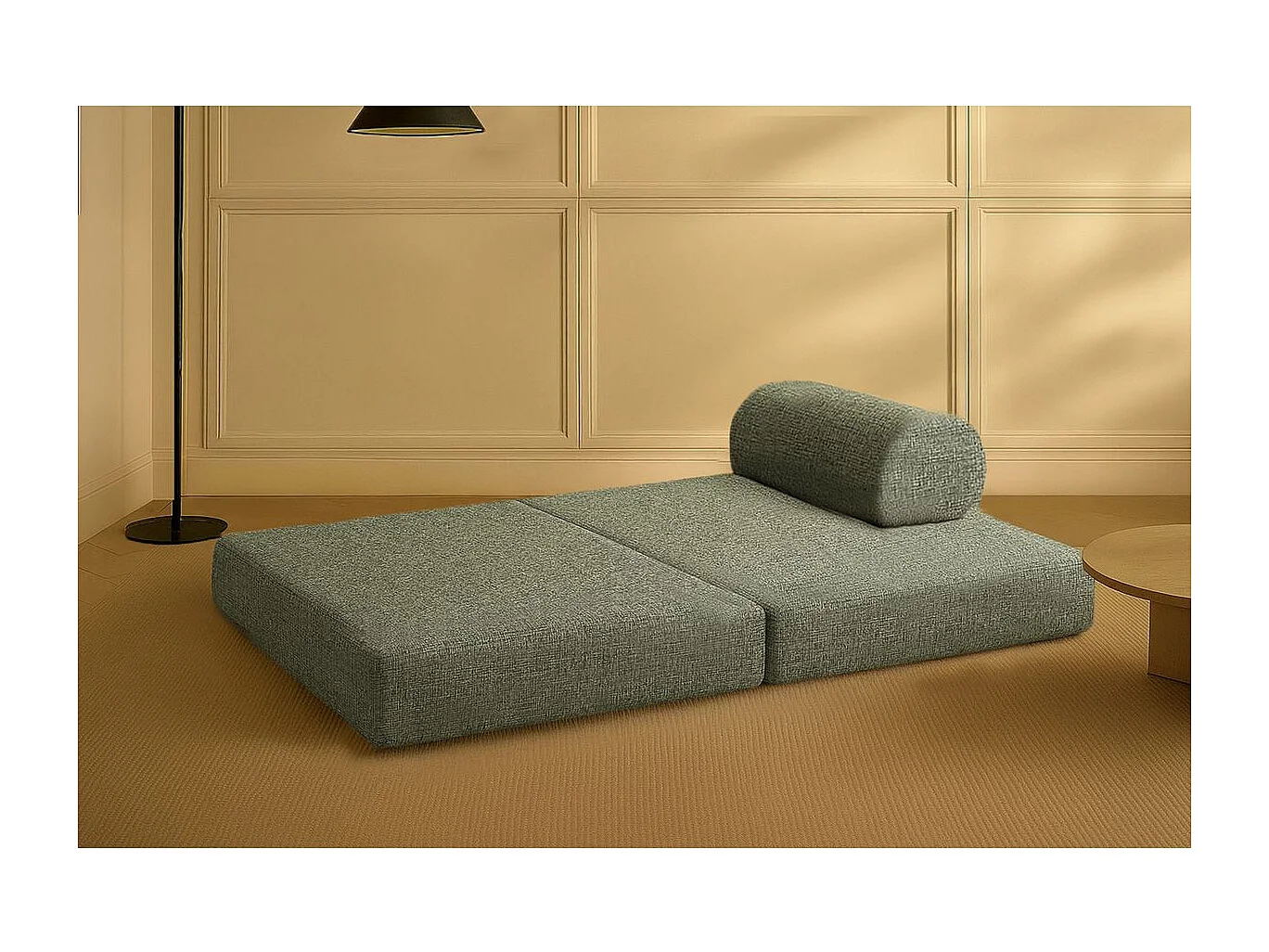 Canapé droit modulable et convertible 2 places - Tissu tweed - Vert